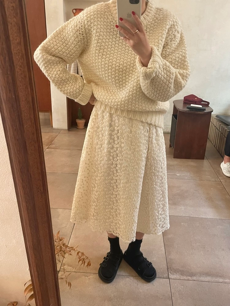 저는 안에 화이트 풀스커트랑 같이 입어봤는데 너무 예쁘더라구요.