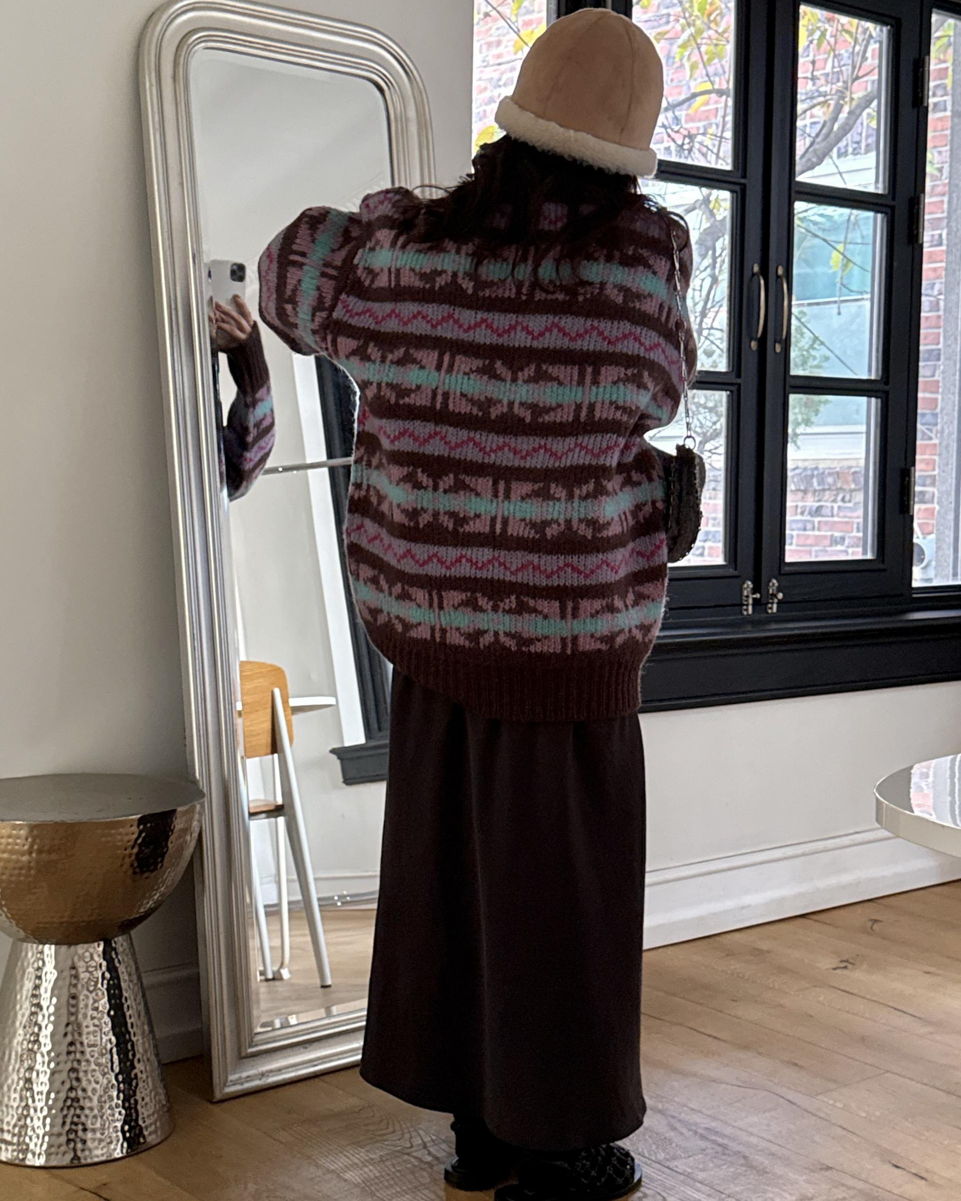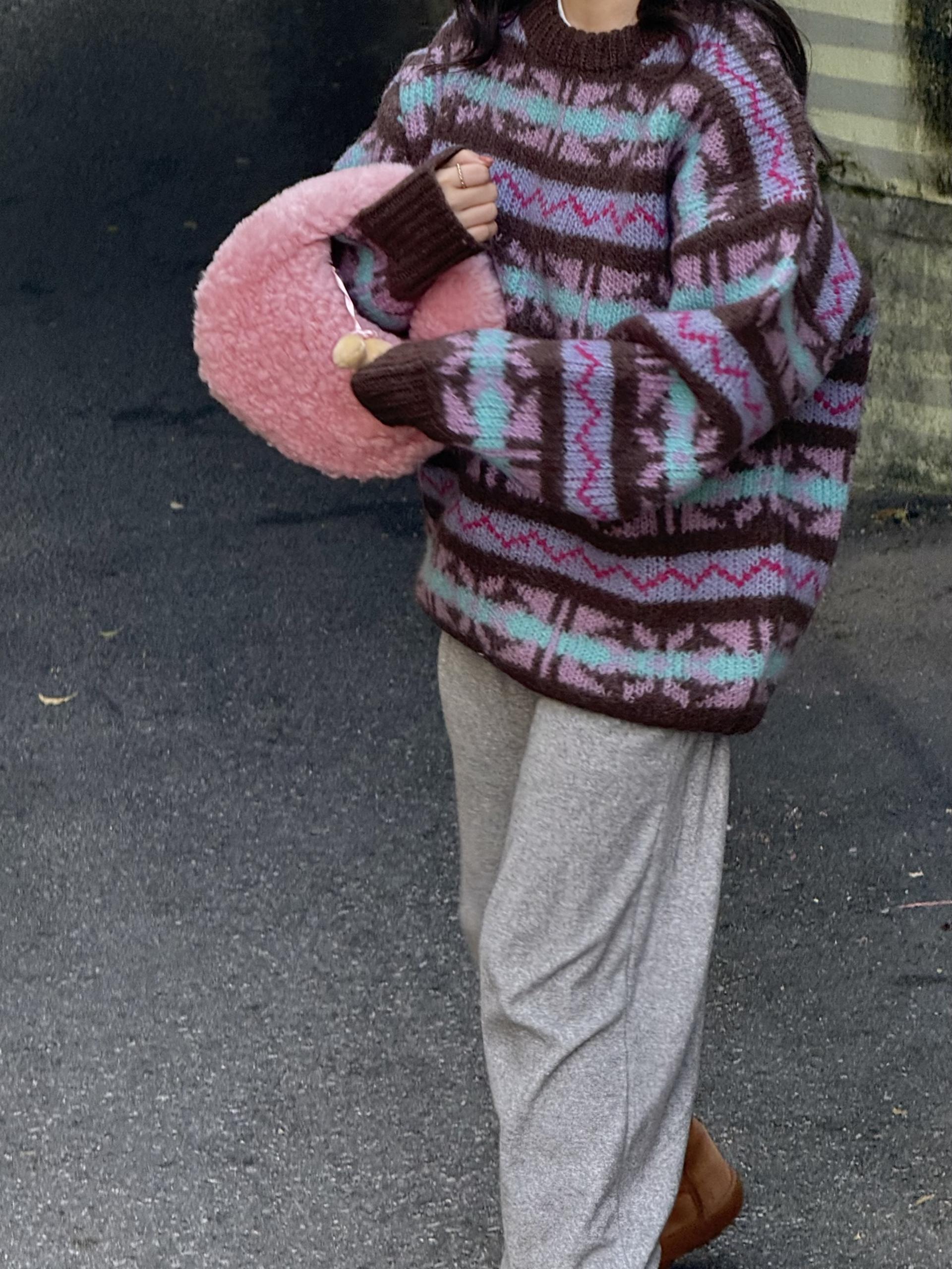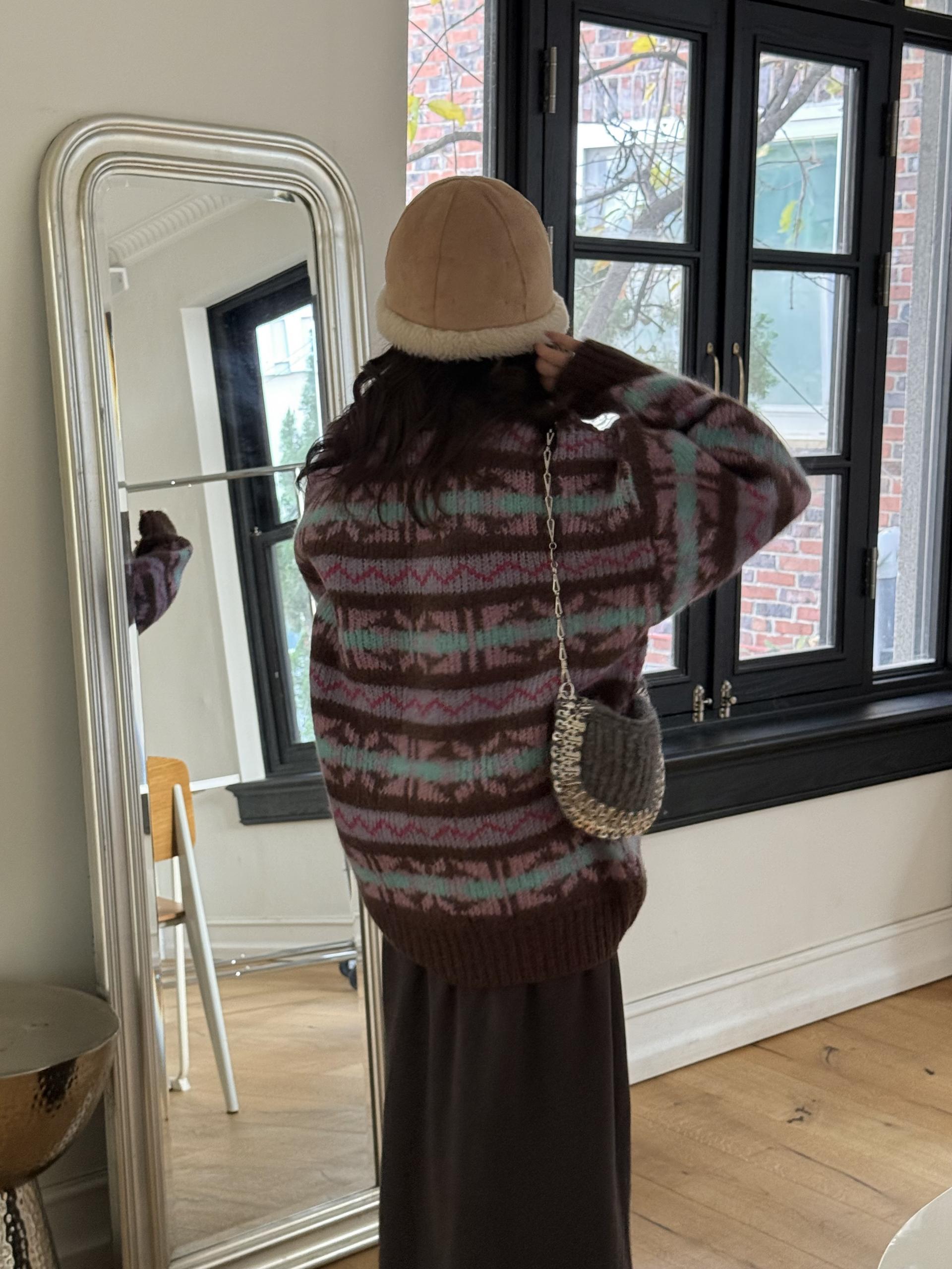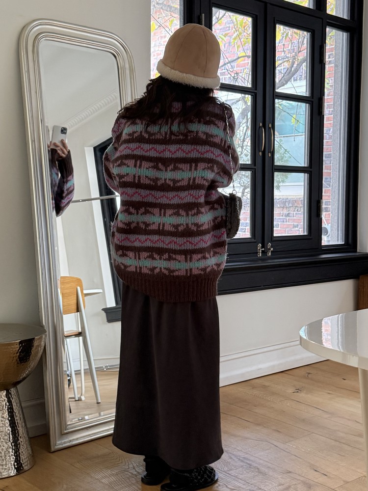 빈티지한 패턴과 컬러 조합이 매력적인 오버사이즈 니트 ’ruby’ 입니다.