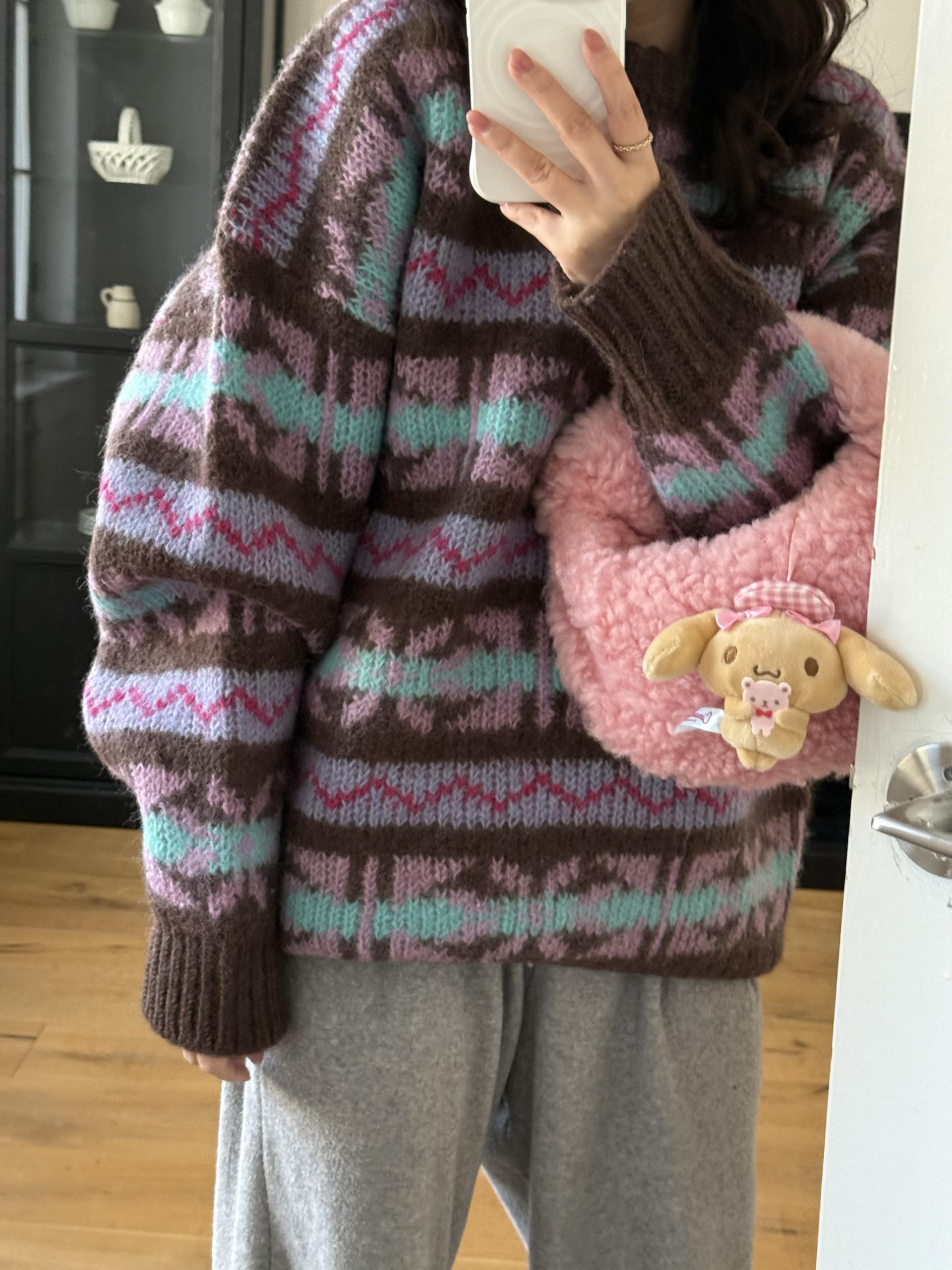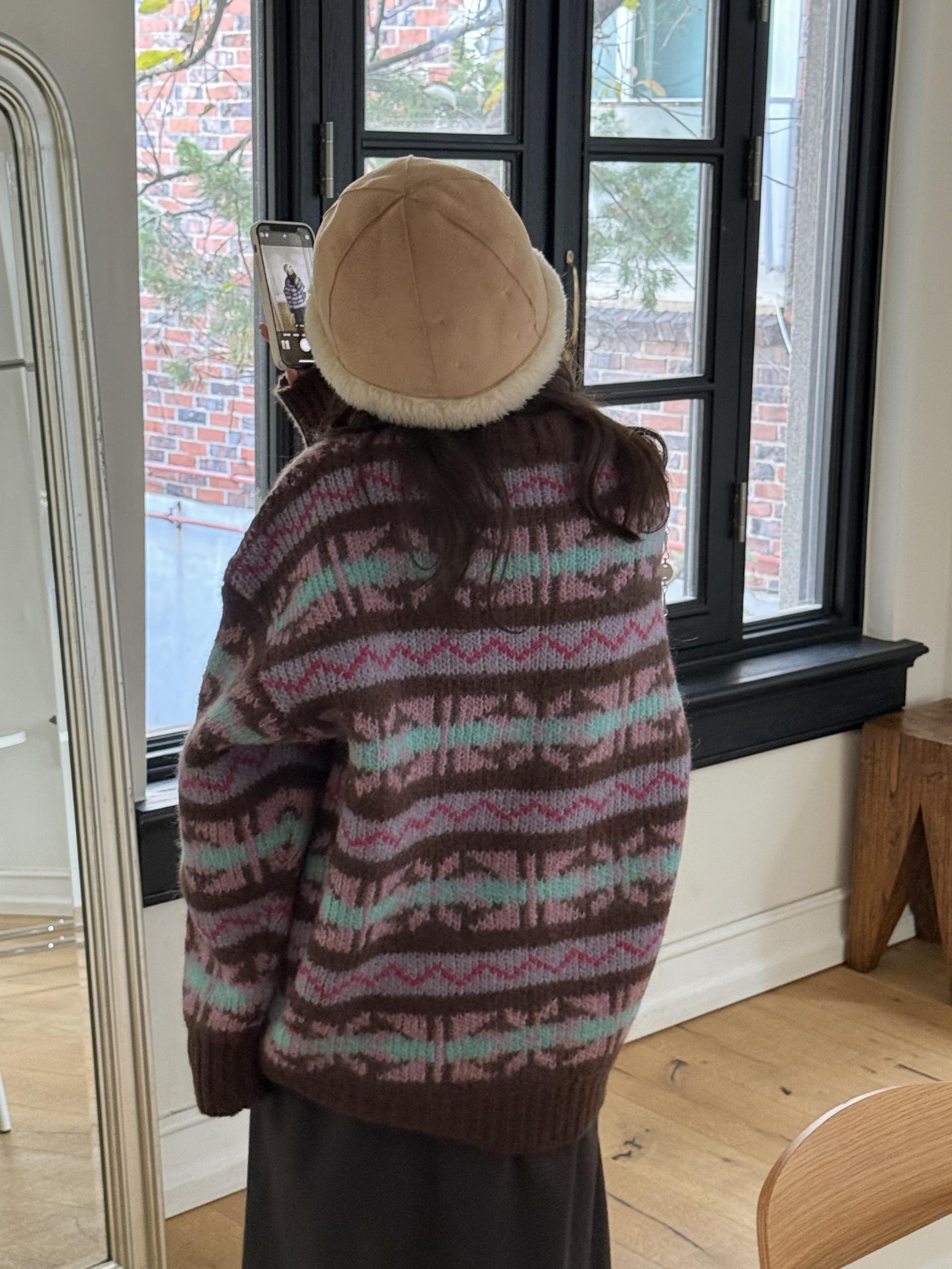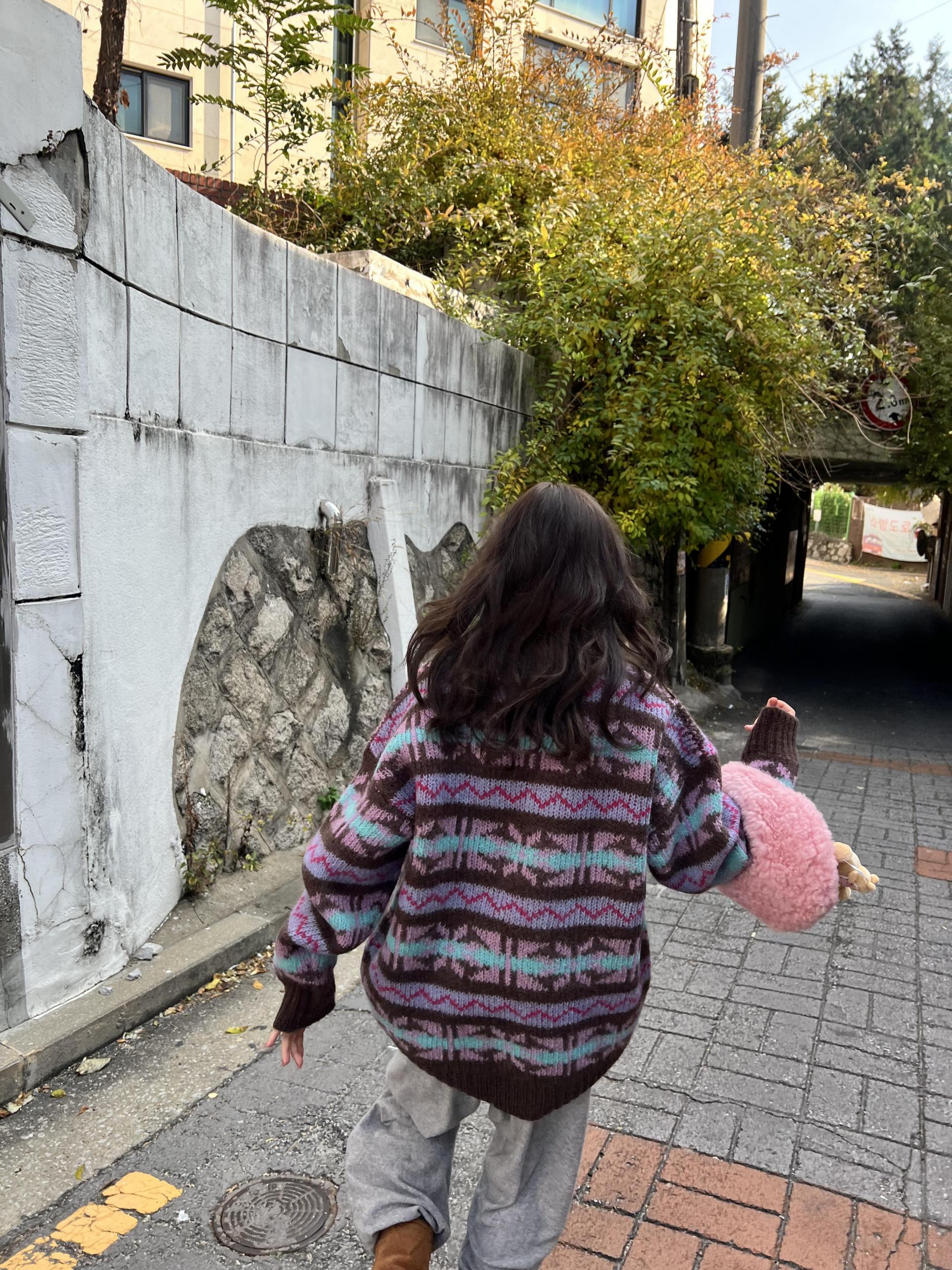 빈티지한 패턴과 컬러 조합이 매력적인 오버사이즈 니트 ’ruby’ 입니다.