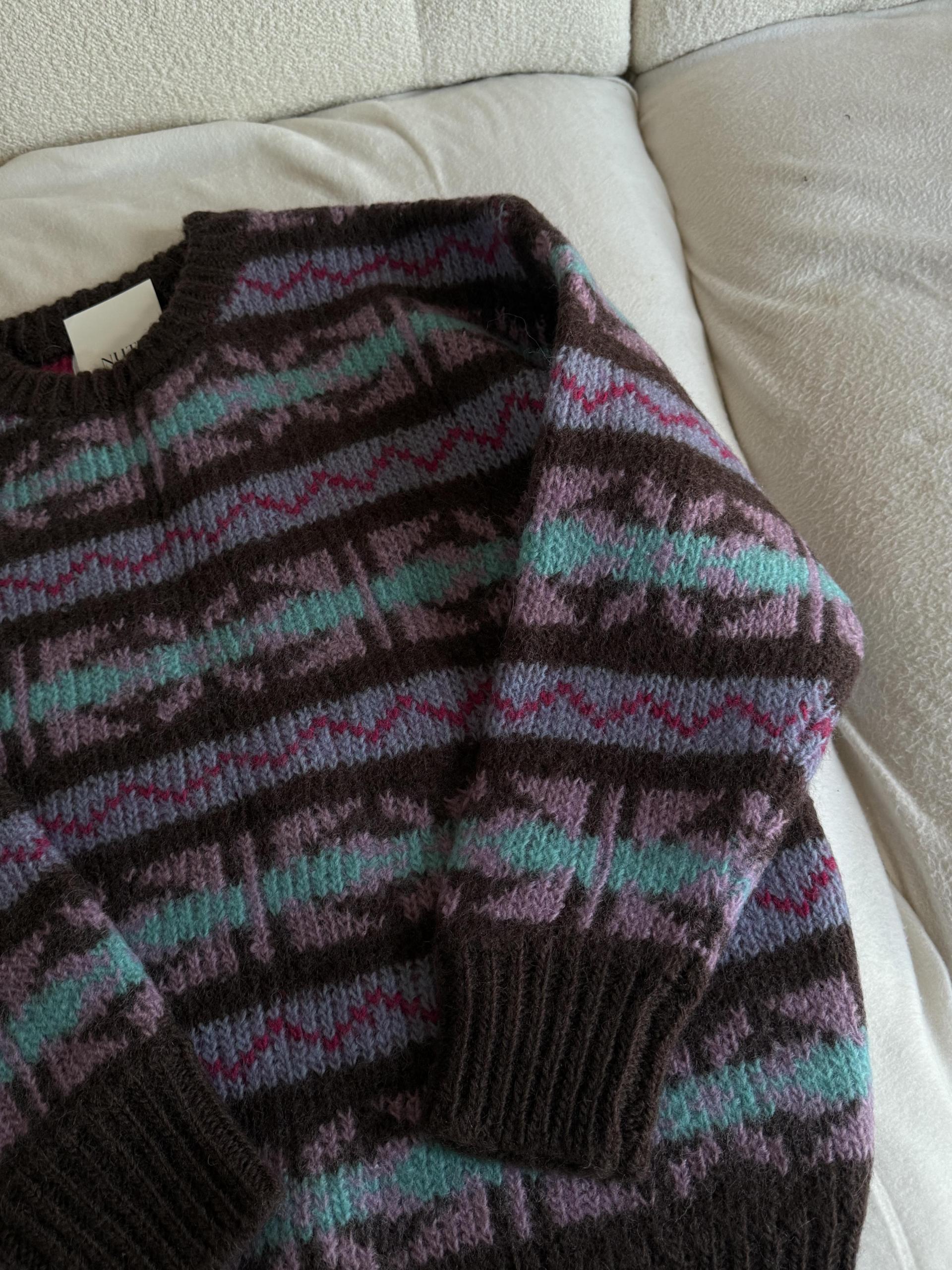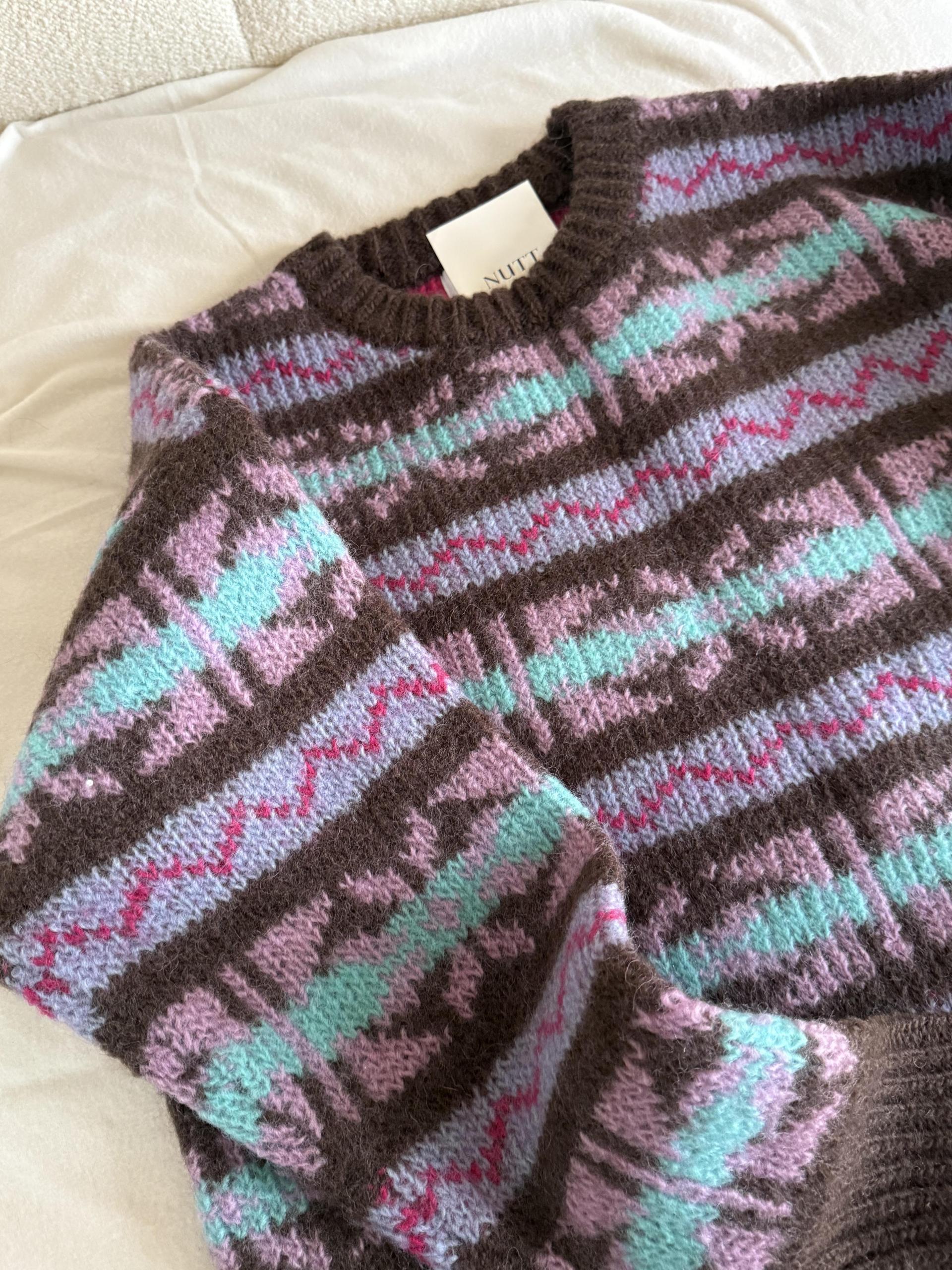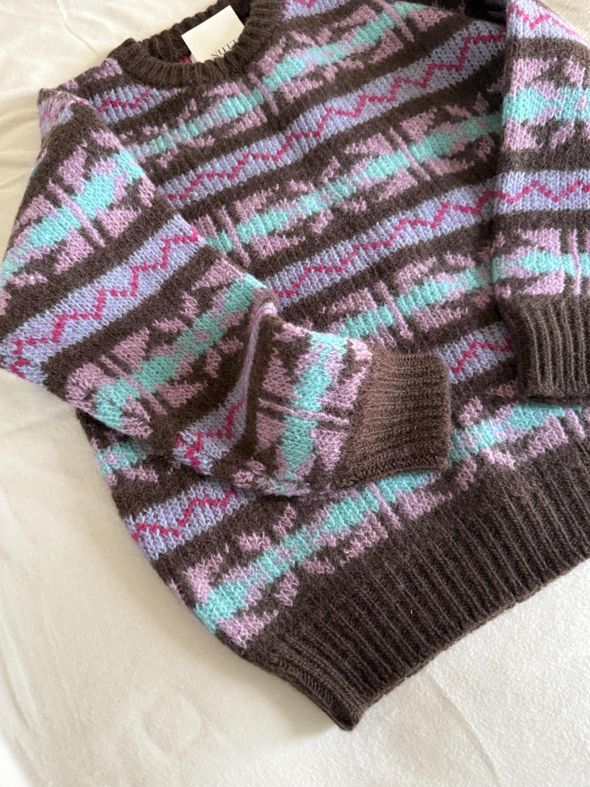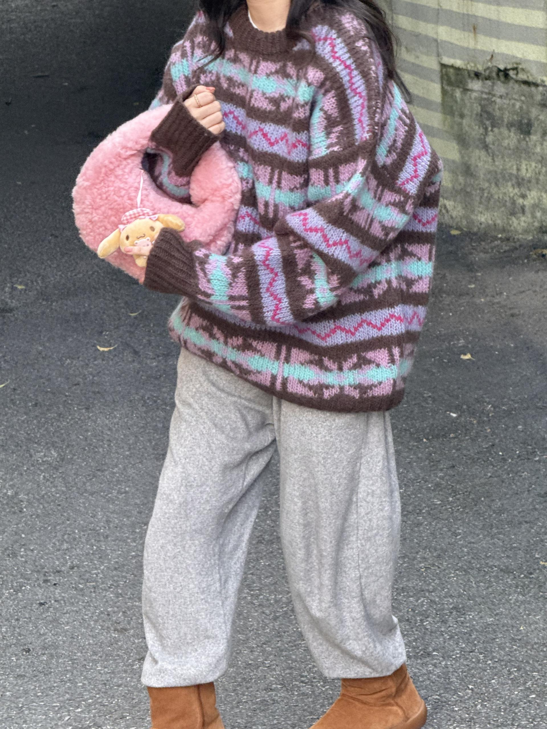 빈티지한 패턴과 컬러 조합이 매력적인 오버사이즈 니트 ’ruby’ 입니다.