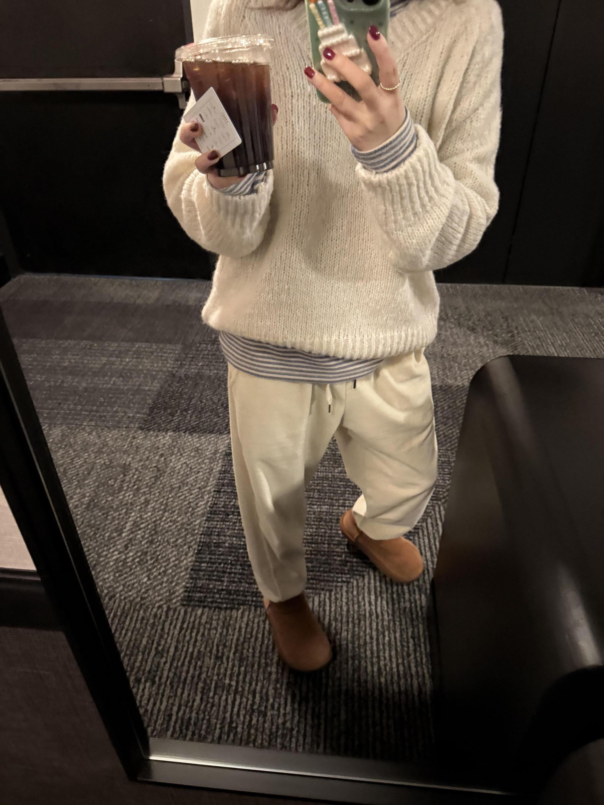 니트 하나만 입어주셔도 좋고, 저처럼 레이어드 하셔도 좋아요.
