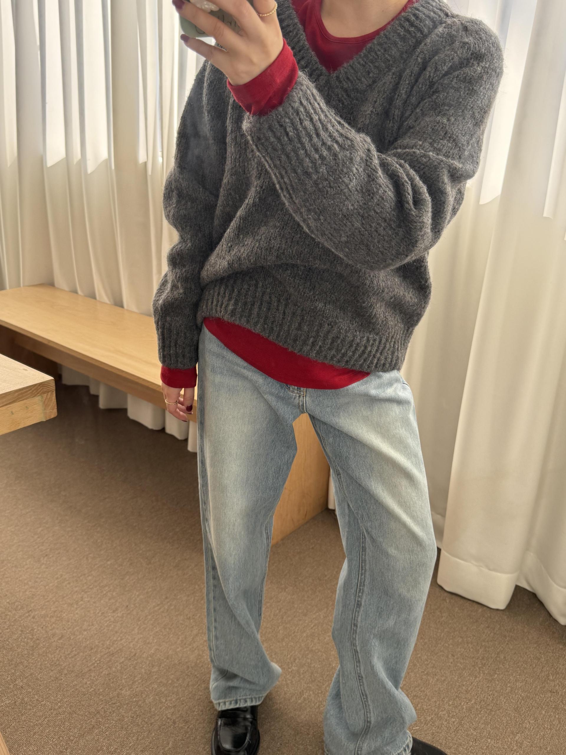 고슬고슬한 헤어리함이 살아있는 브이넥 니트 ‘noel’ 입니다.