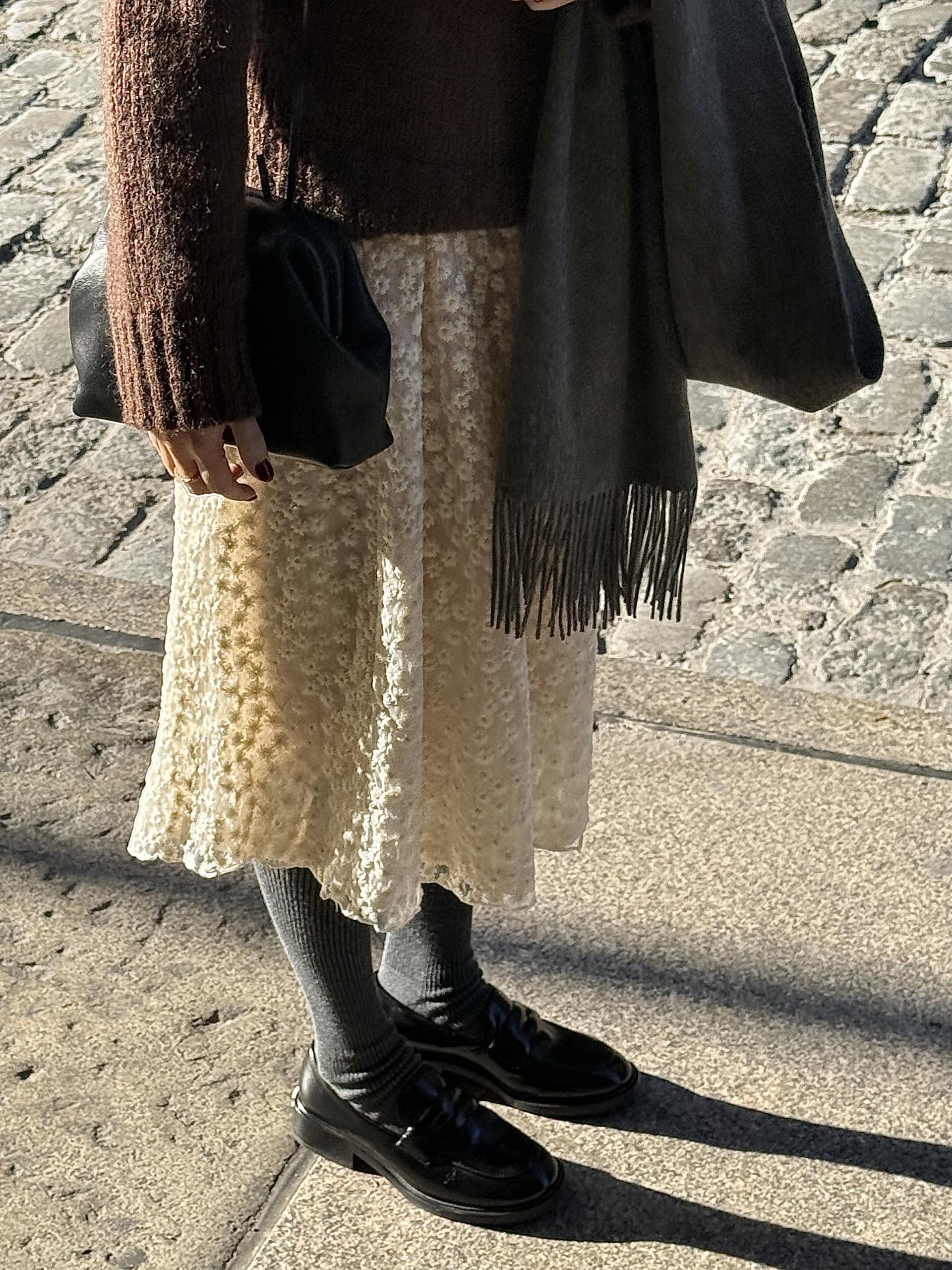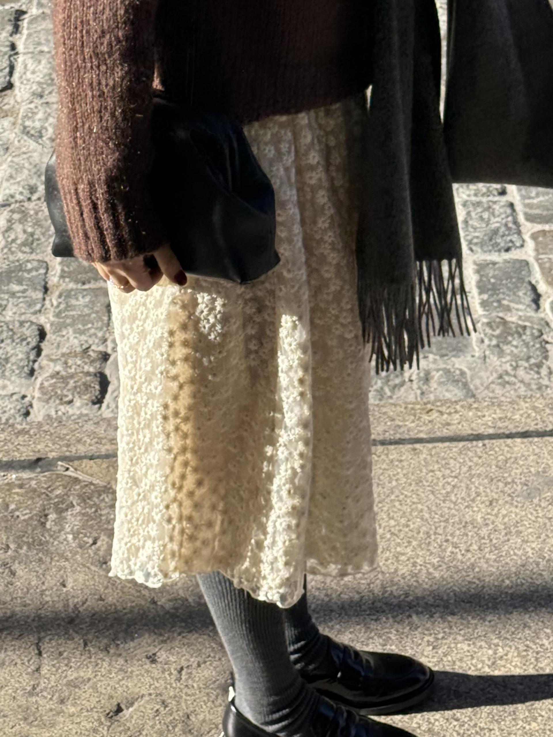 크롭까지는 아닌데 기장이 조금 짧게 나와서 스커트랑 드레스랑 레이어드해서