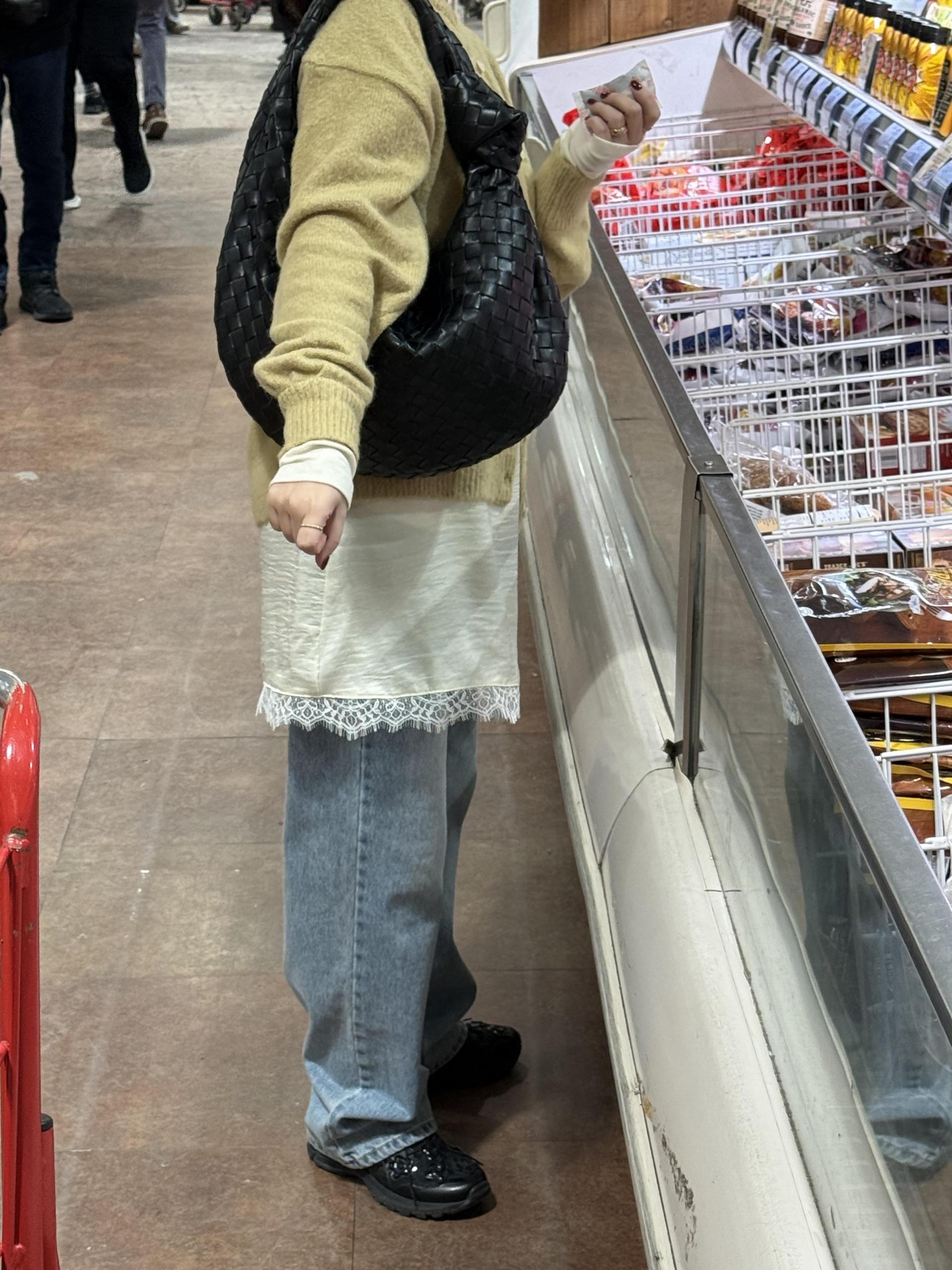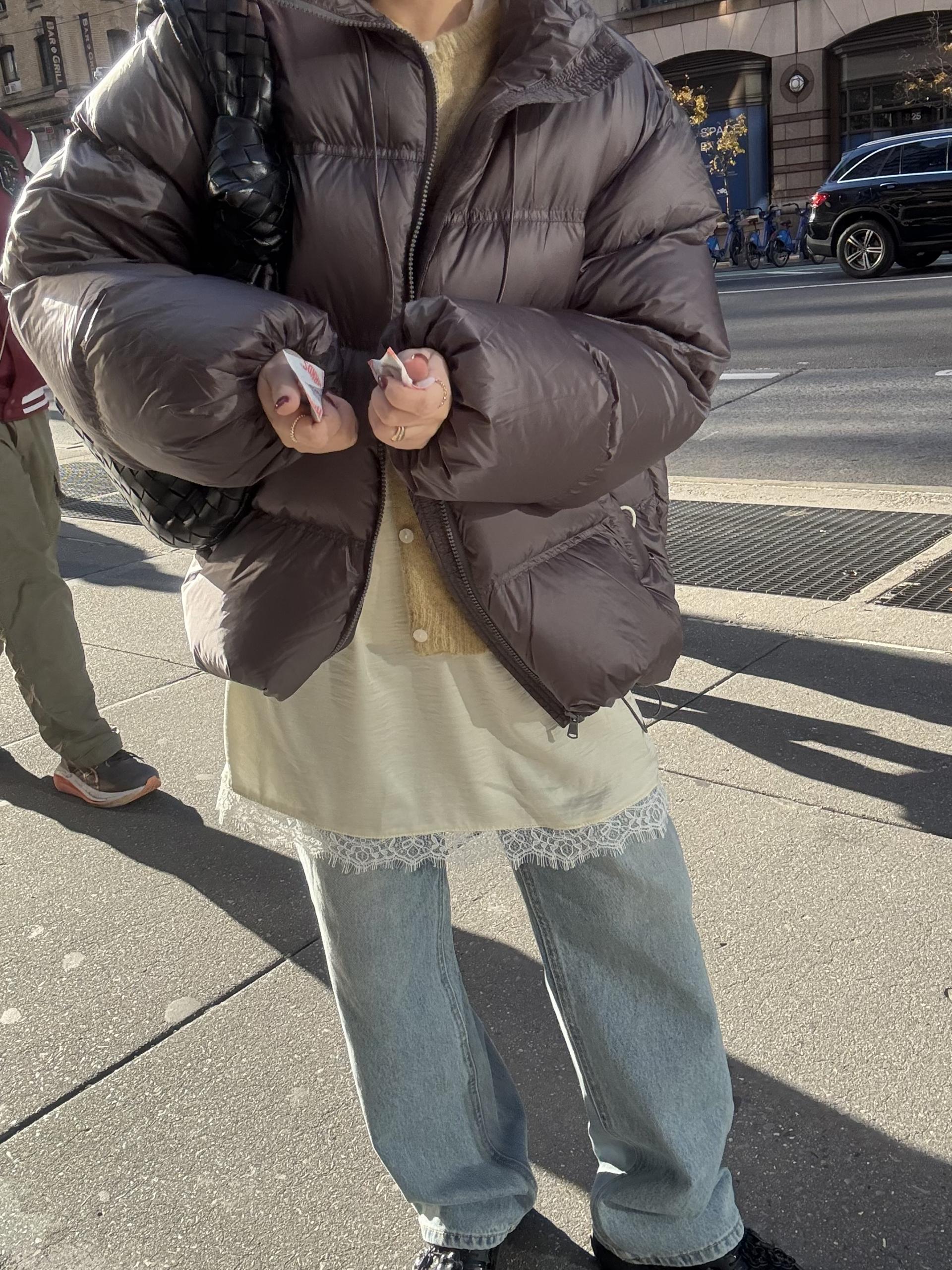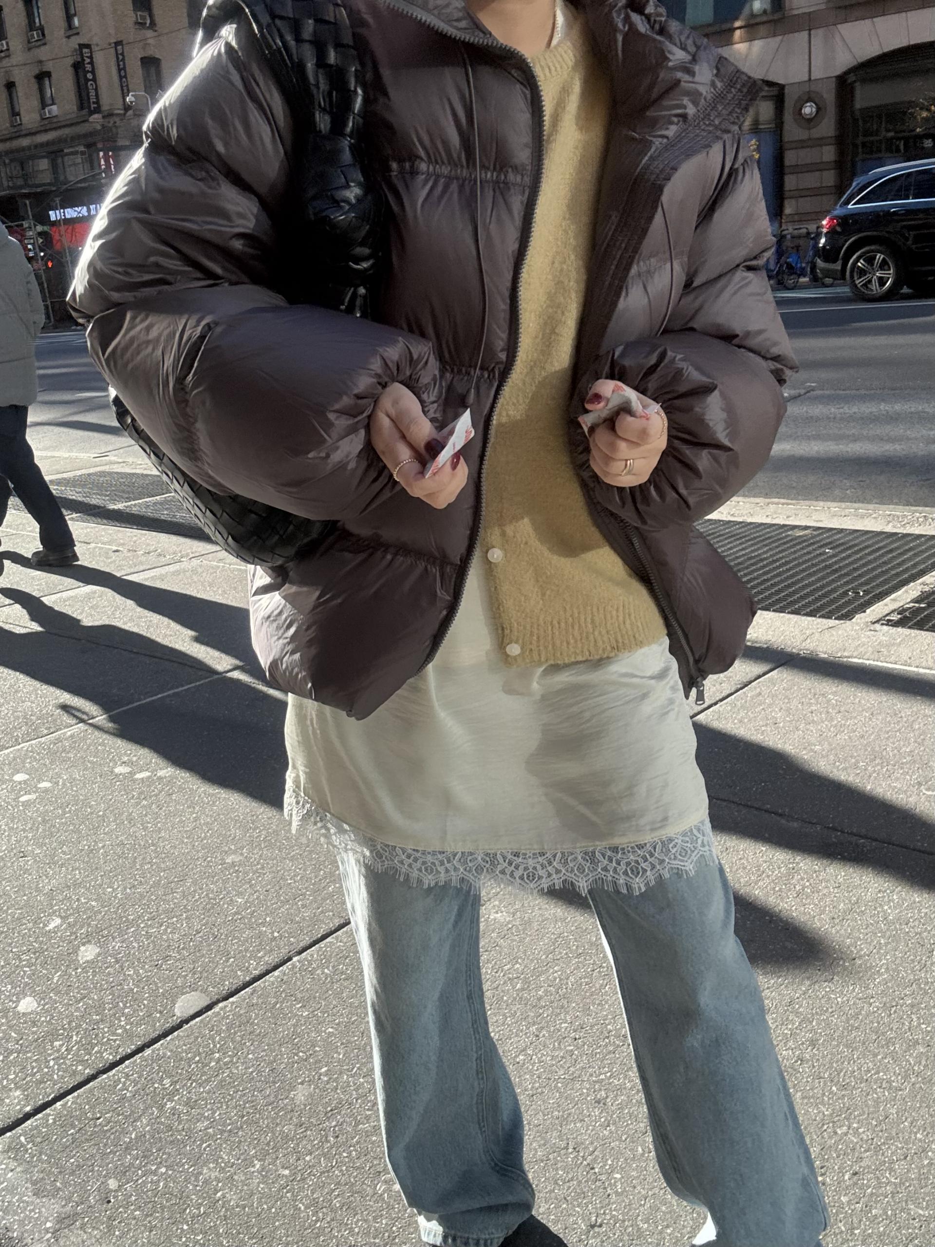 데님이나 팬츠위에 착용 했을때 드레스의 매력이 더 살아나요.