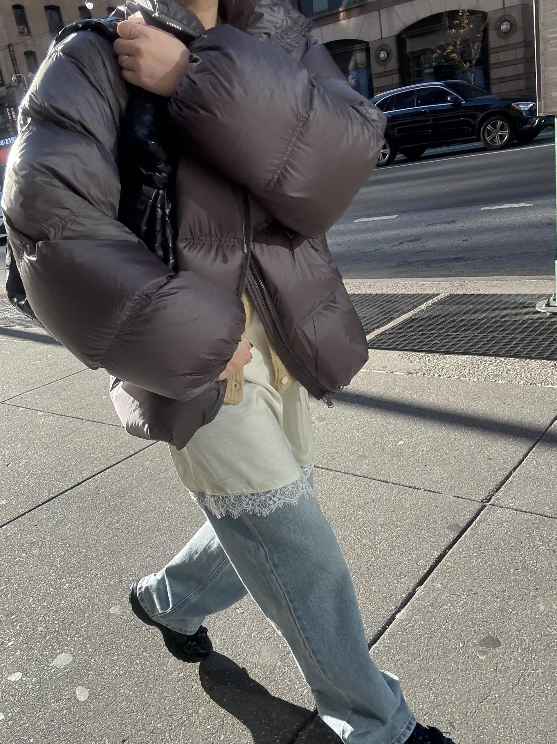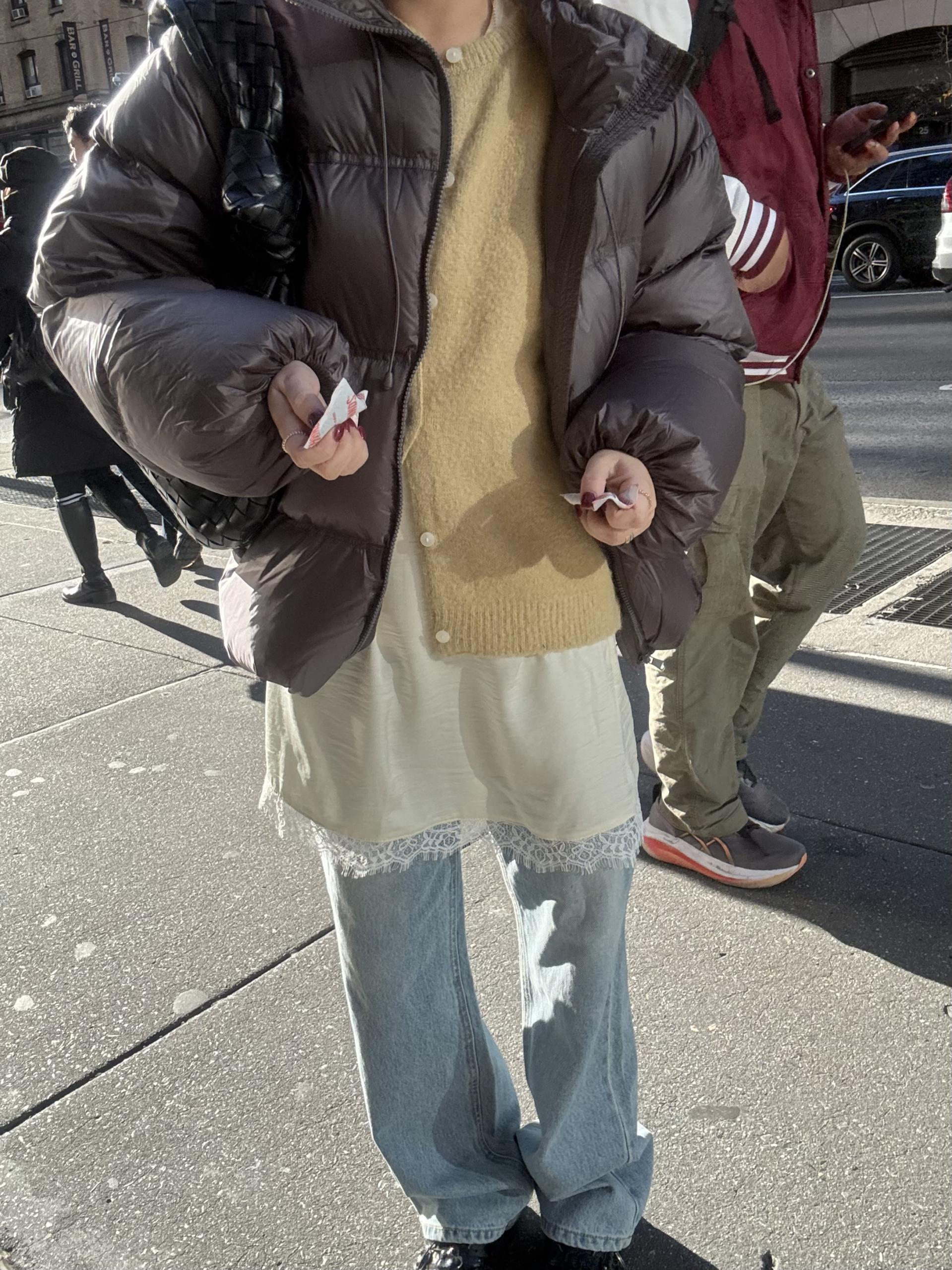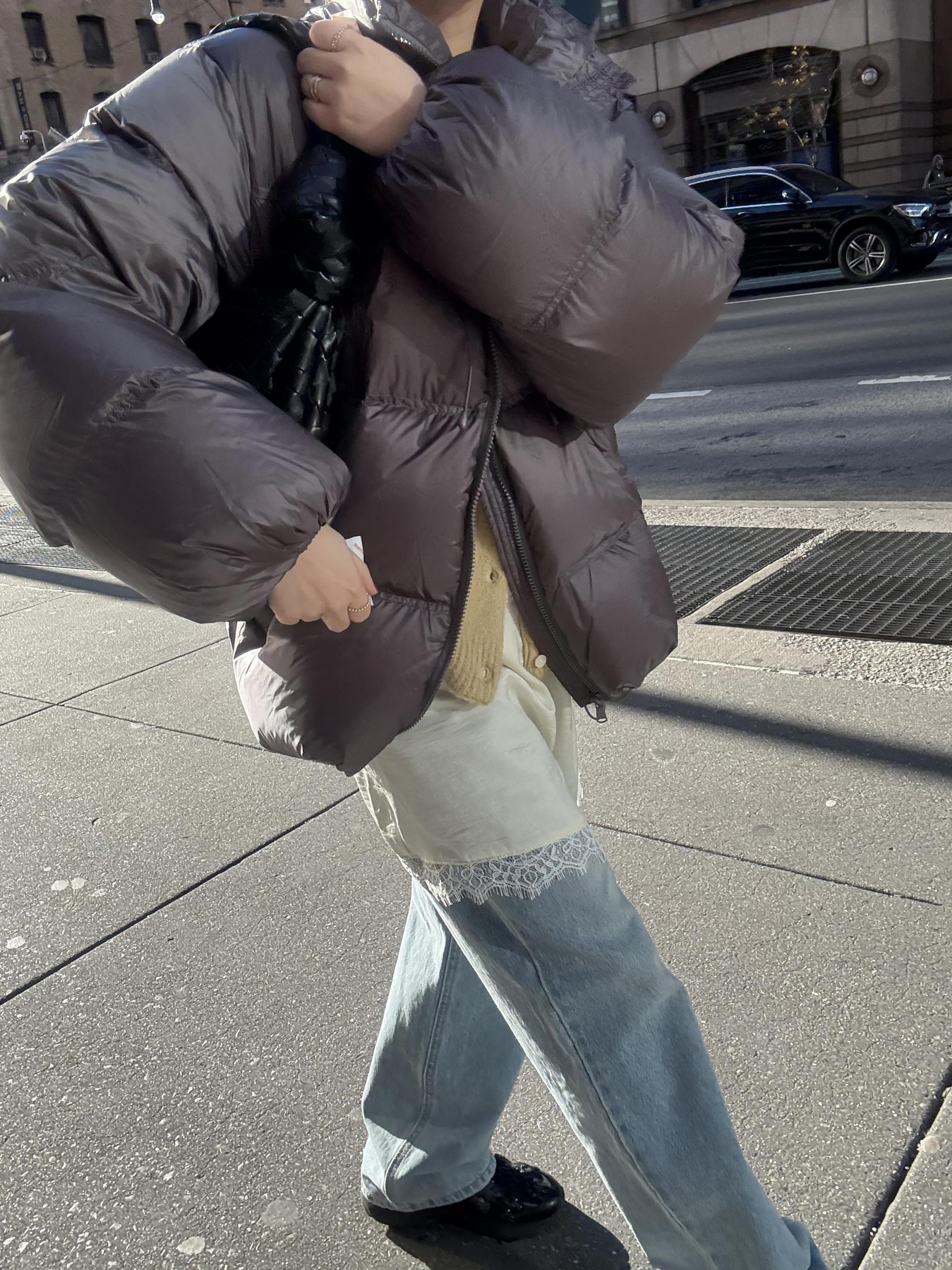 데님이나 팬츠위에 착용 했을때 드레스의 매력이 더 살아나요.