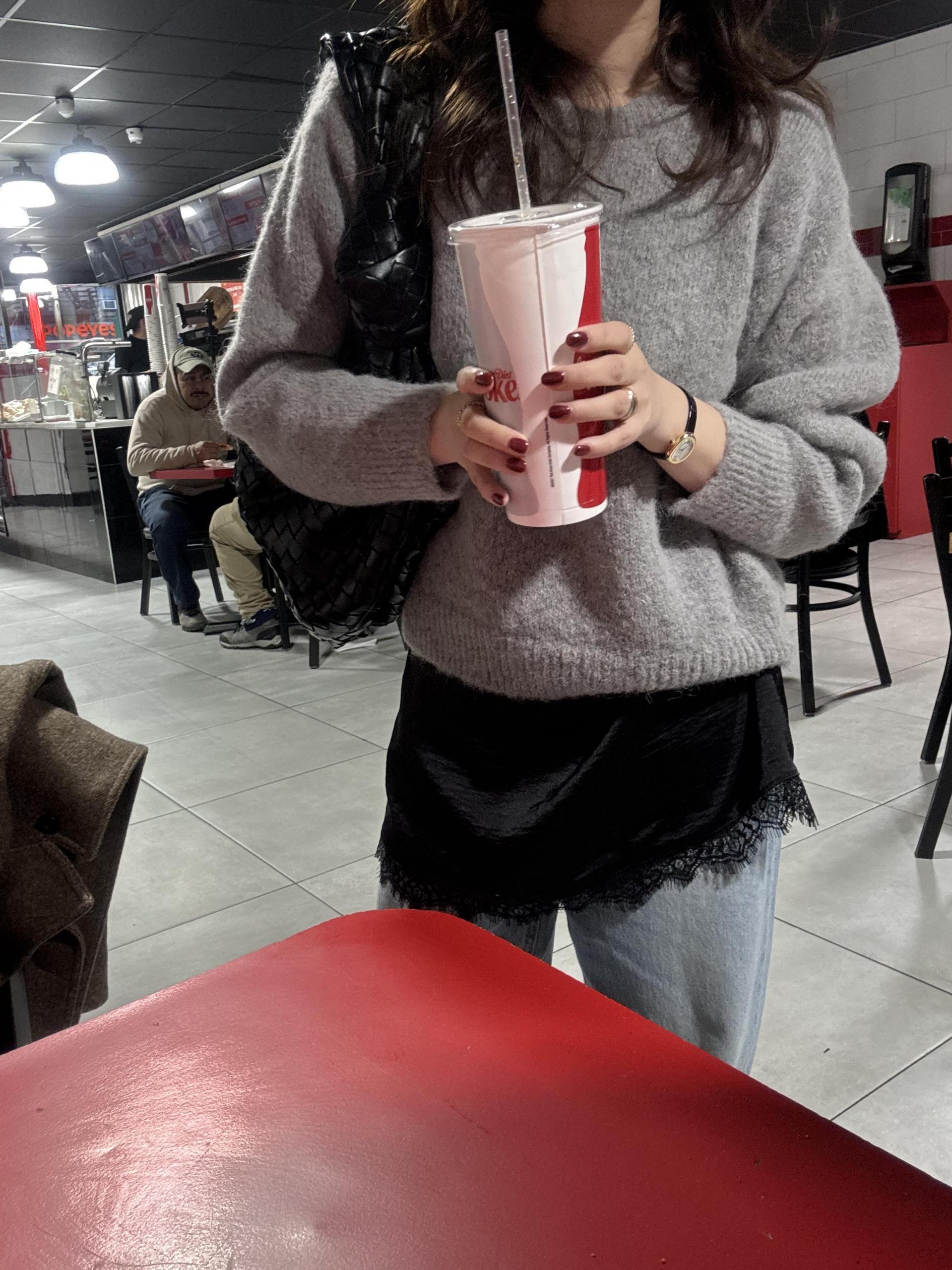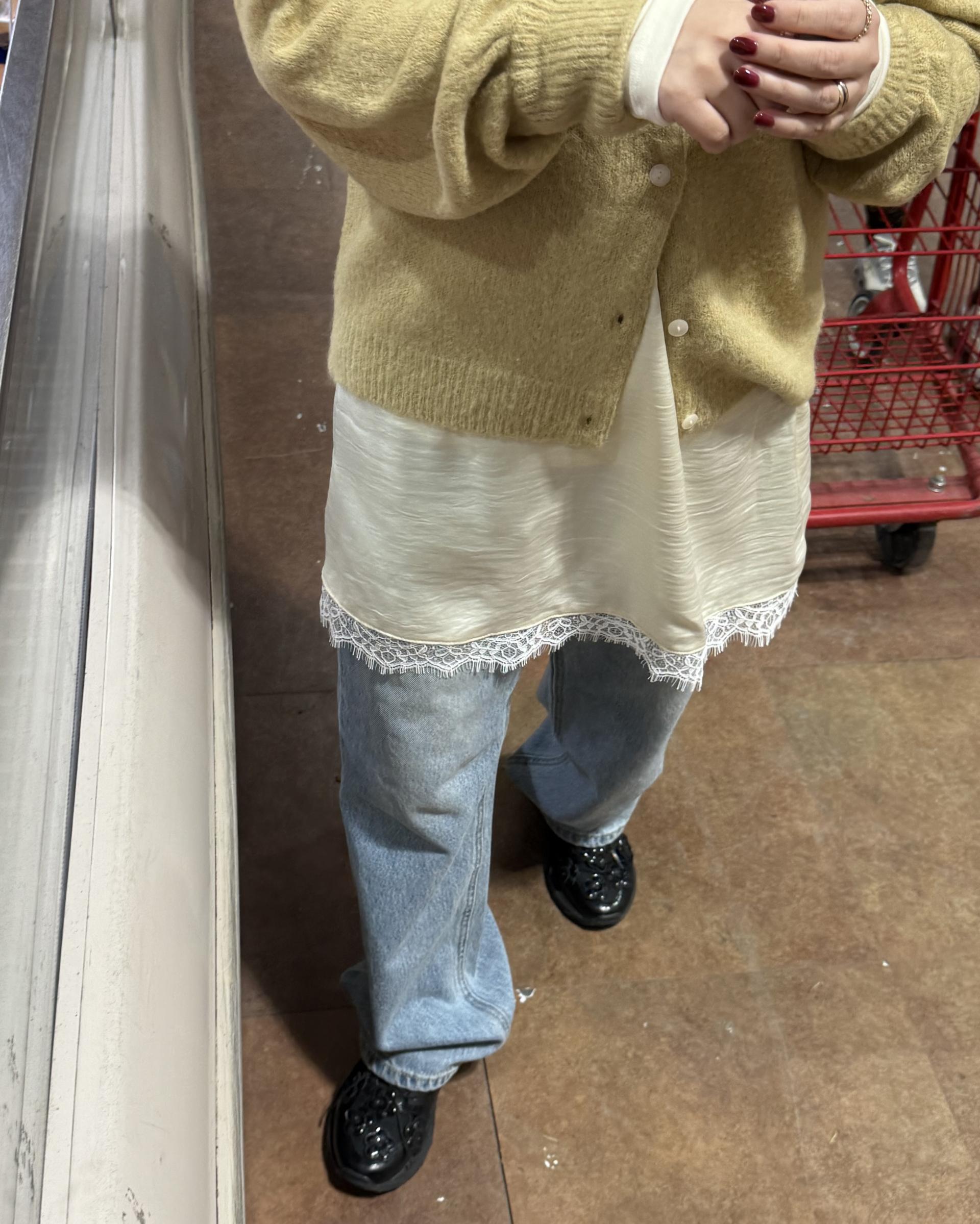 밑단에 들어간 섬세한 레이스 디테일이
