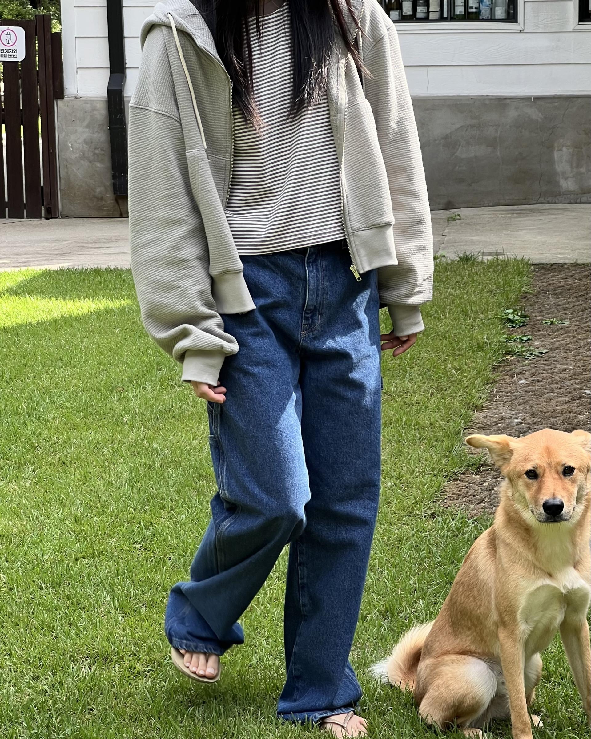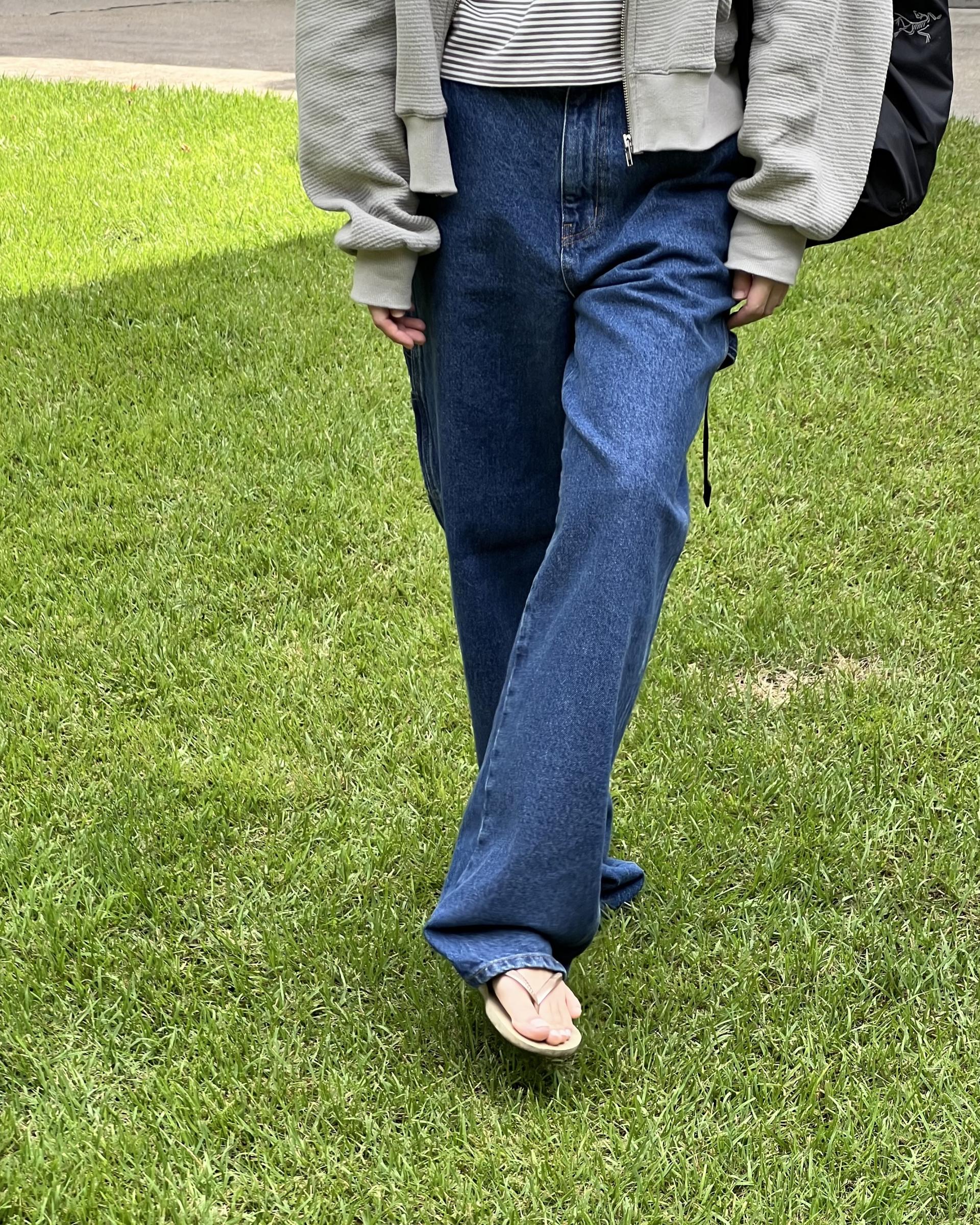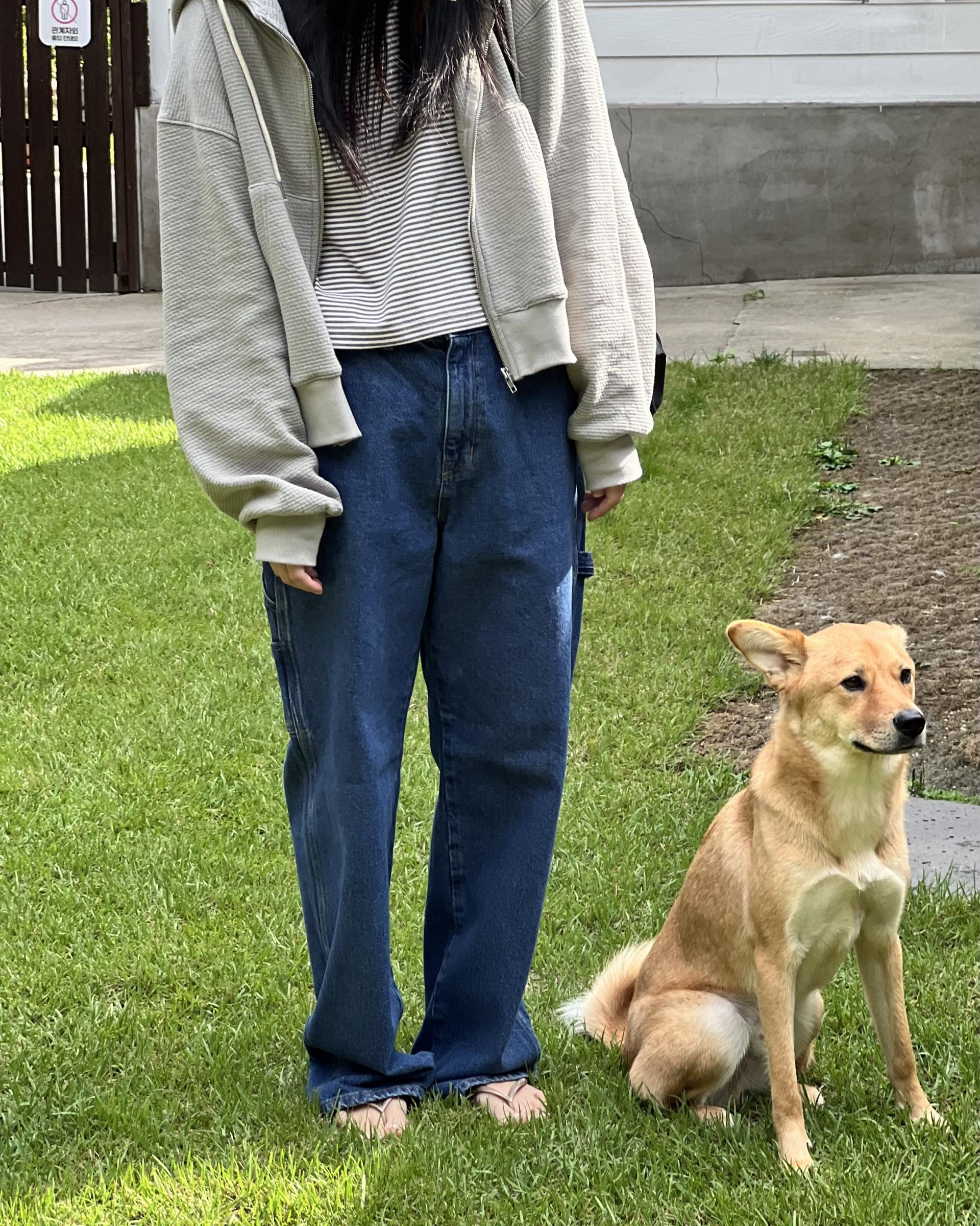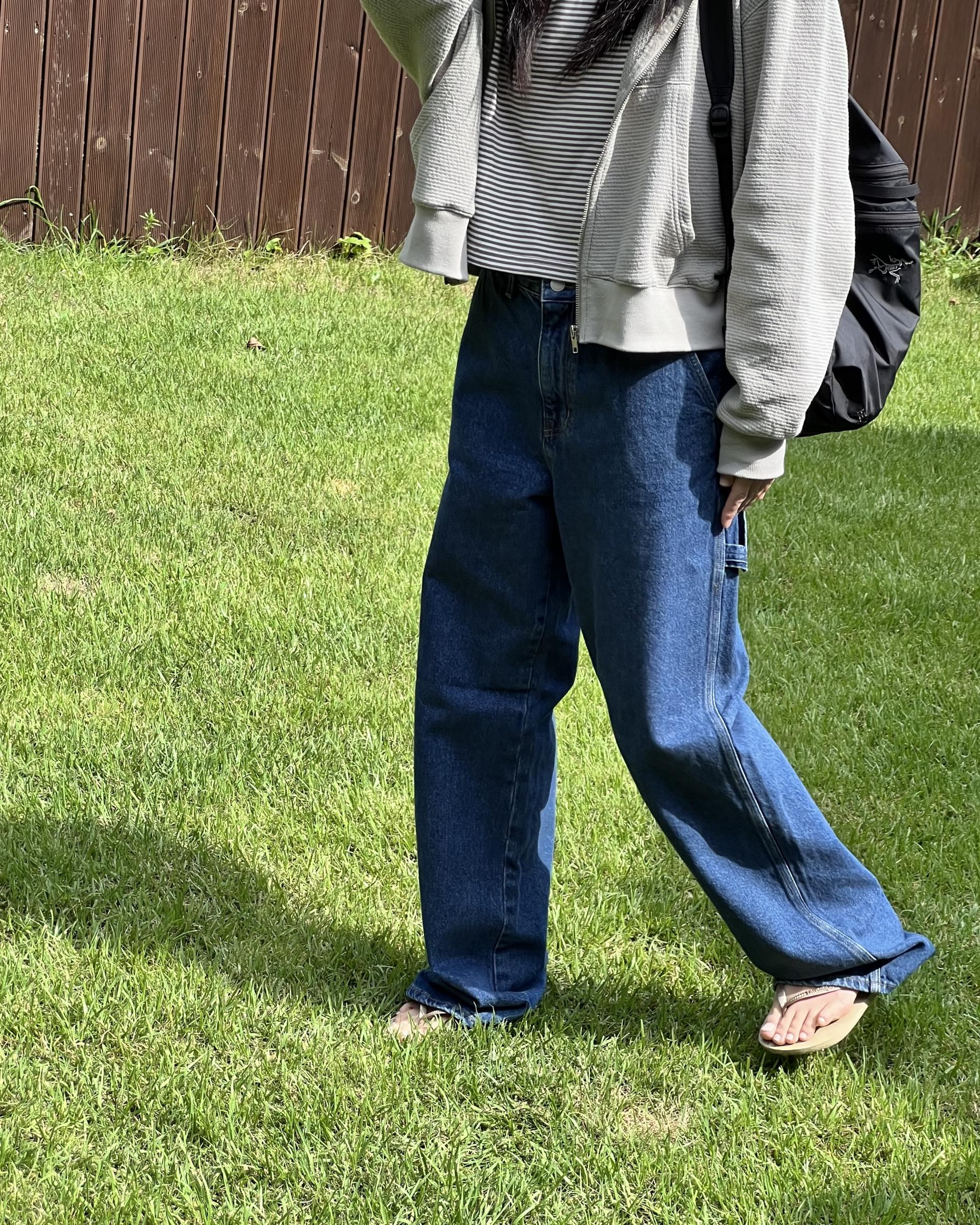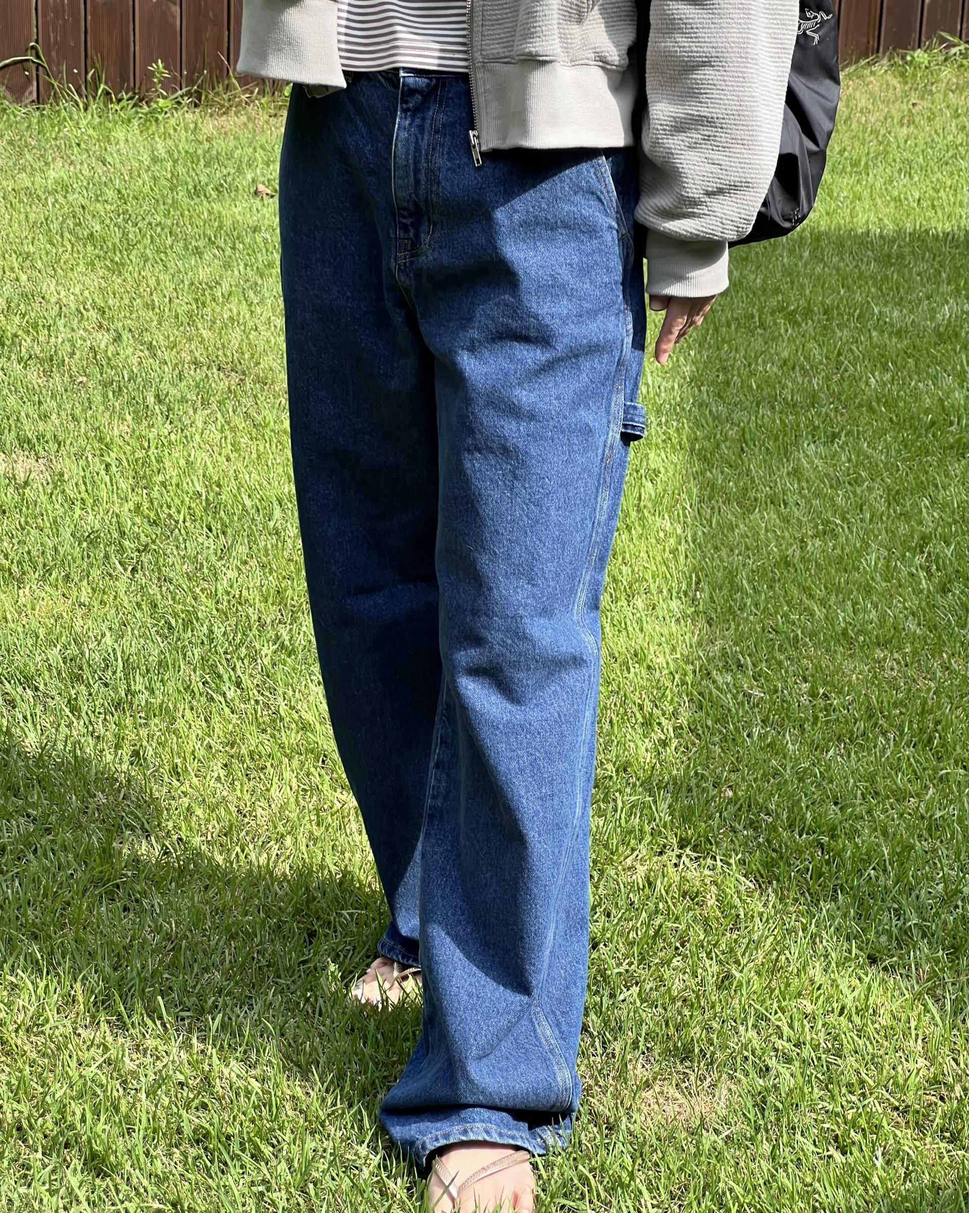 루즈한 핏 여유있는 실루엣이 멋스러운 다크 블루 컬러의 카펜터 데님 입니다.