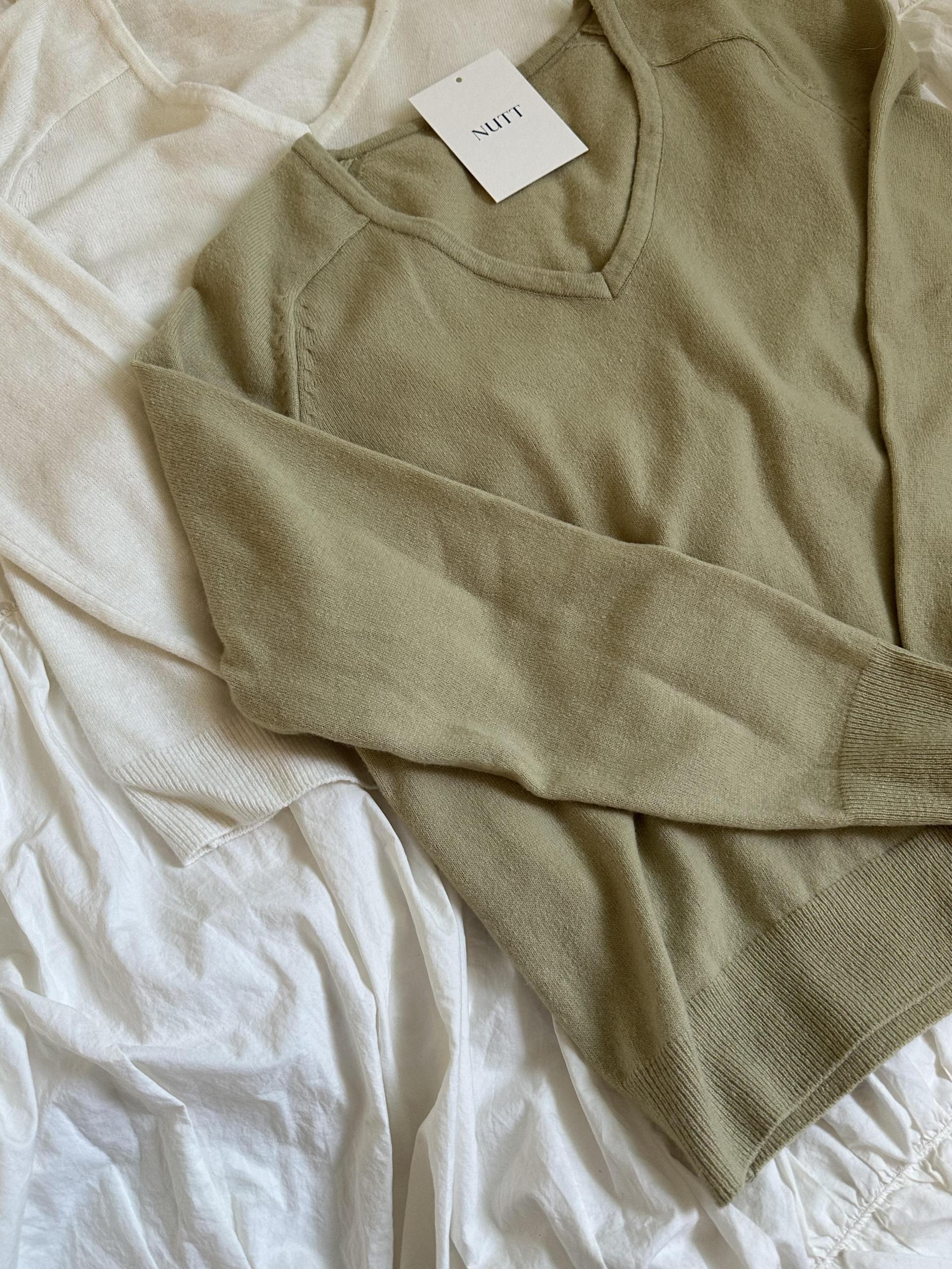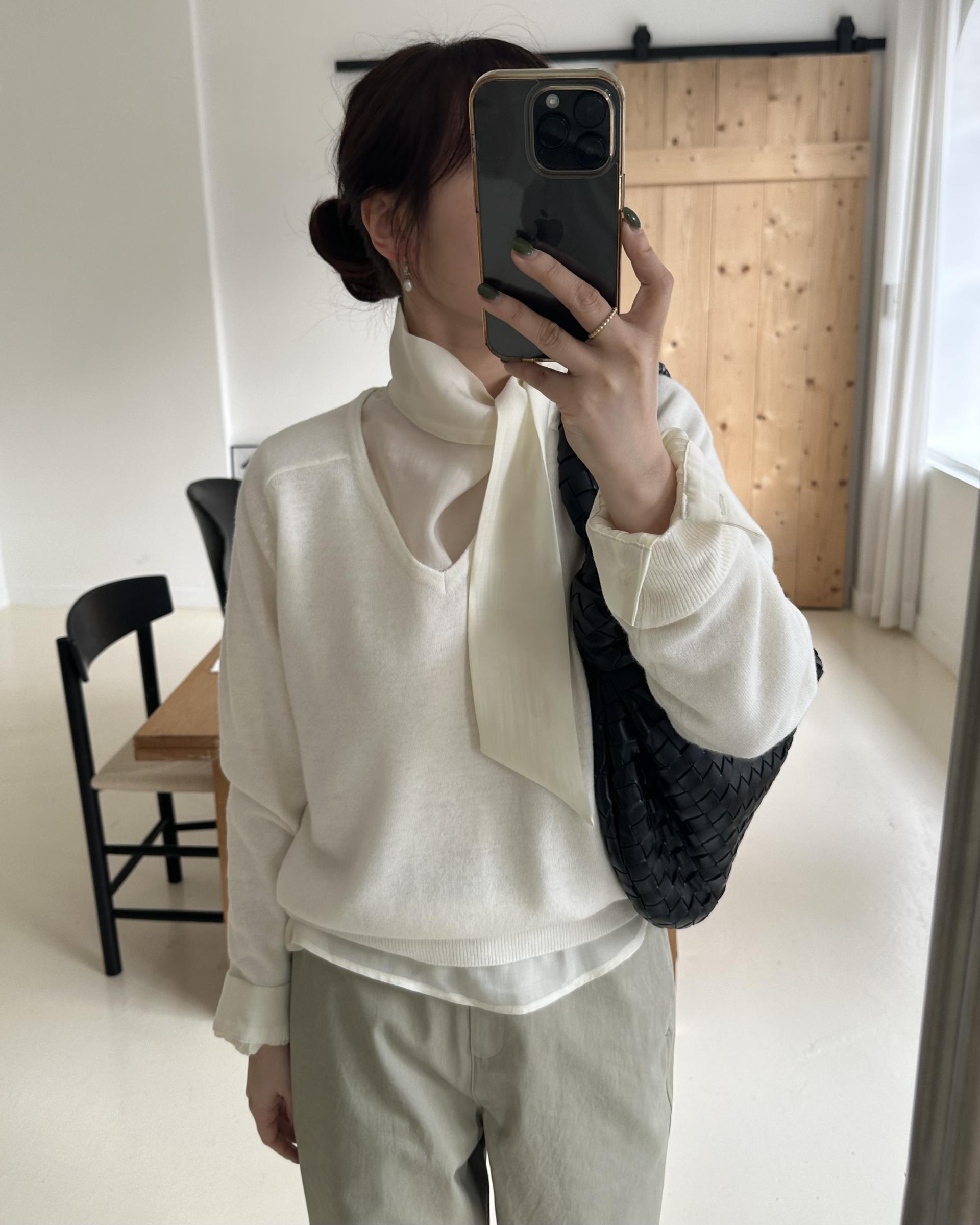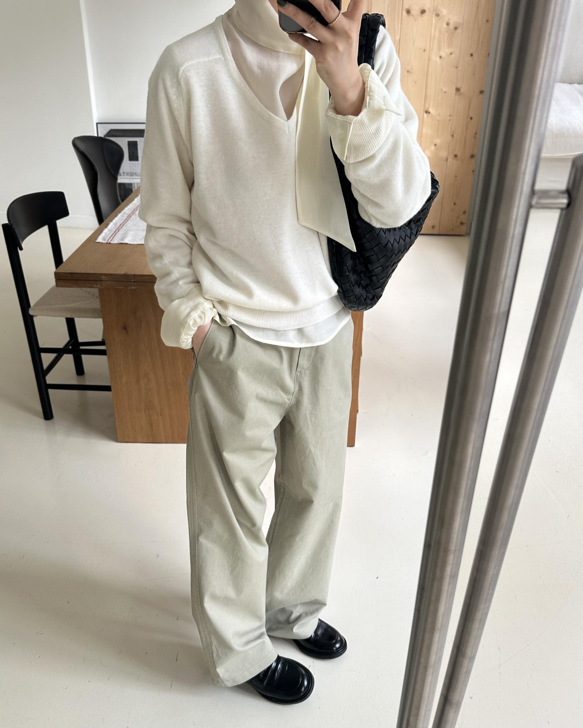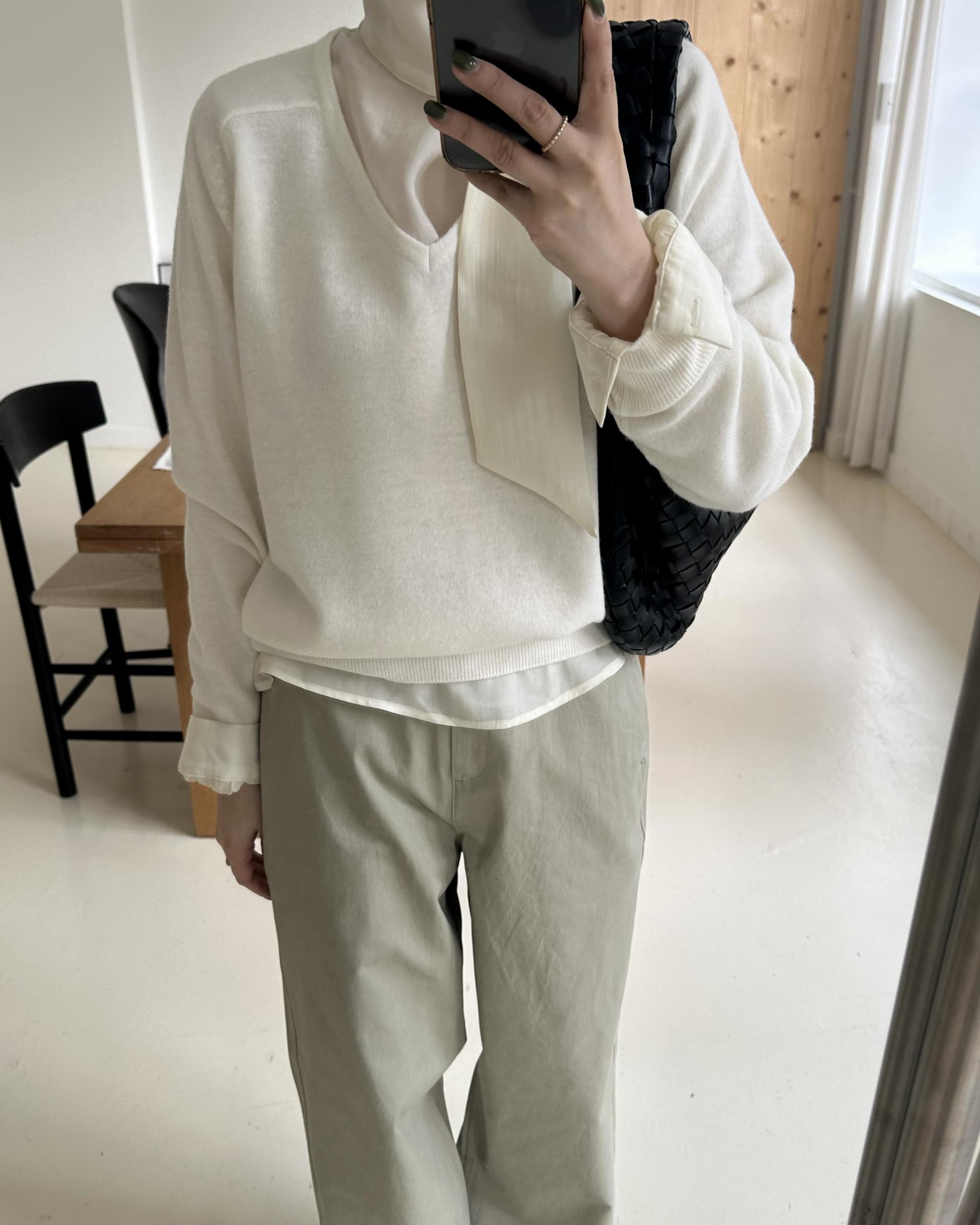 canna merino v-neck knit (ivory/pink beige)