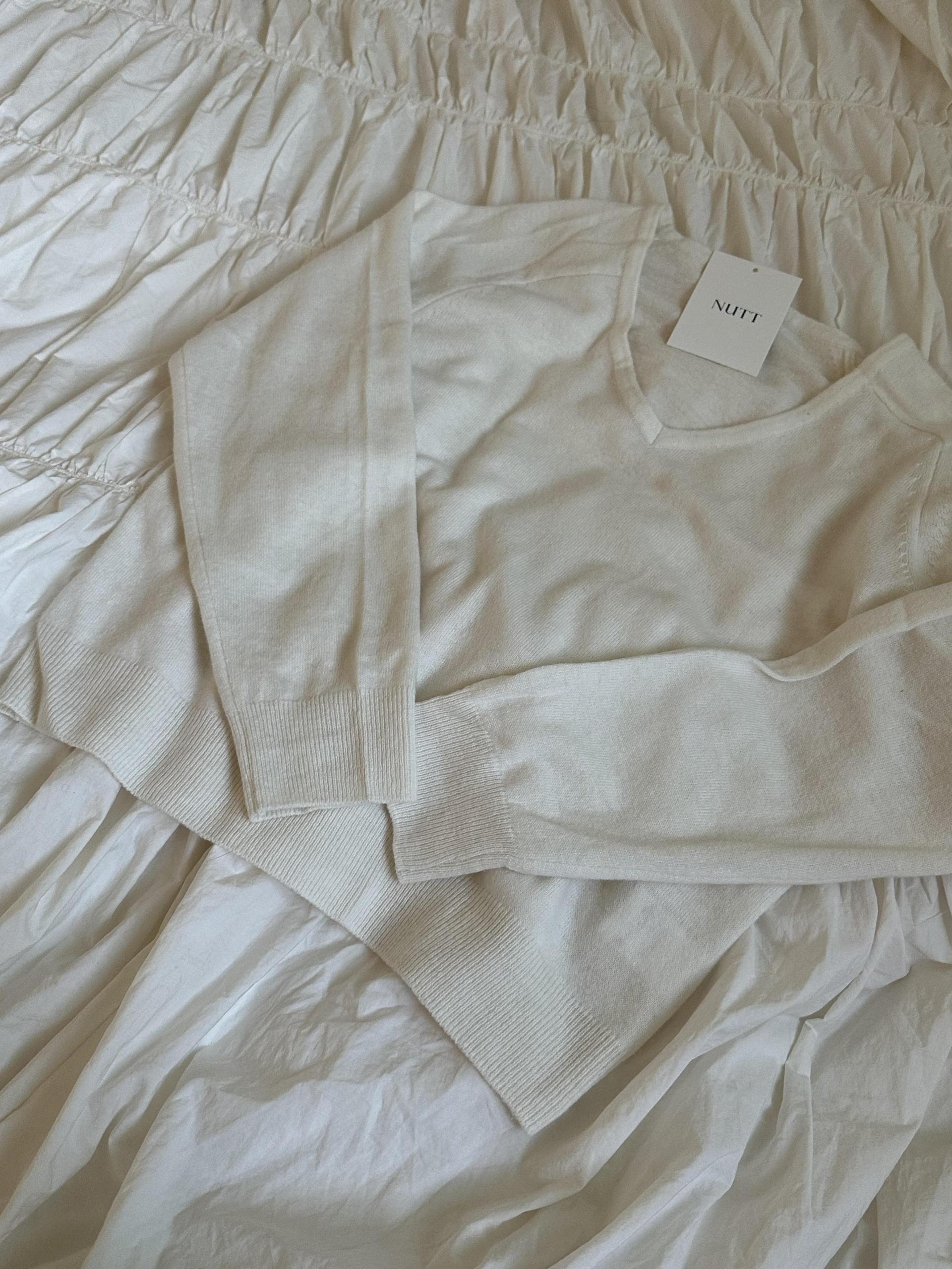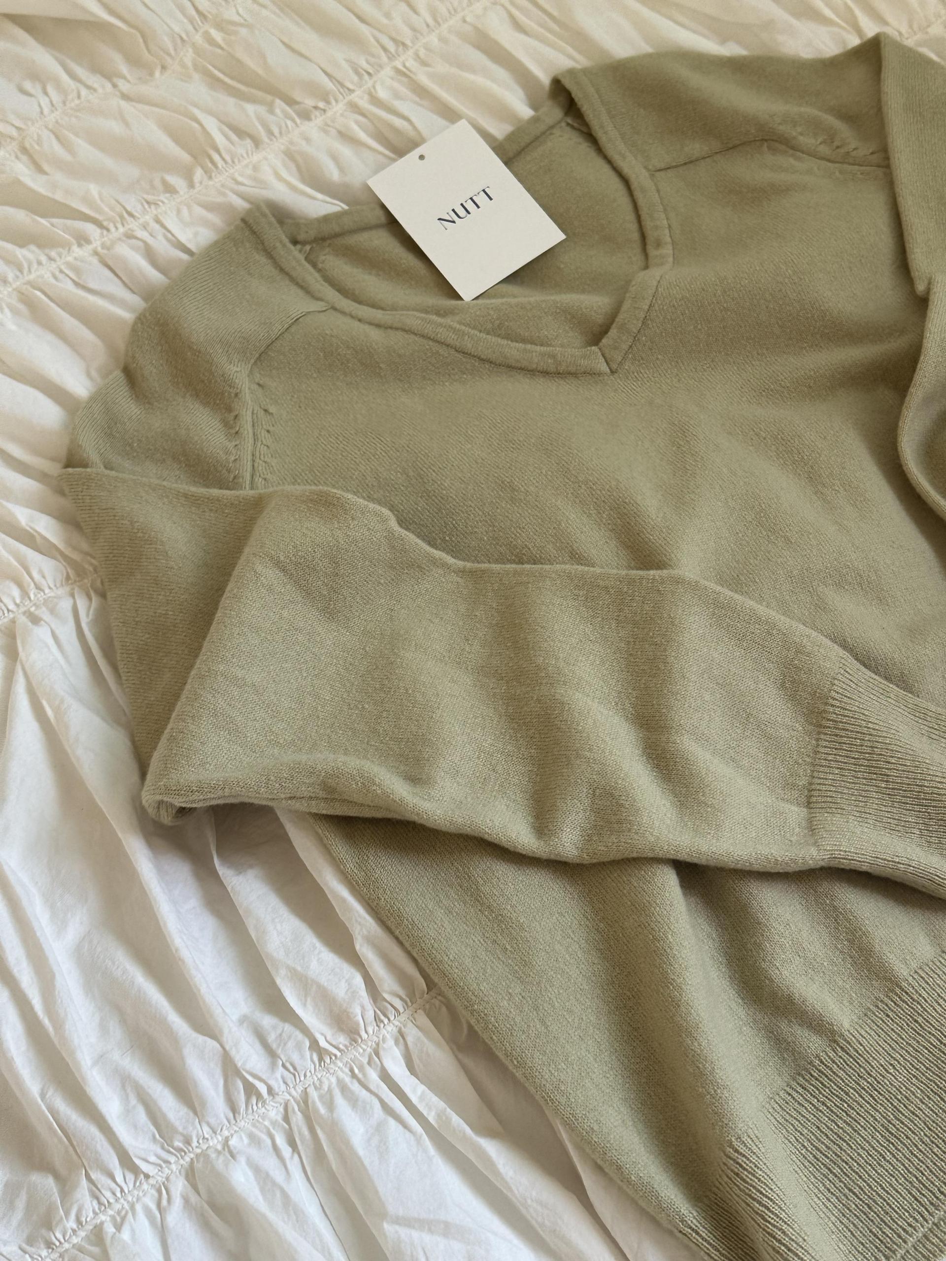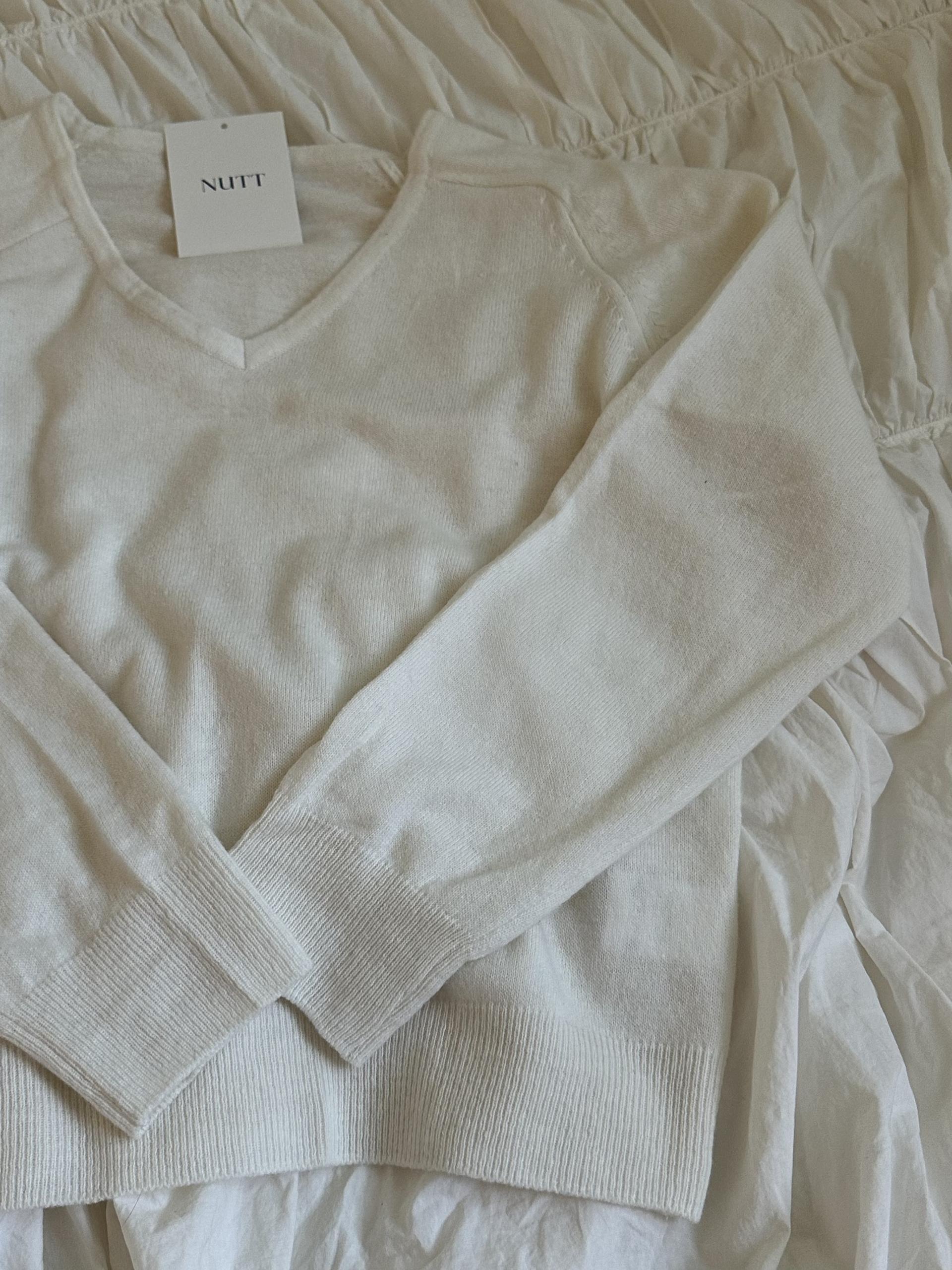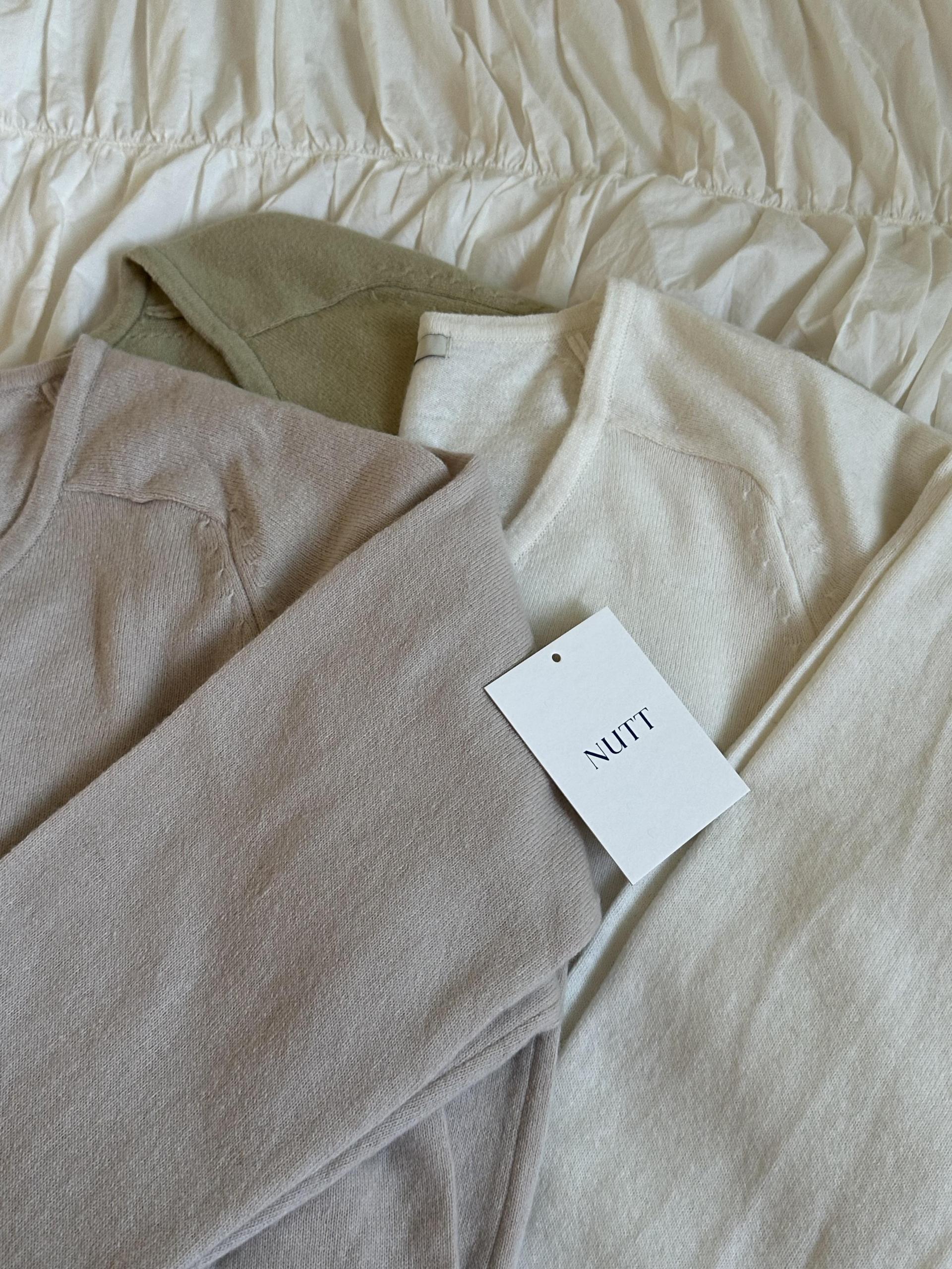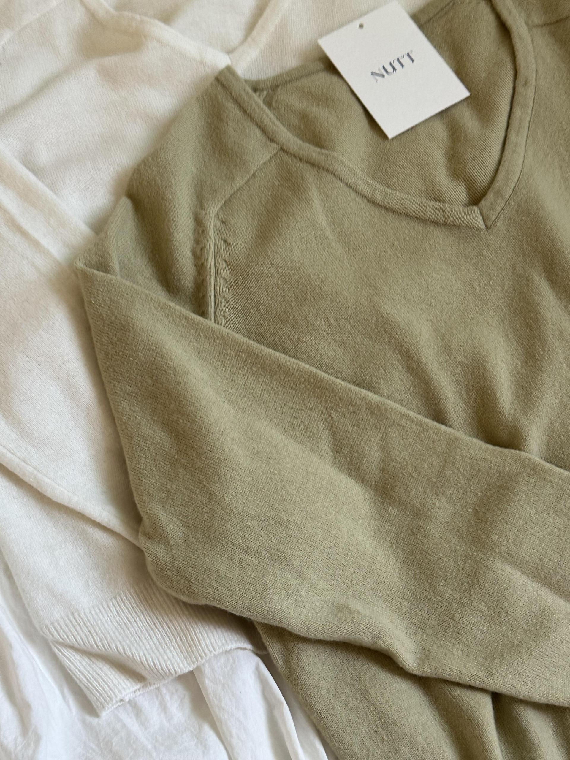 canna merino v-neck knit (ivory/pink beige)
