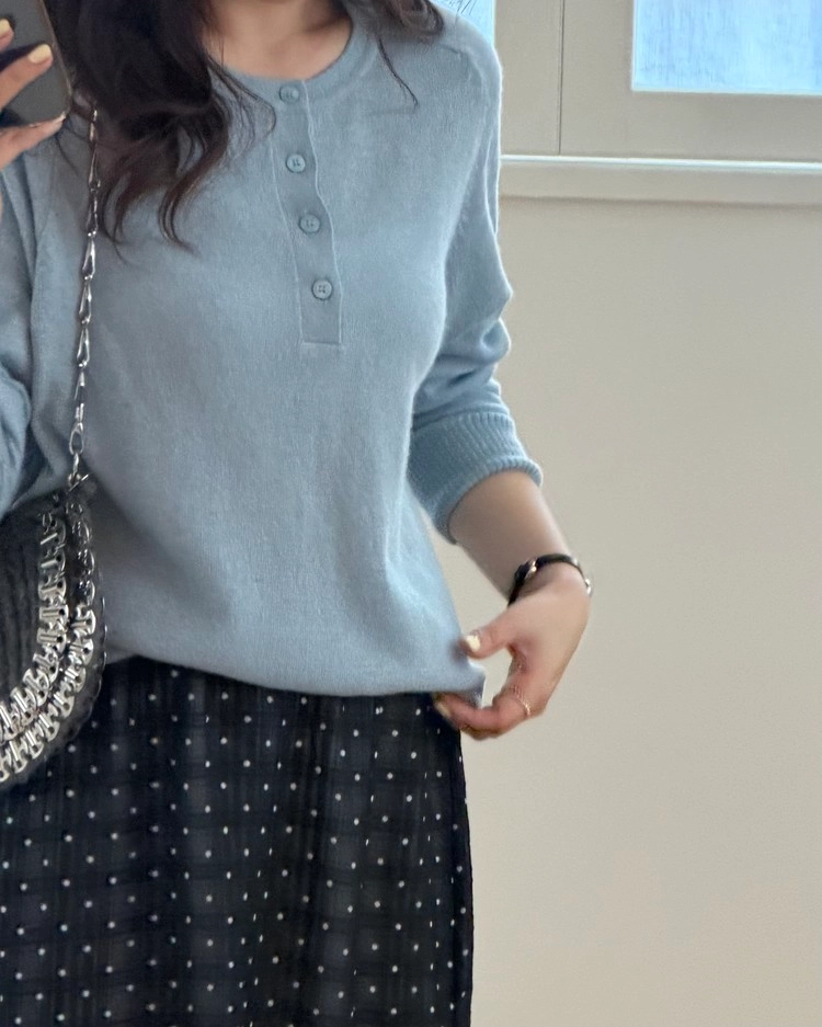 기본 라운드 니트에서 버튼 디테일만 생긴건데