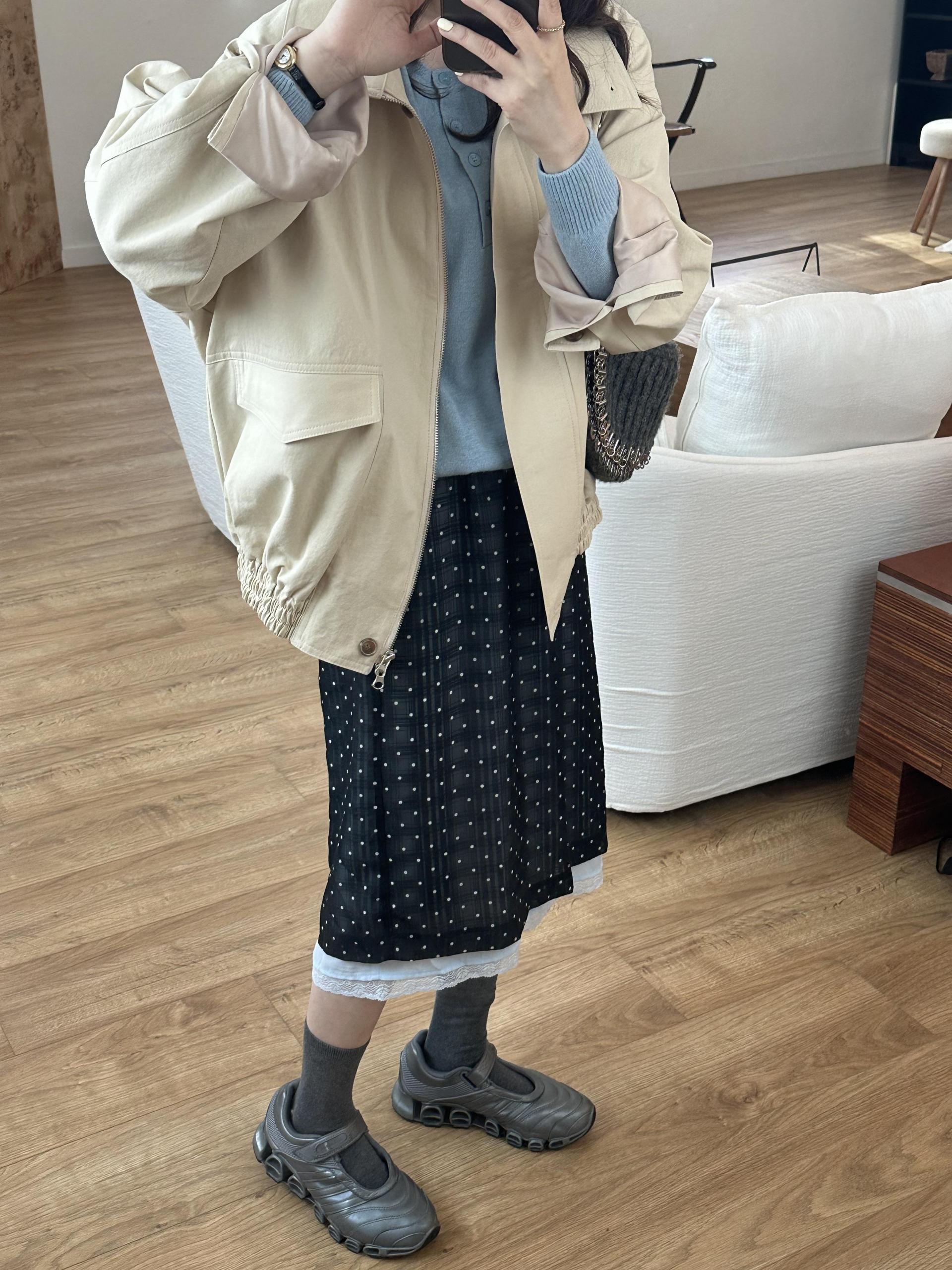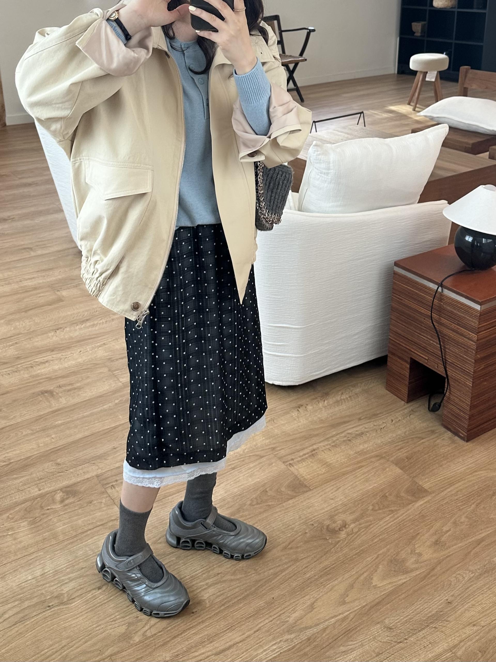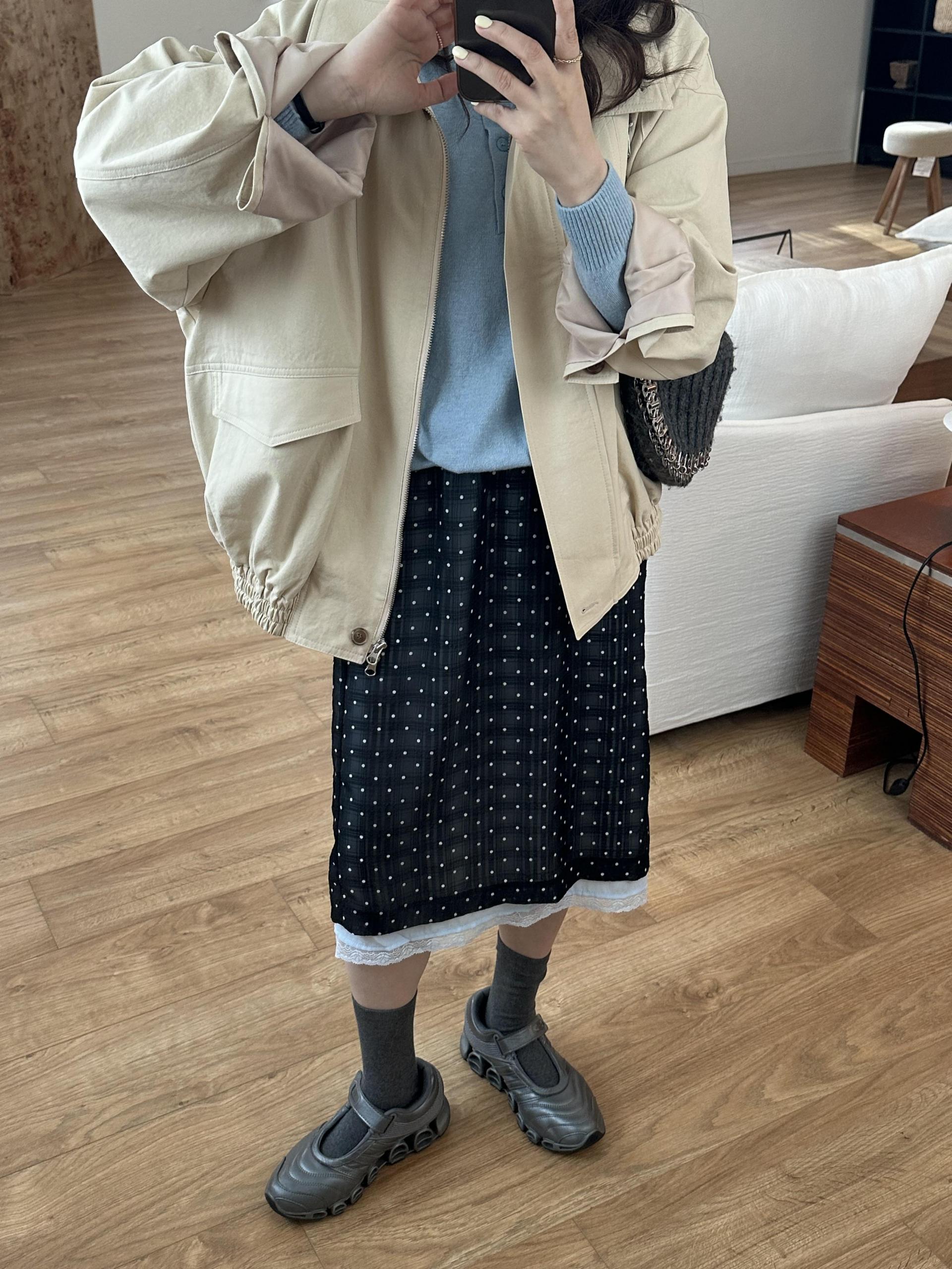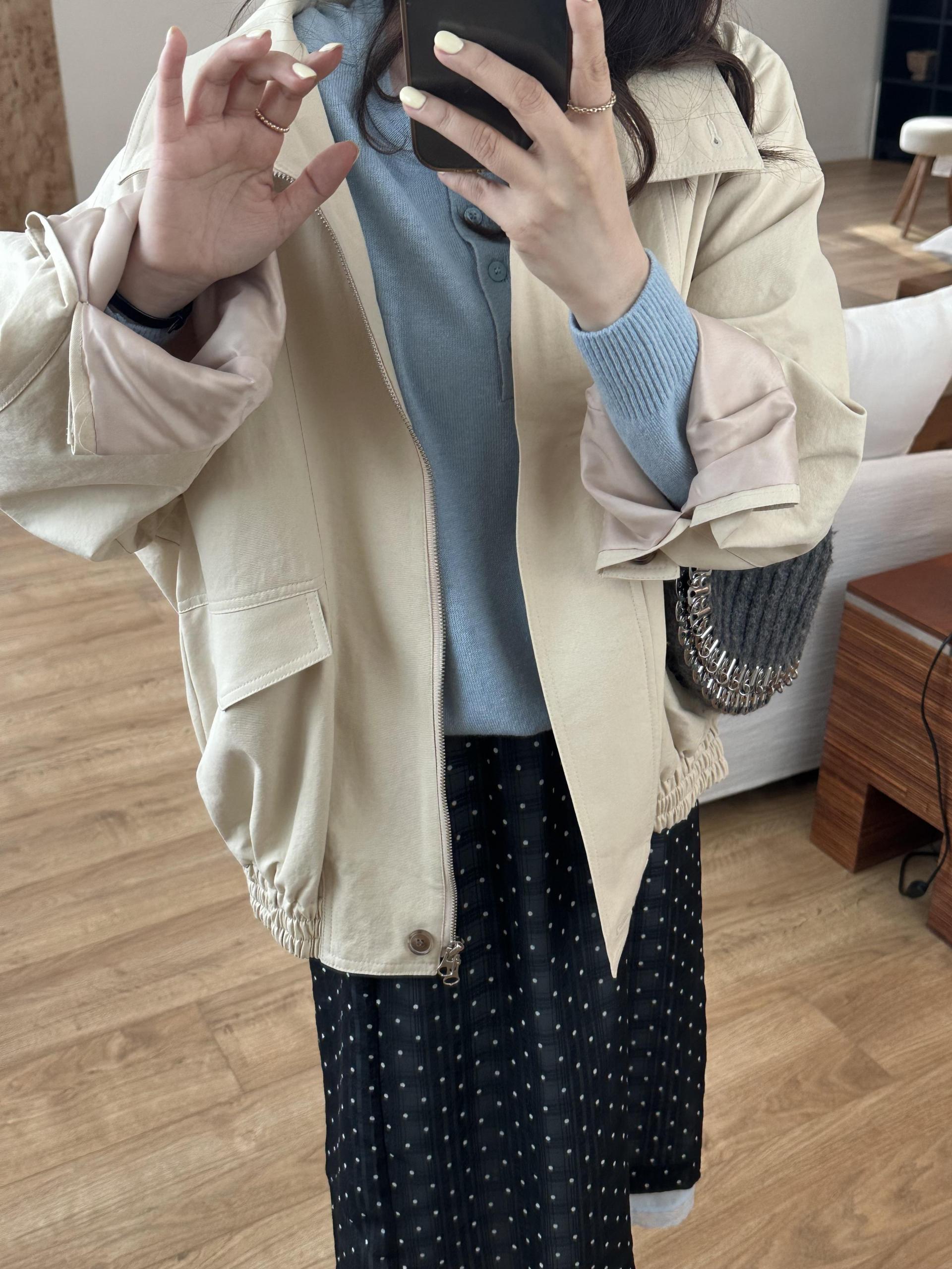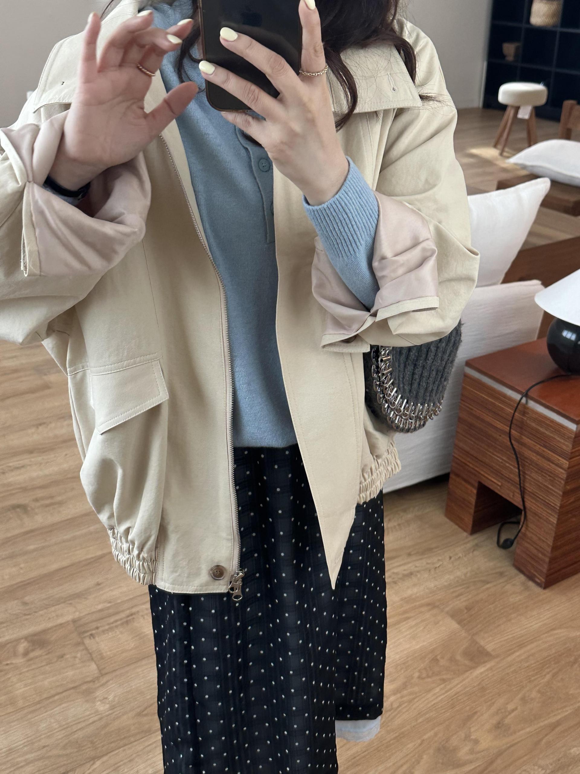 size - 총기장56/어깨라운드/가슴단면47.5/팔기장52.5(cm)