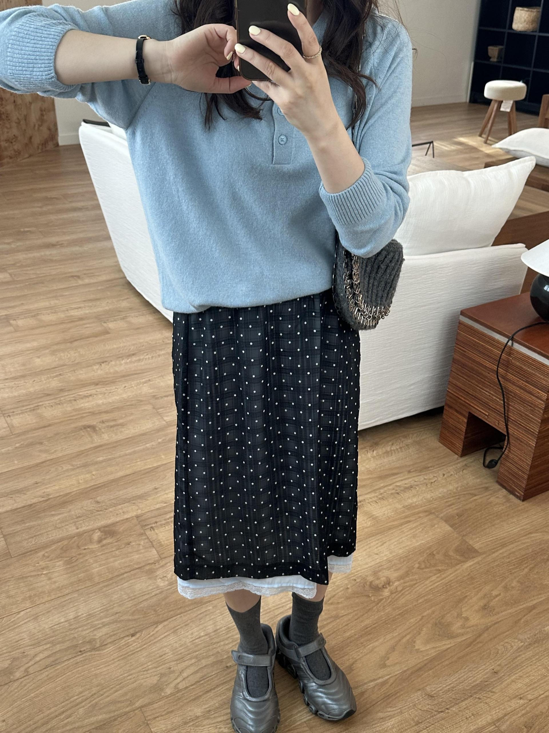 초여름까지 가능한 두께감의 가벼운 니트에요.