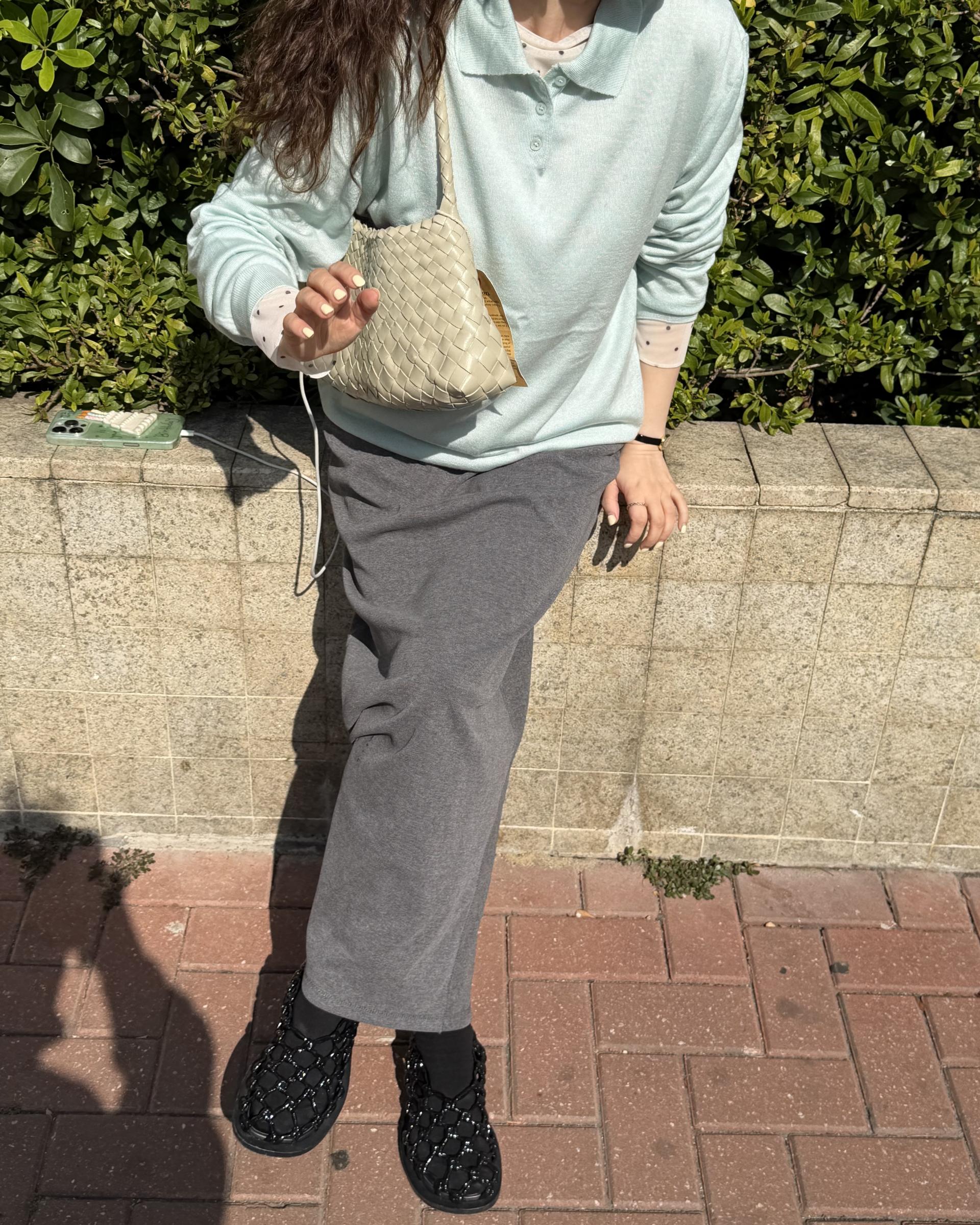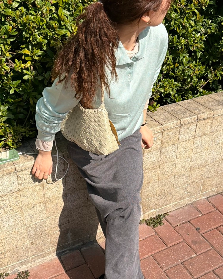 카라 니트라 단정하고 깔끔한 느낌인데, 컬러가 민트 컬러라 그런지