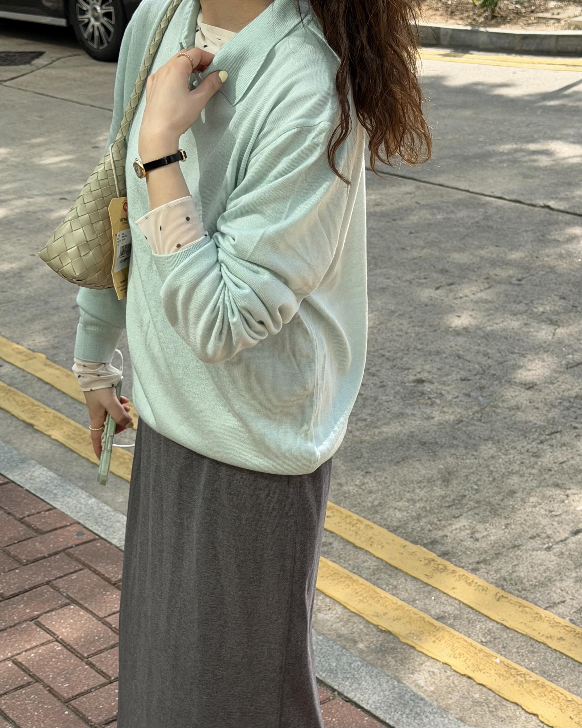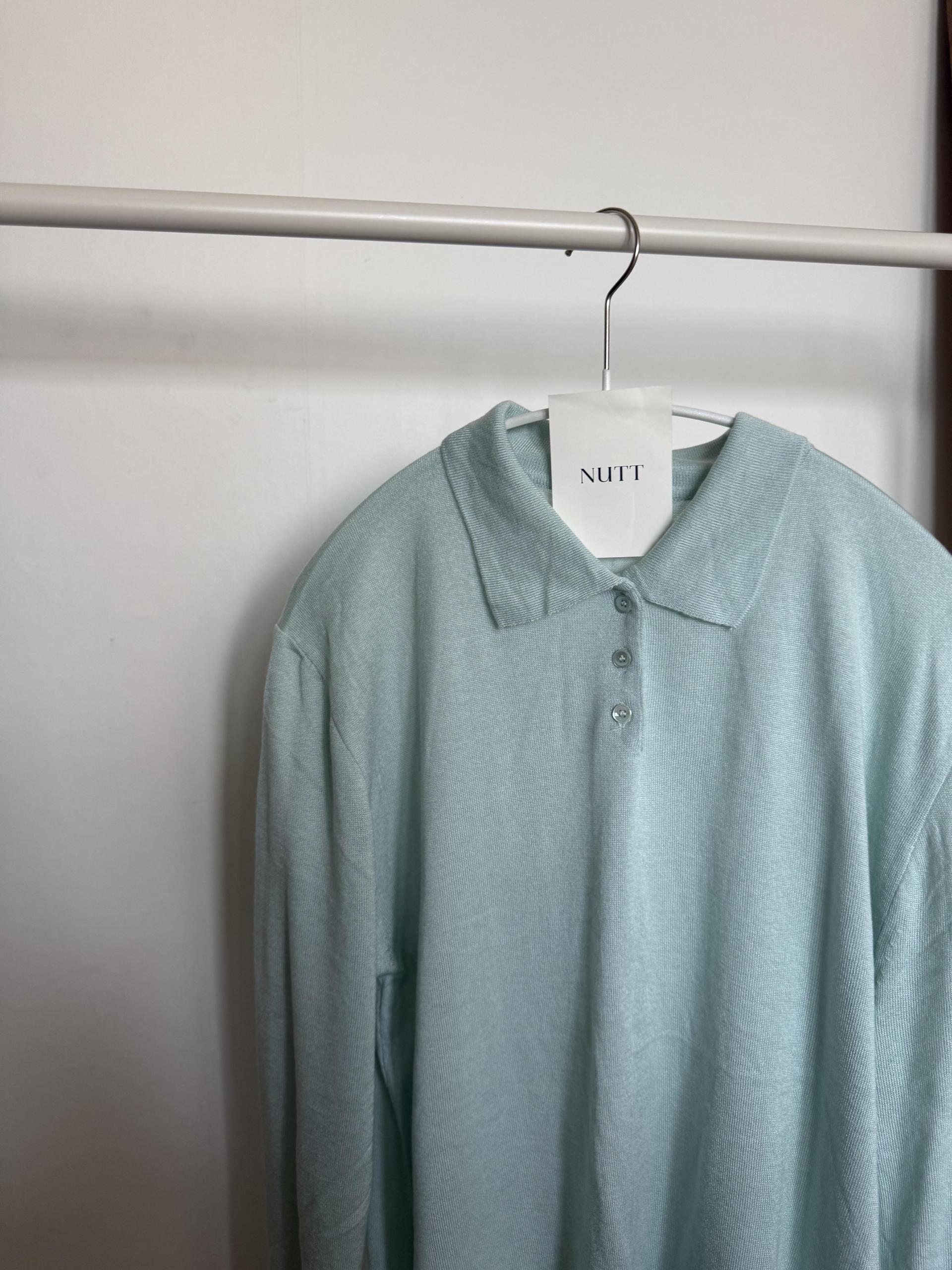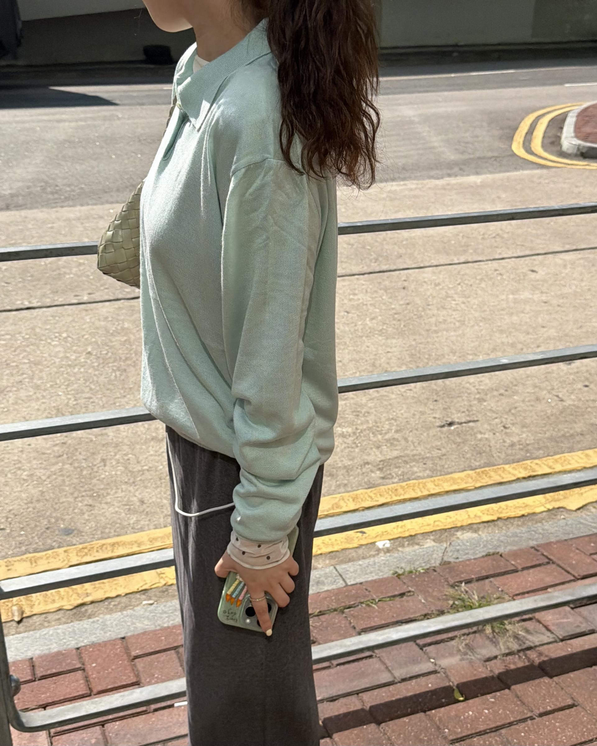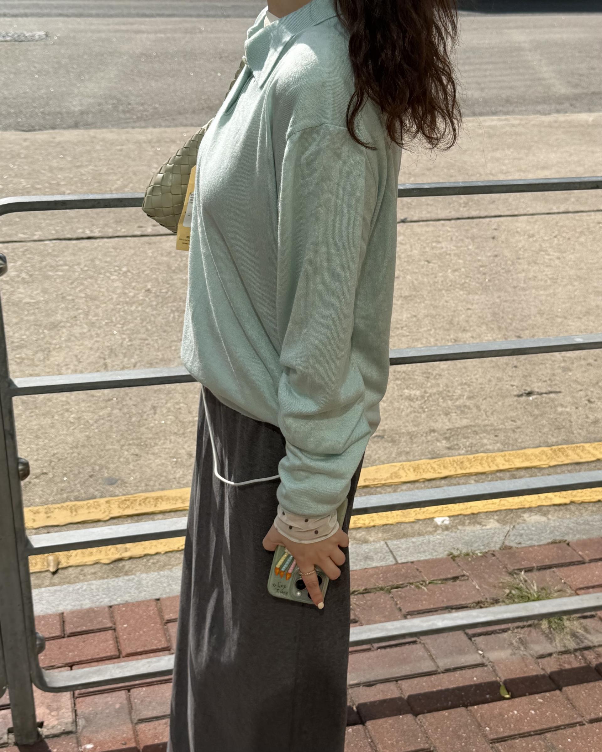 실키한 민트 카라 니트 ‘mellow’ 입니다.