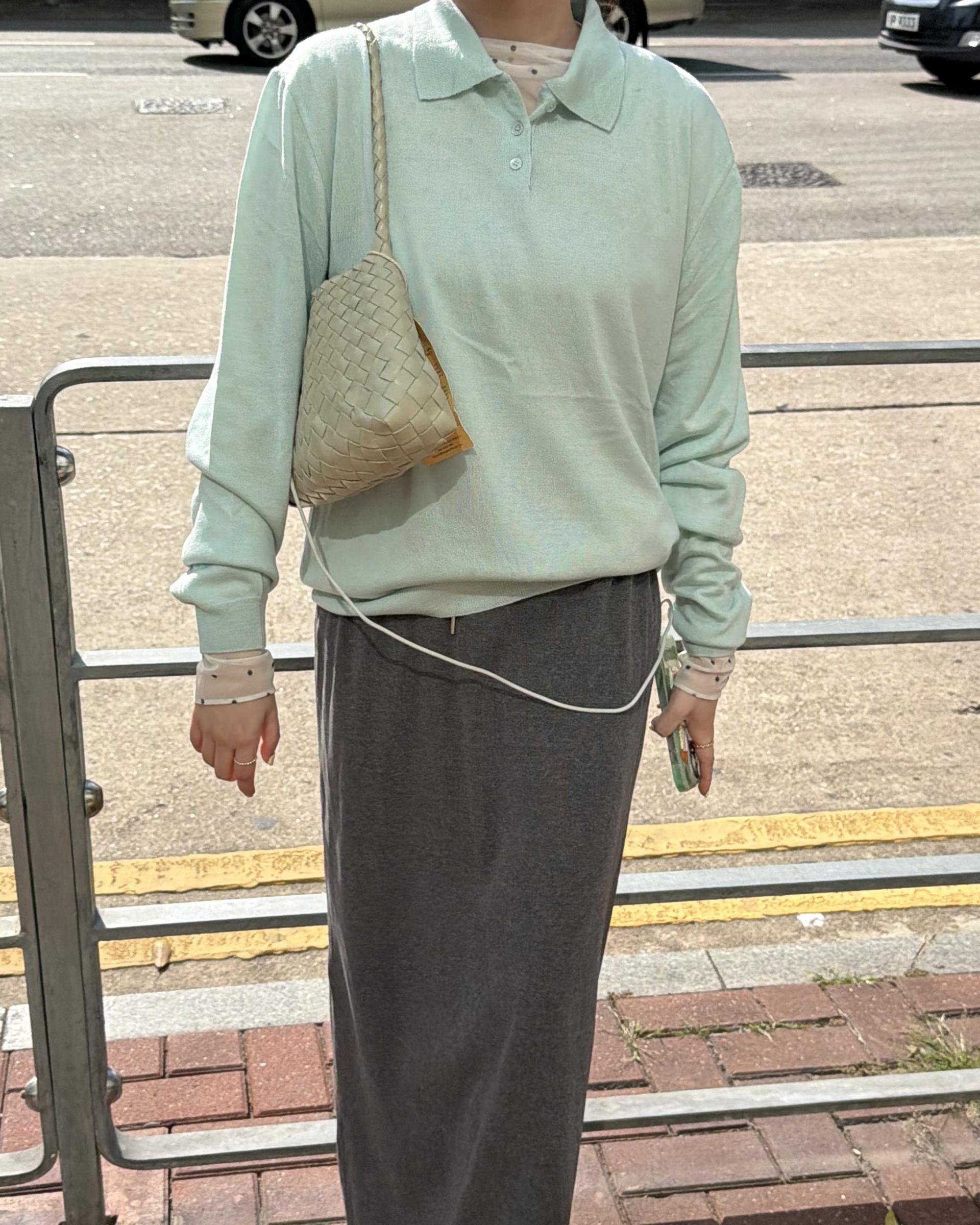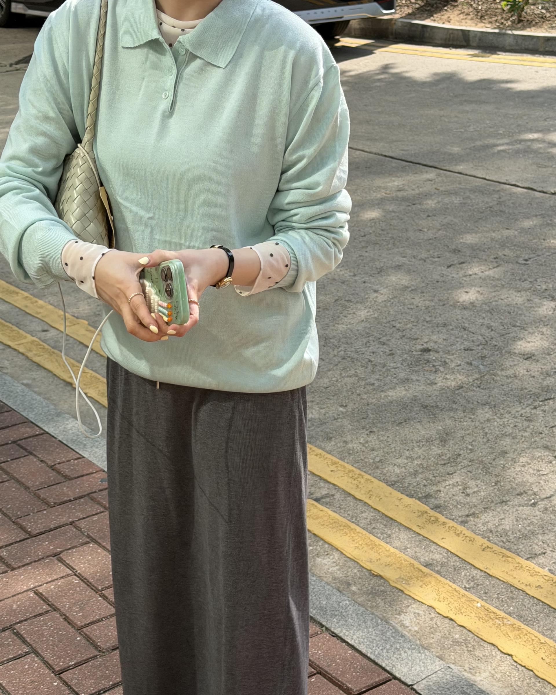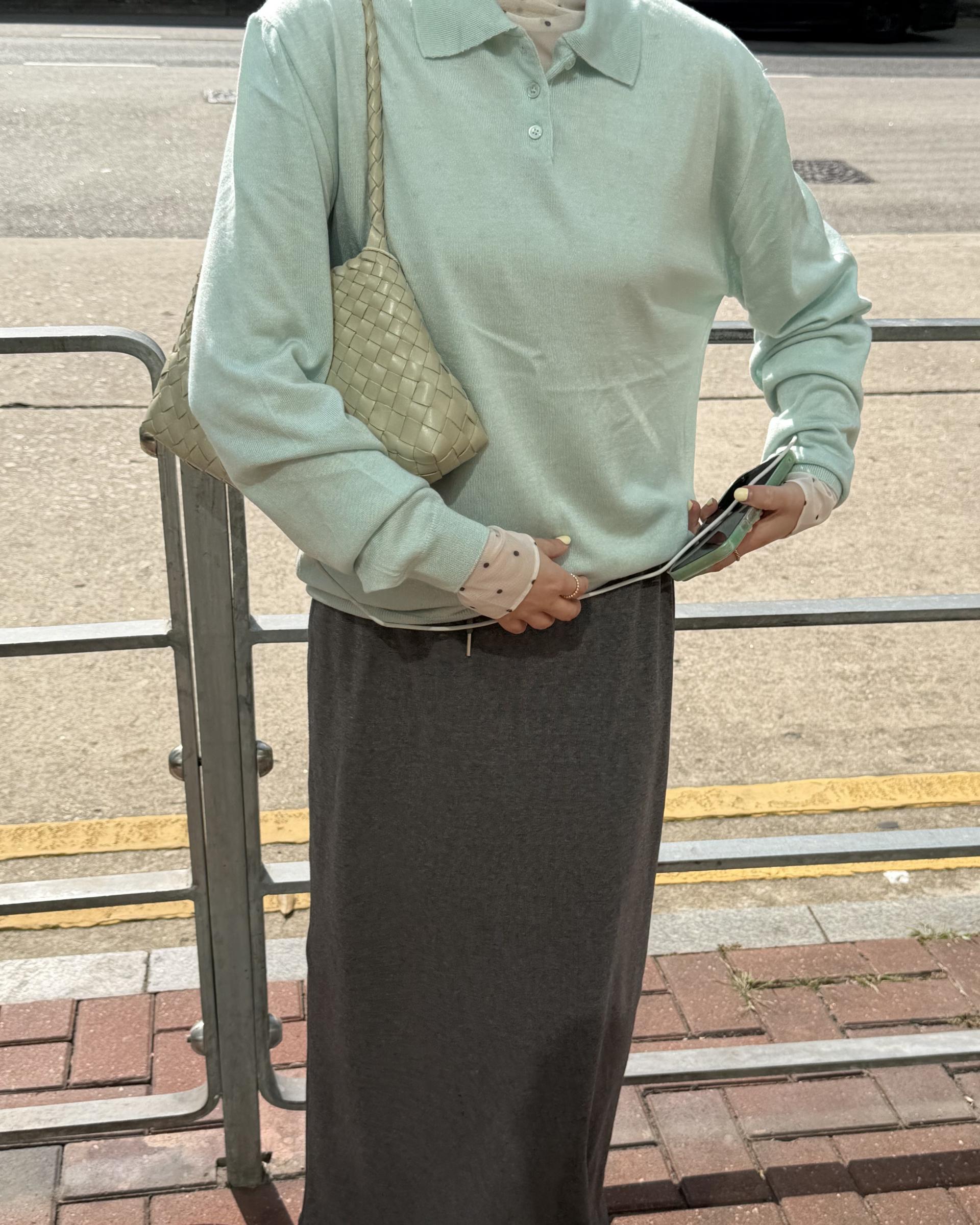 실키한 민트 카라 니트 ‘mellow’ 입니다.