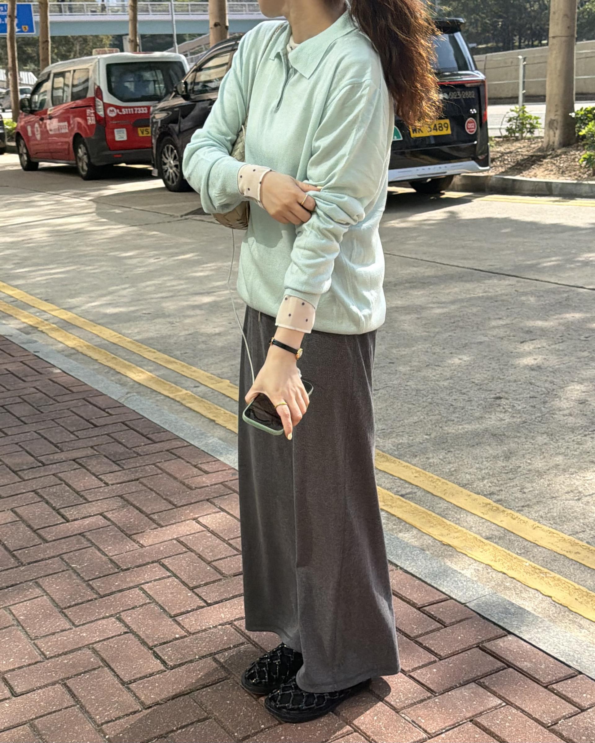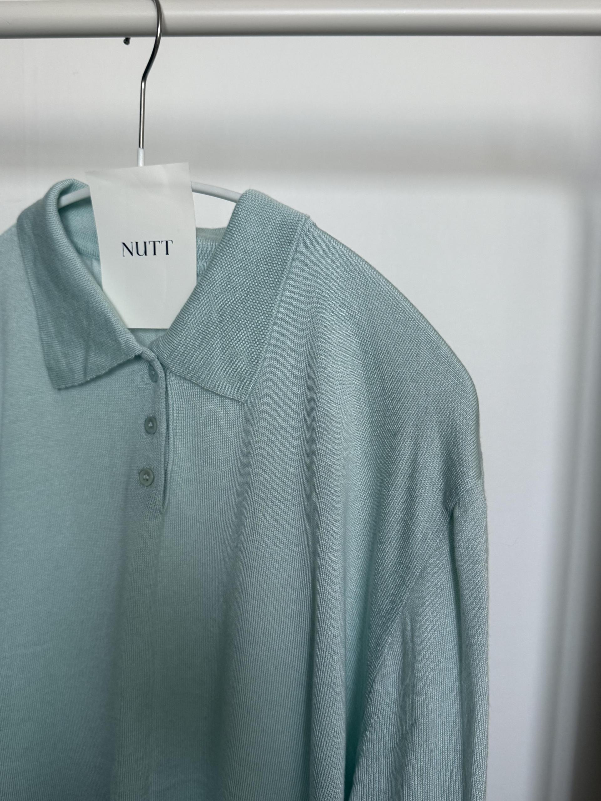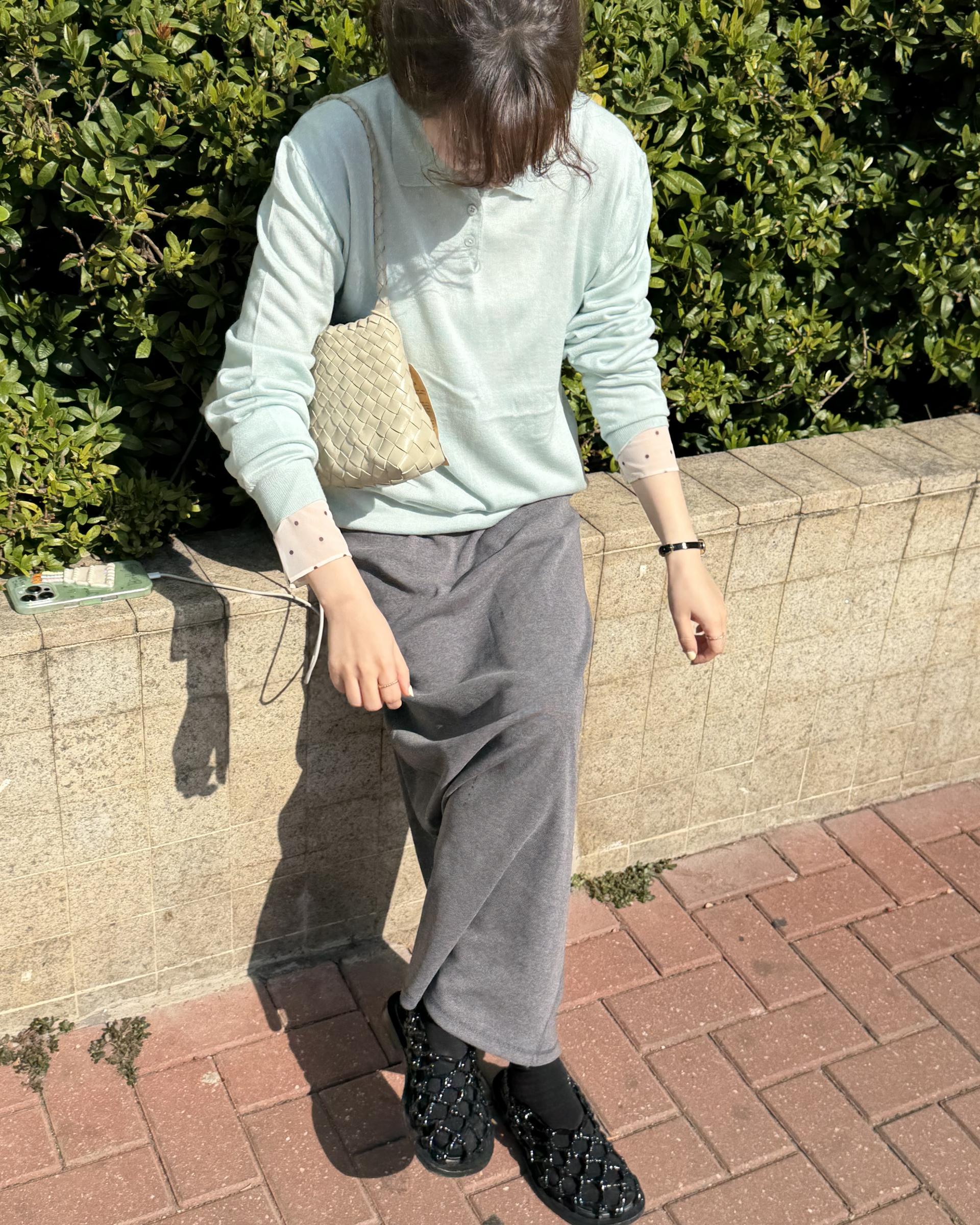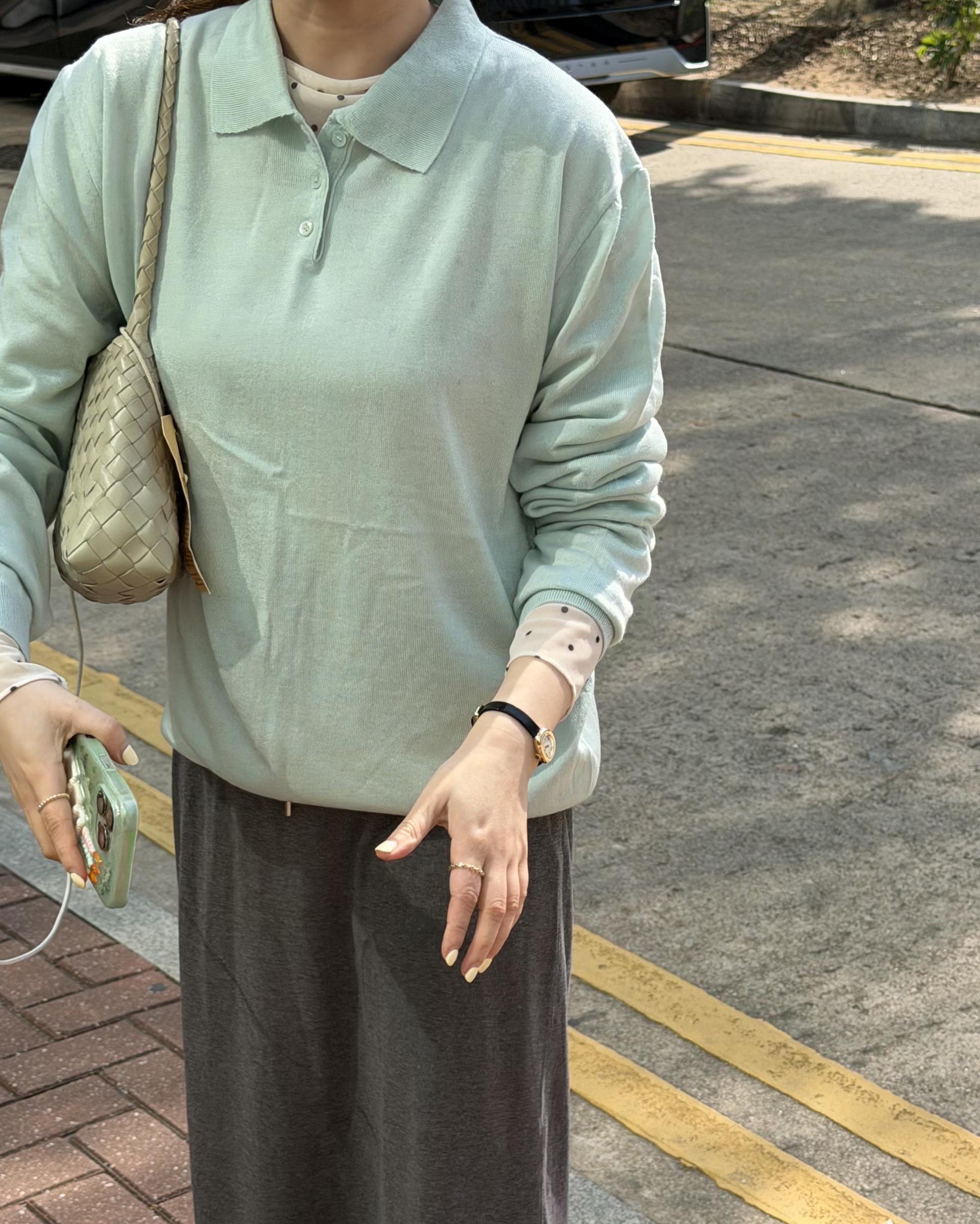 실키한 민트 카라 니트 ‘mellow’ 입니다.