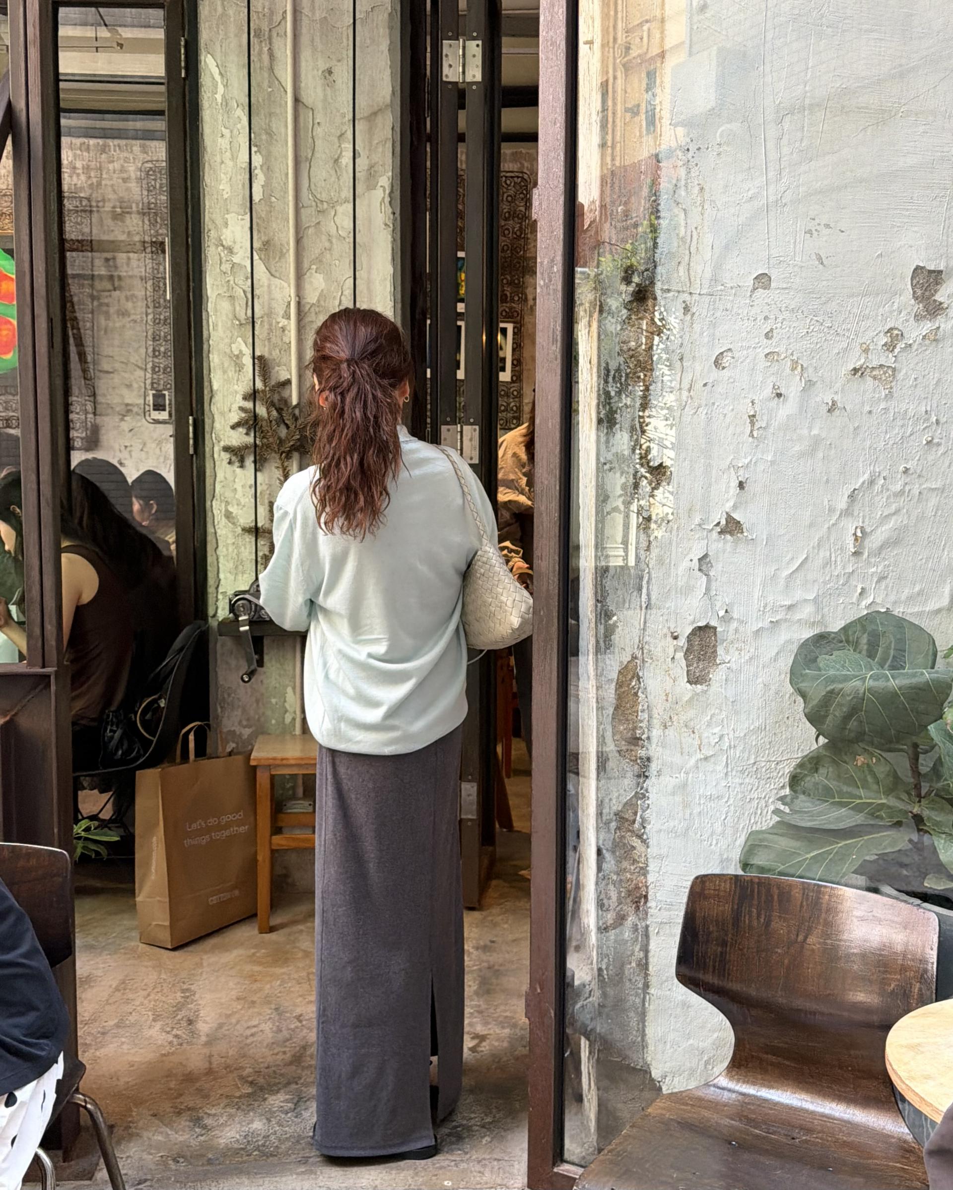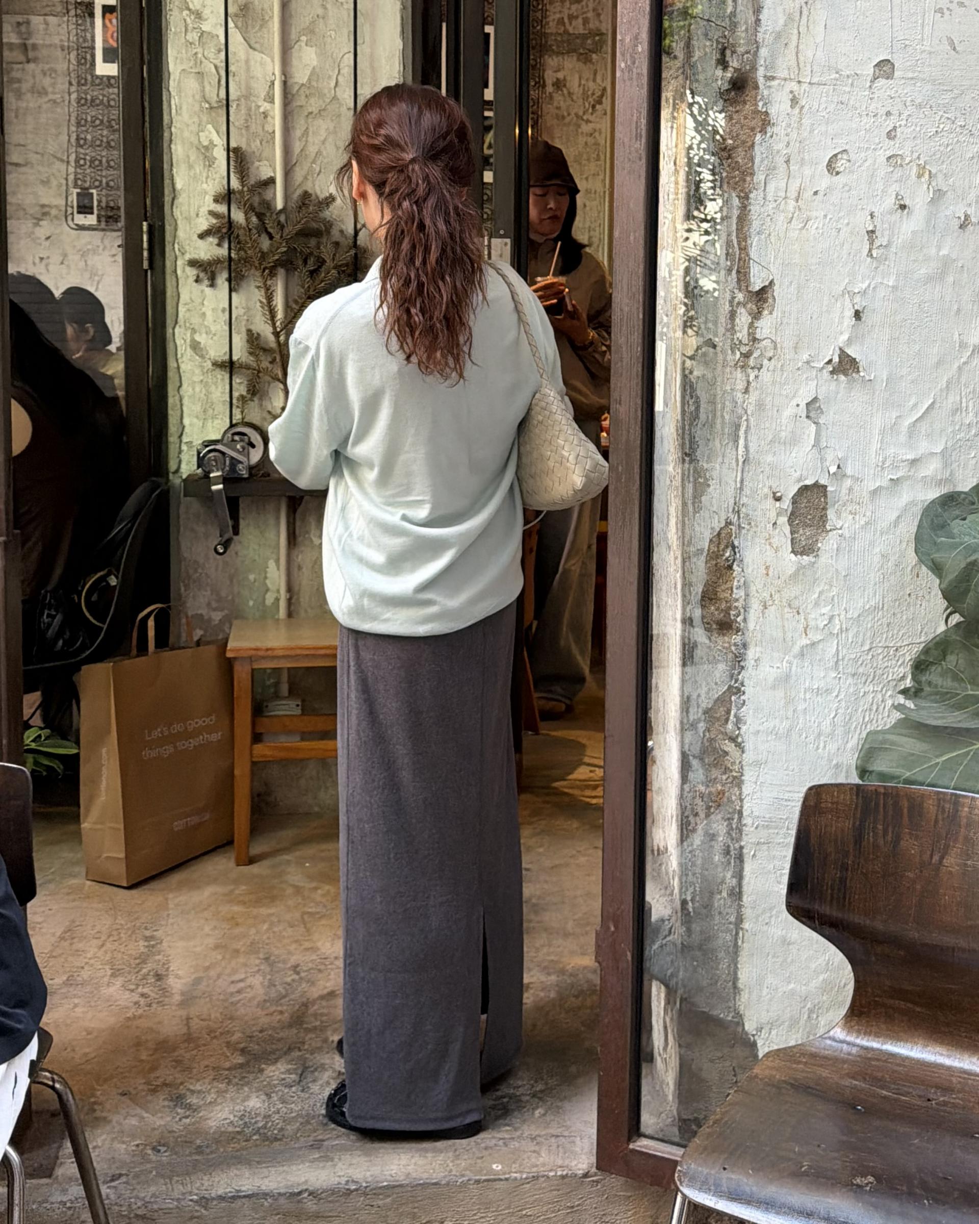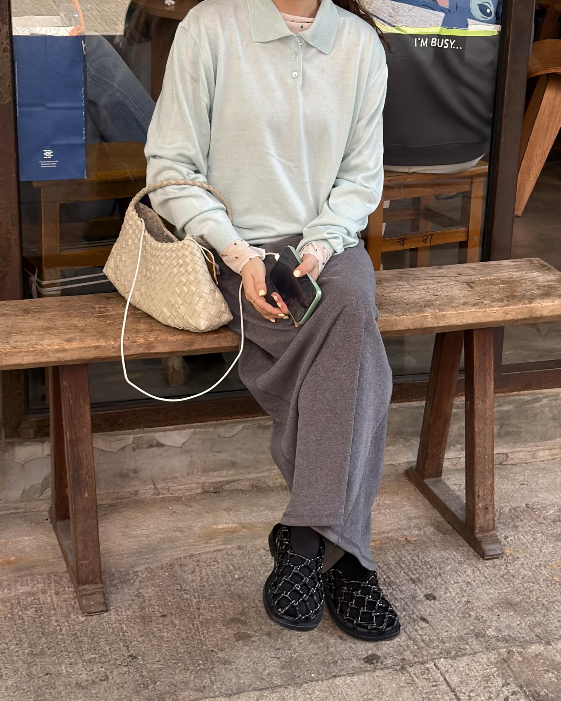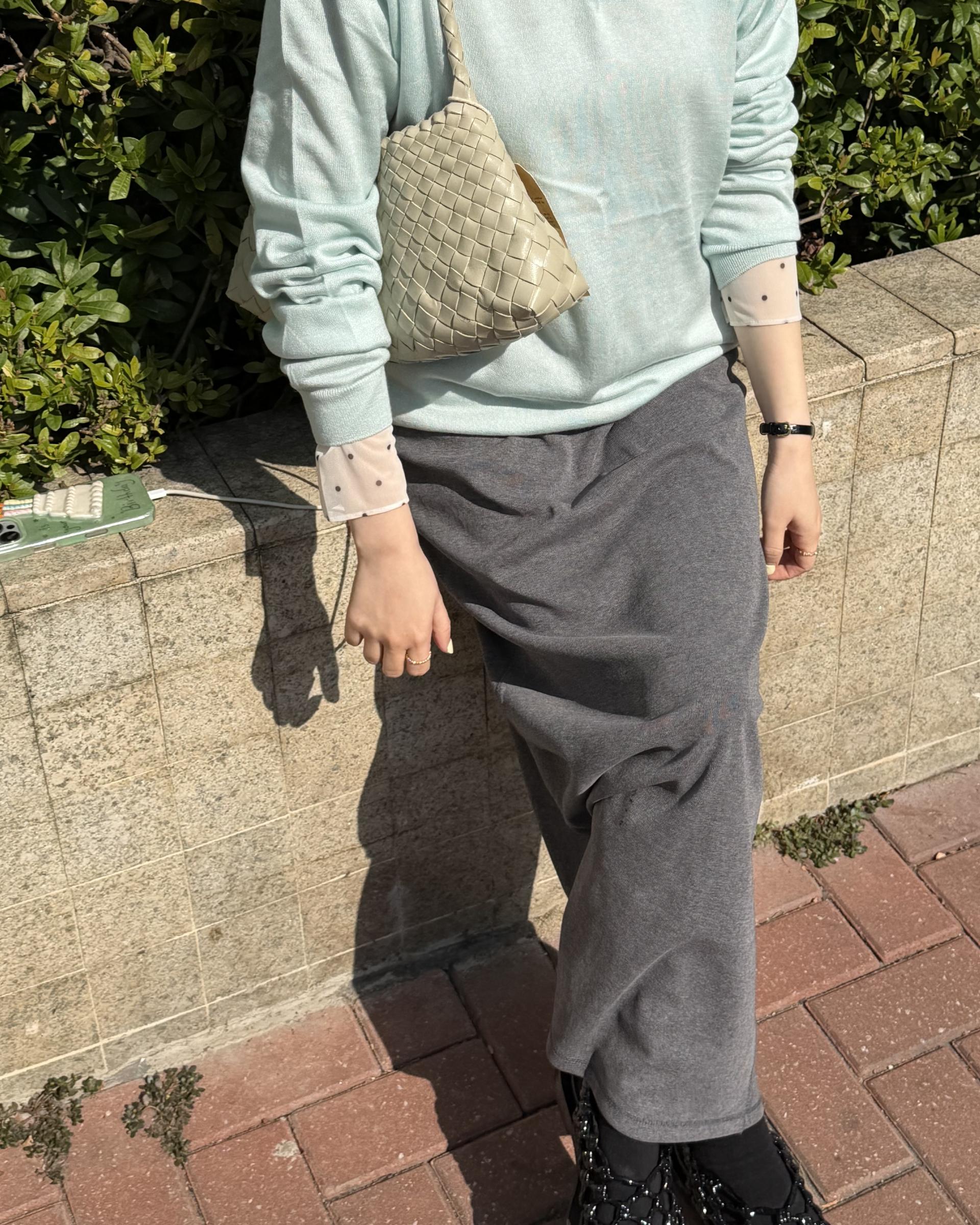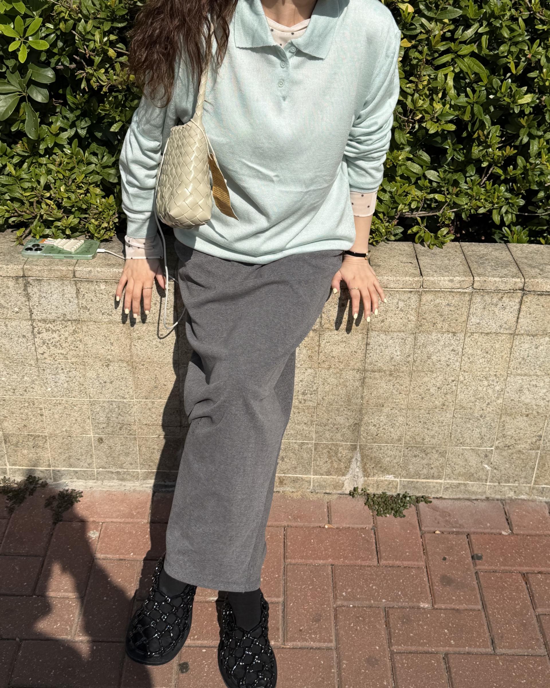 가벼운 니트라 단품으로 착용하셔도 좋고, 저처럼 레이어드 하셔도 좋은 니트 입니다.