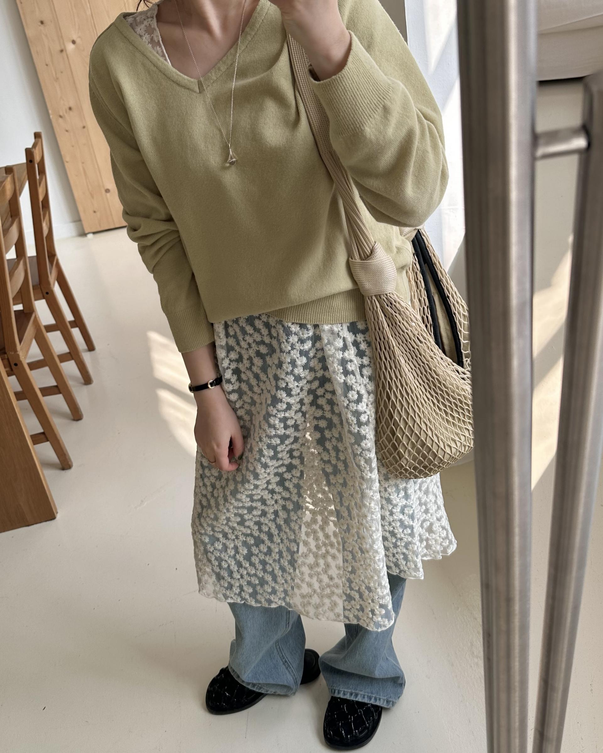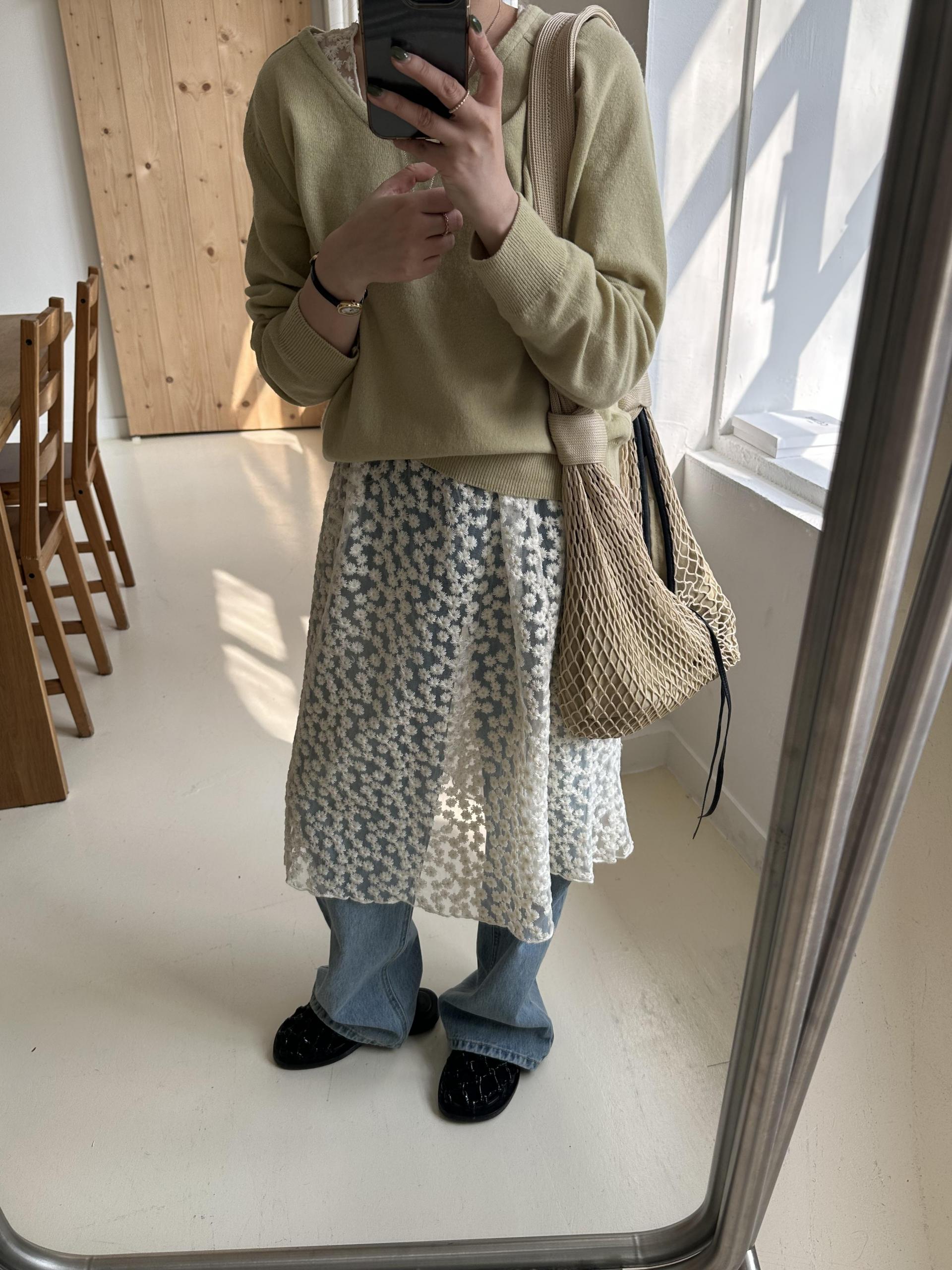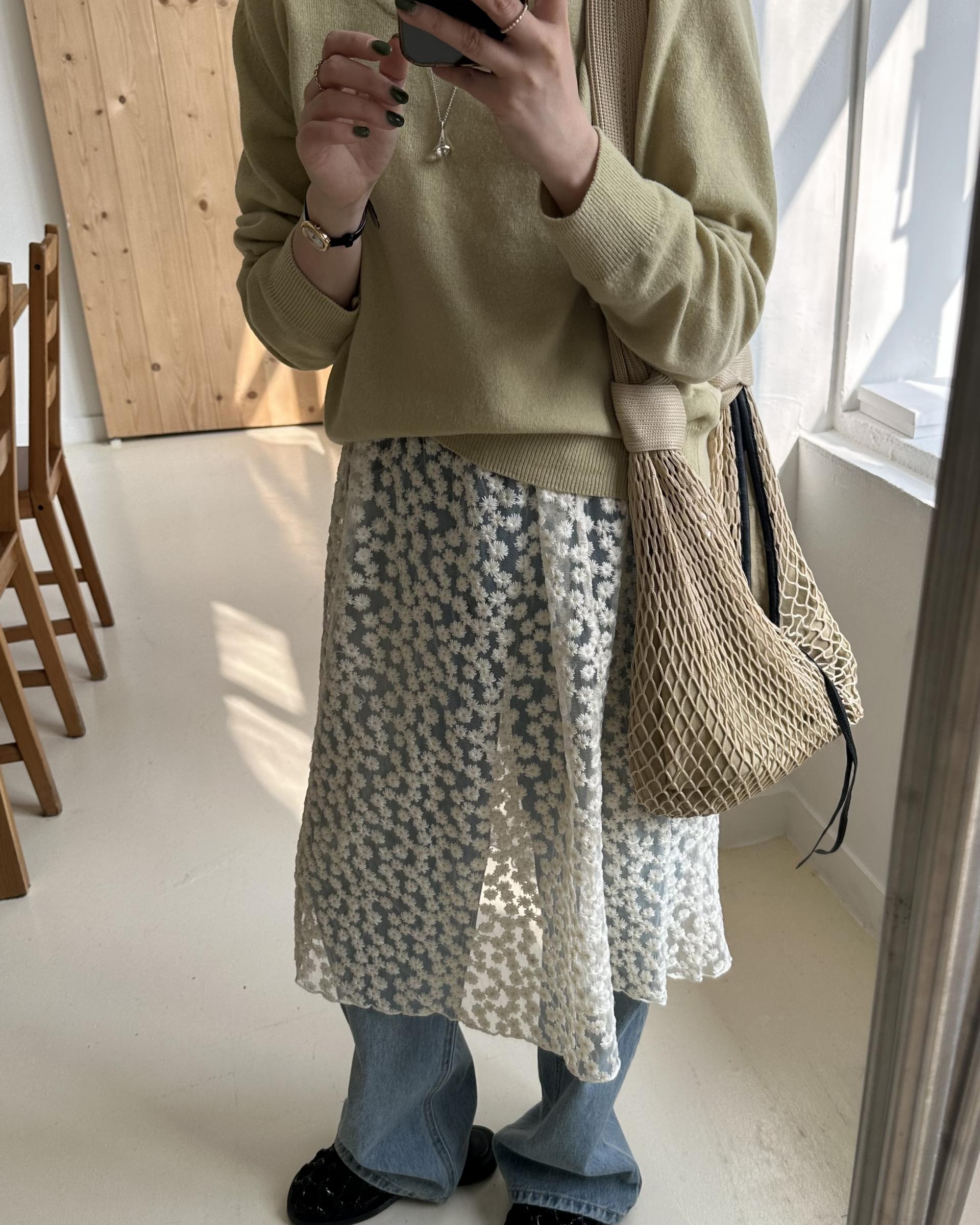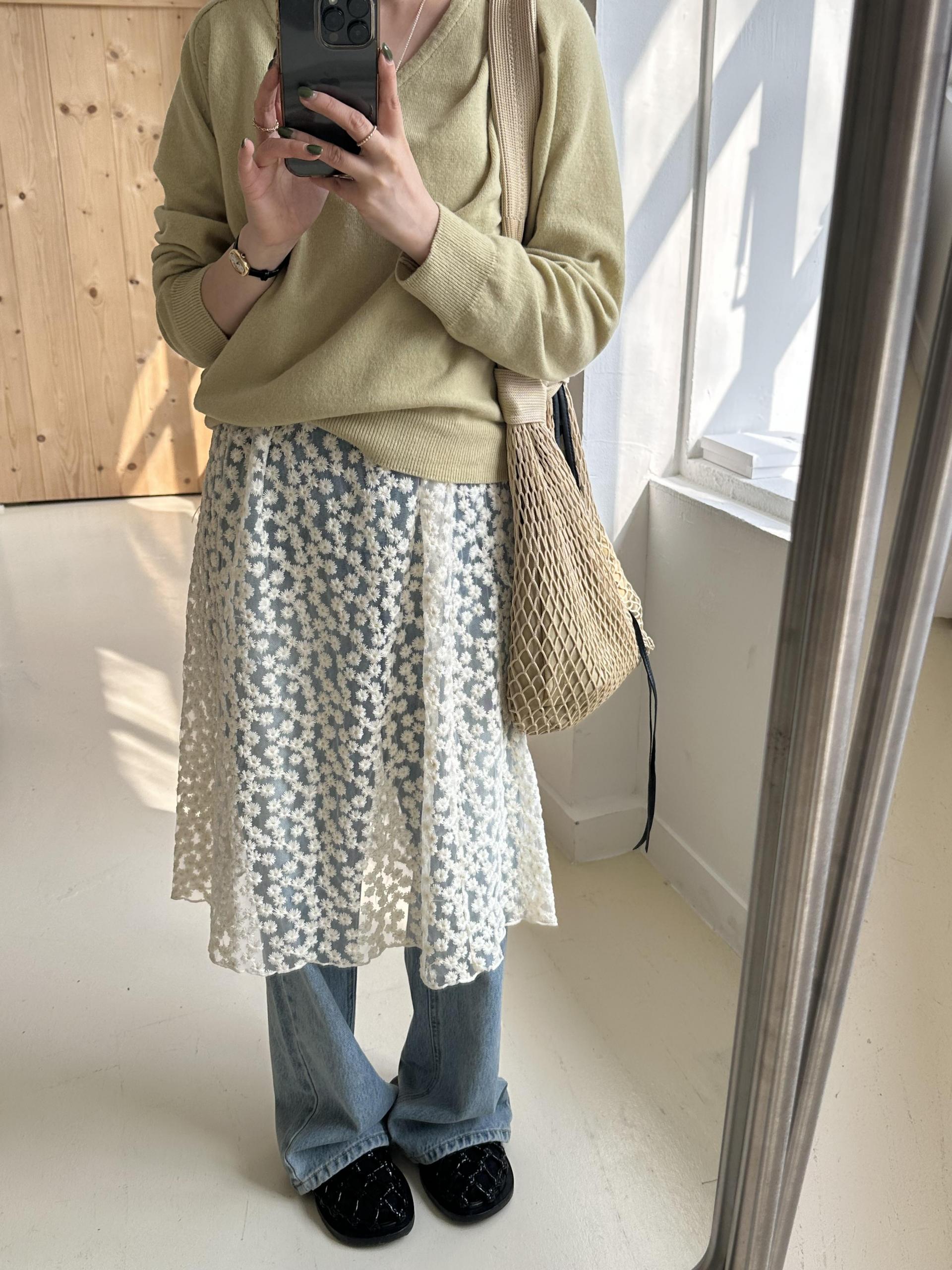 저는 안에 화이트 풀스커트랑 같이 입어봤는데 너무 예쁘더라구요.