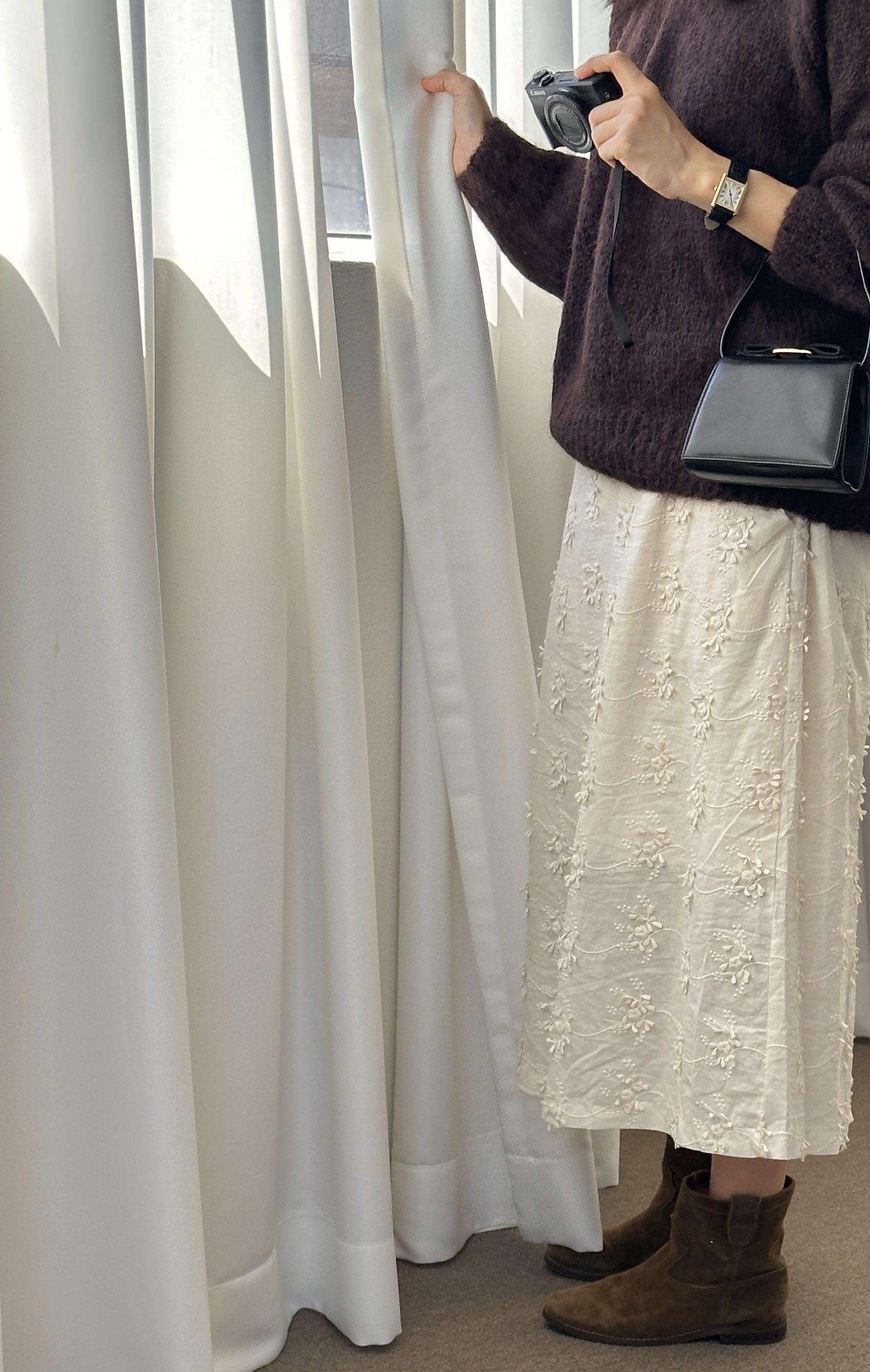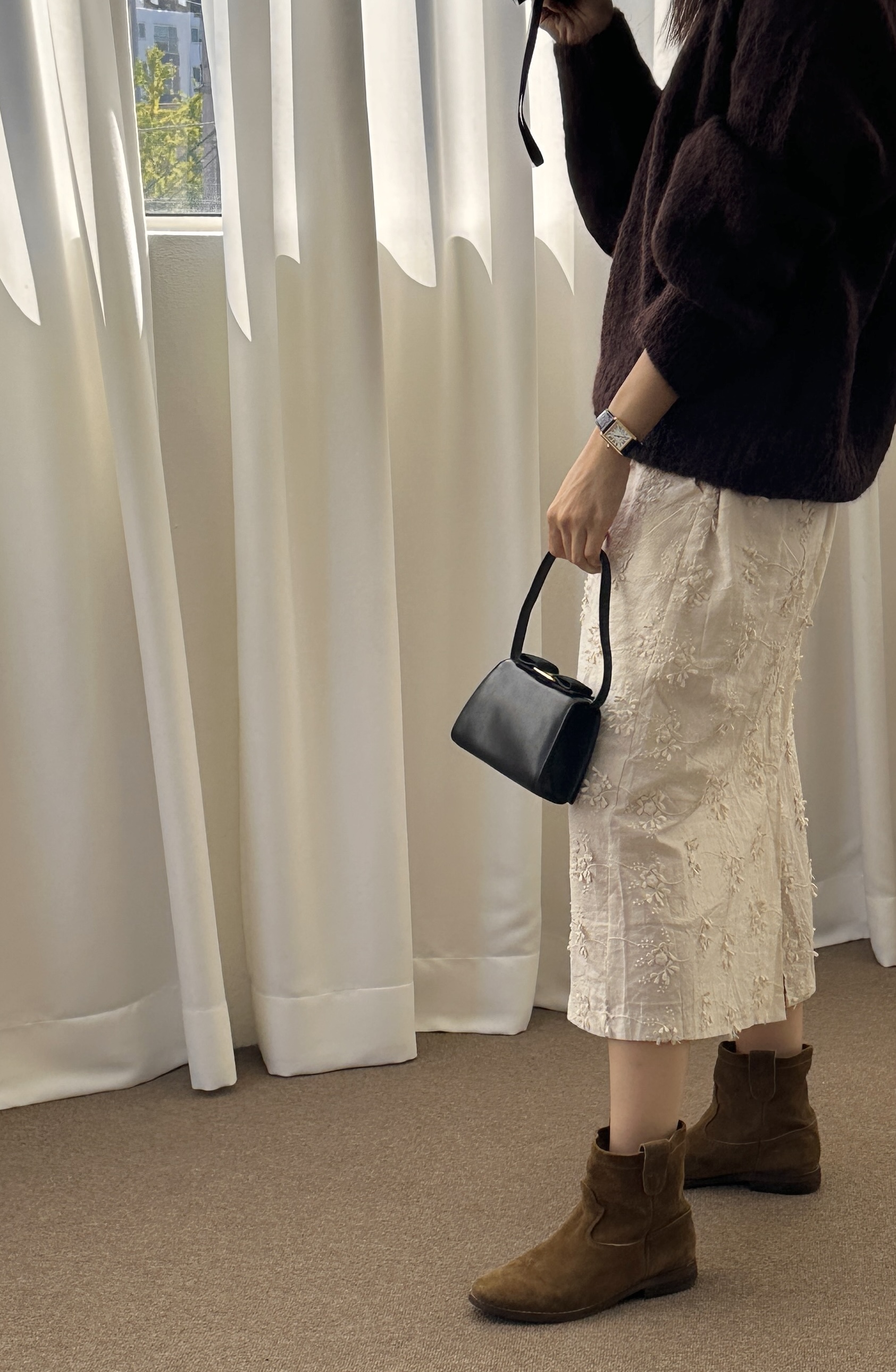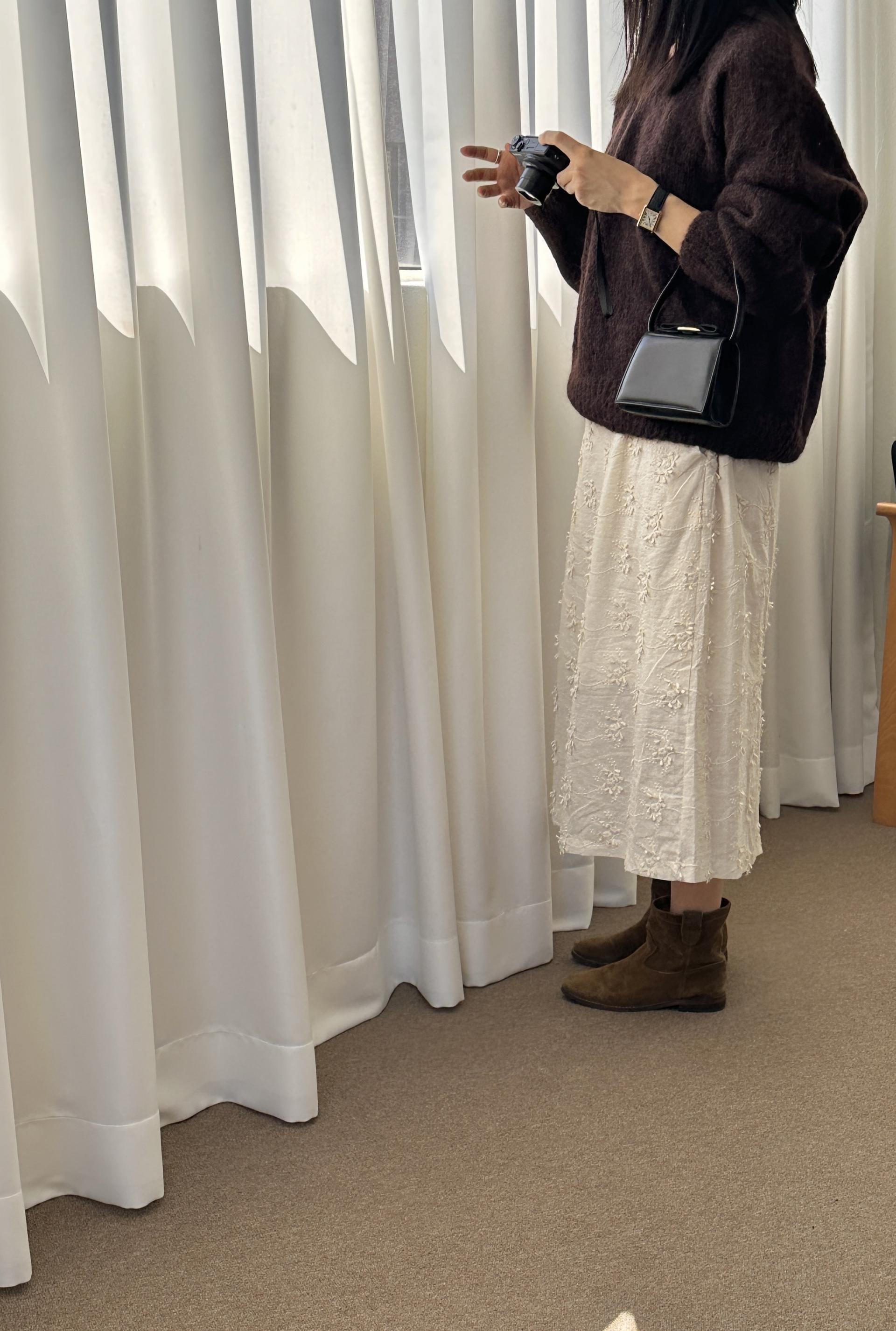 도톰한 니트지만 라운드로 자연스럽게 흐르는 핏이 멋스럽구요