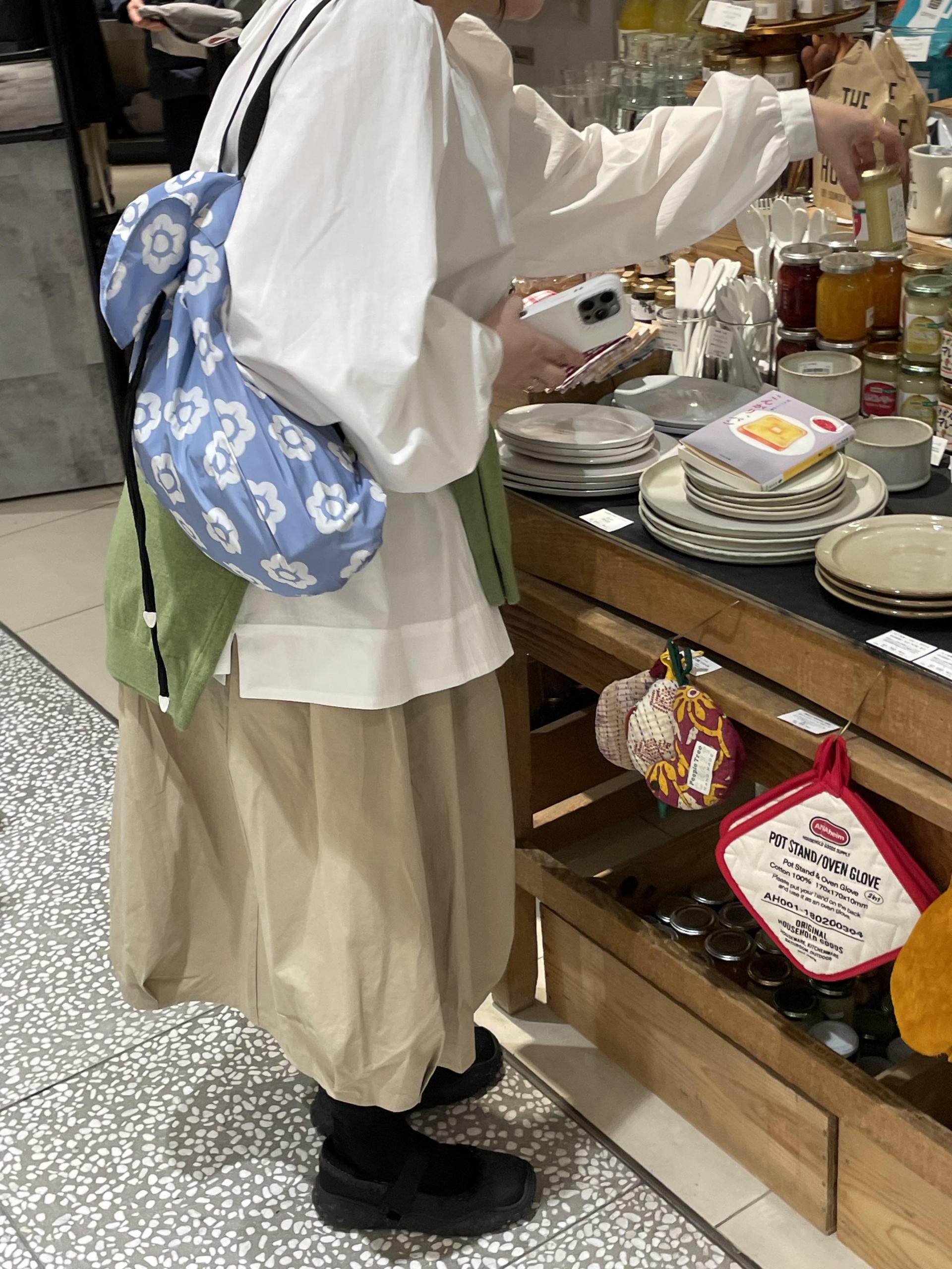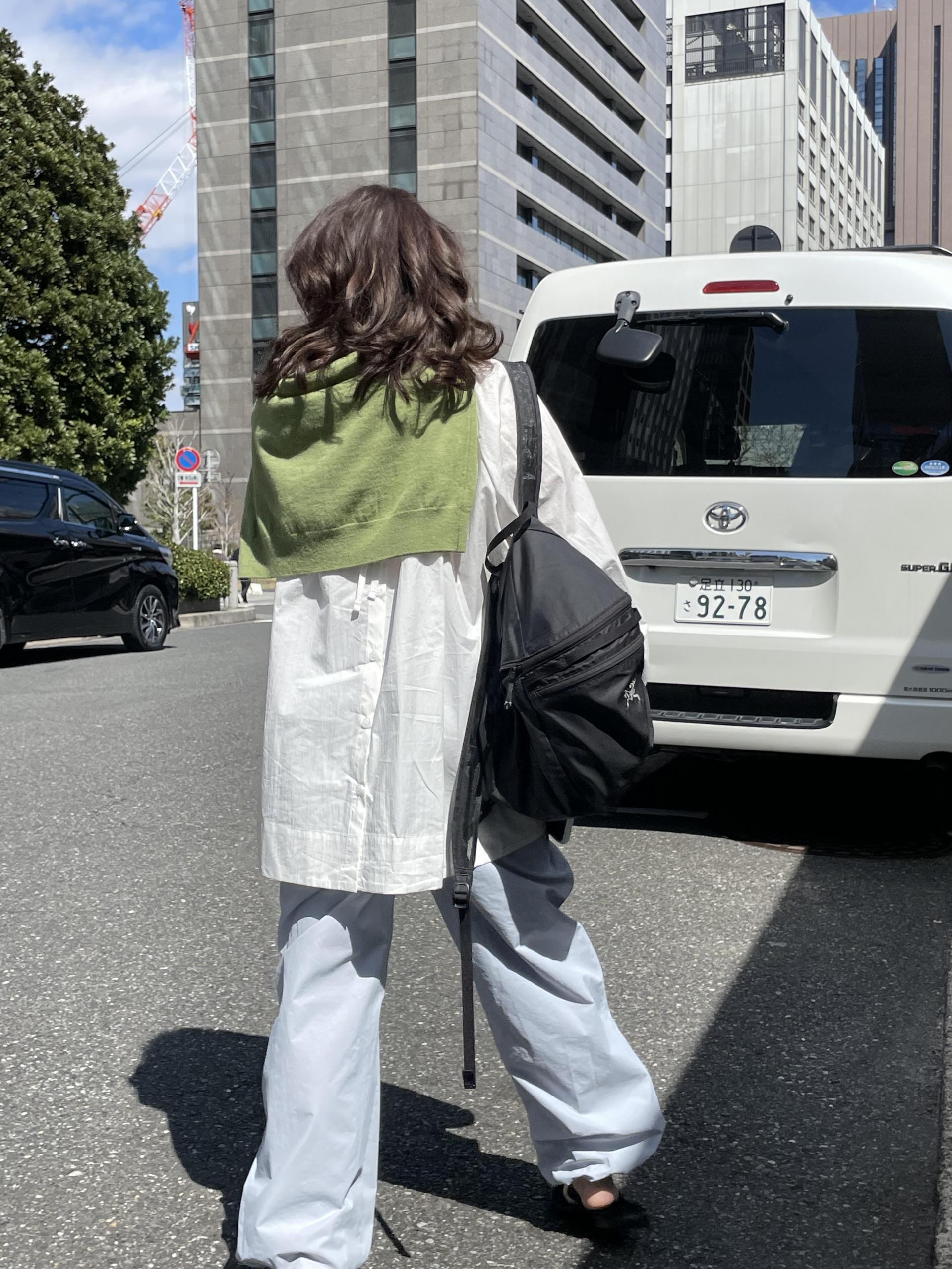 뒷모습은 포인트를 주고 싶어서 원단 컬러와 비슷한 단추로 통일감을 주고