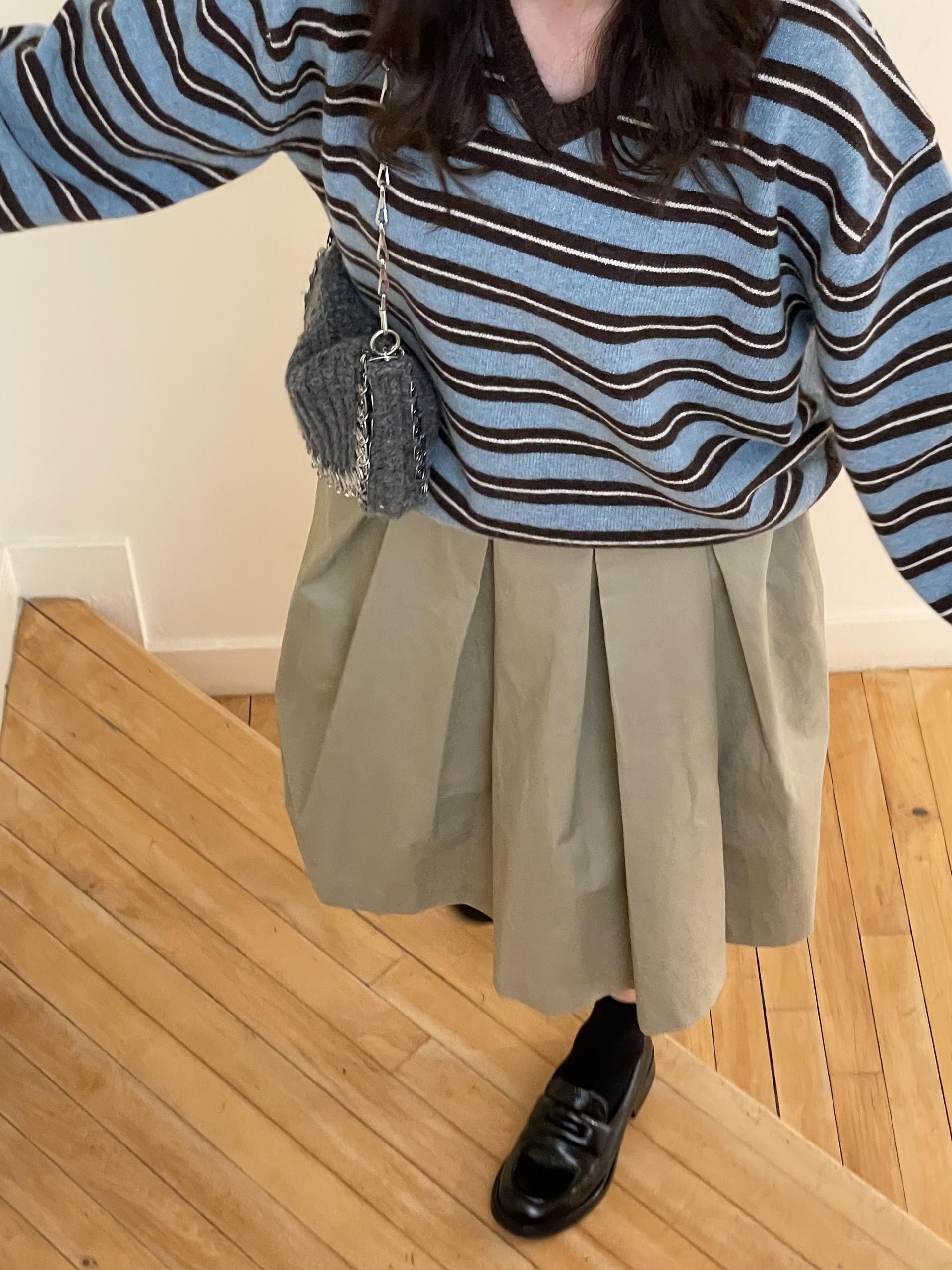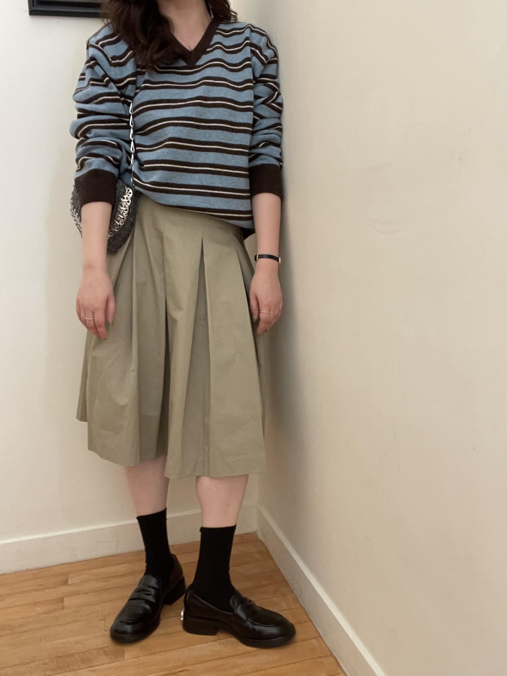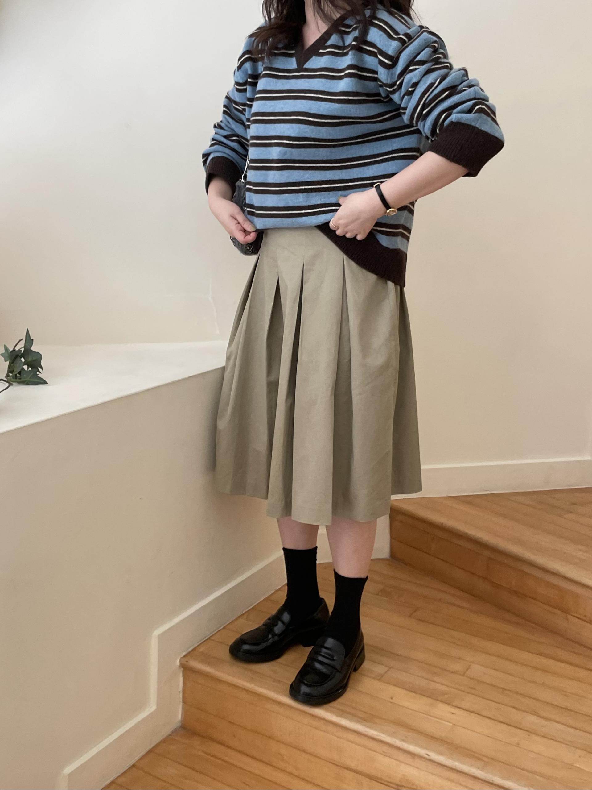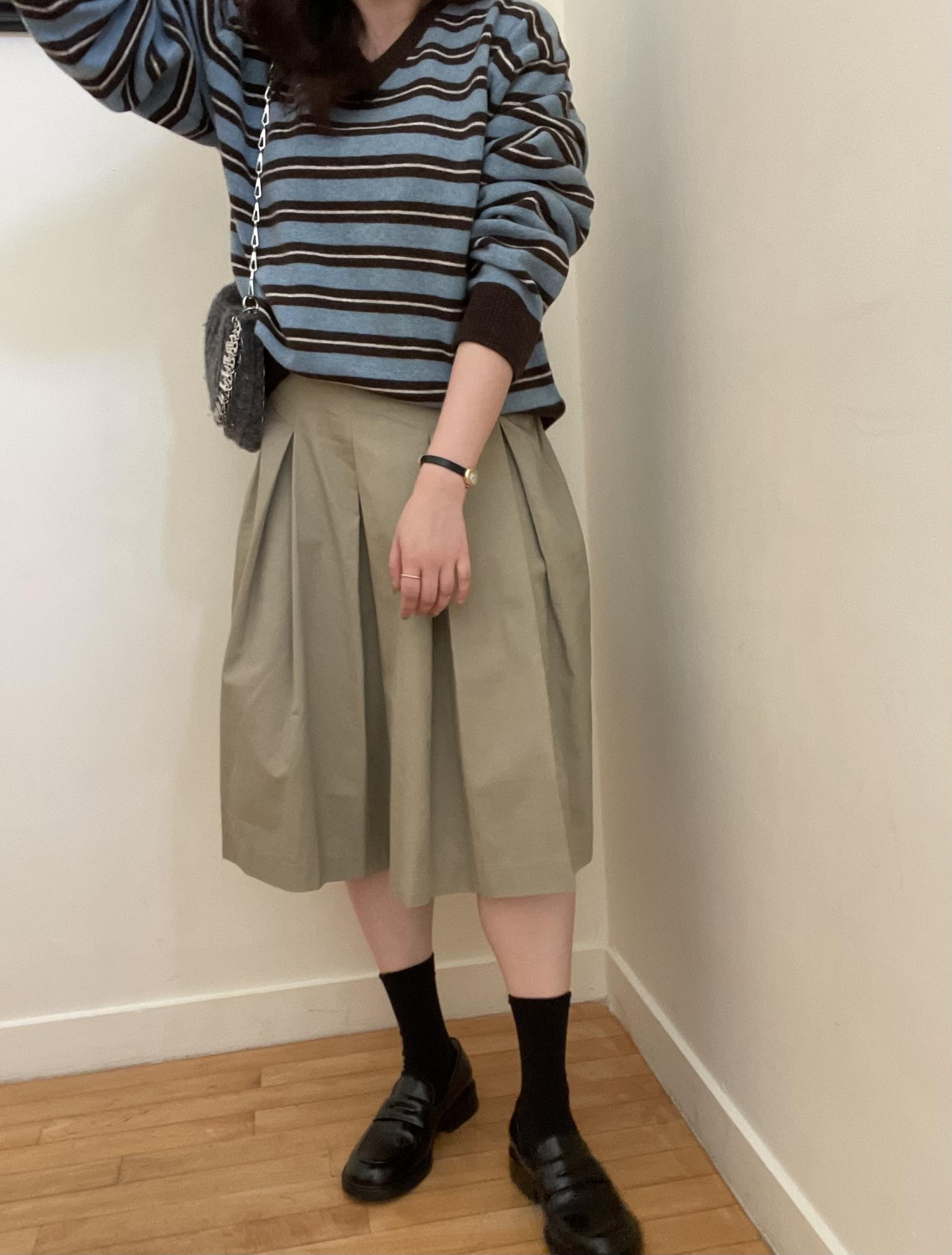 저는 네이비는 데님, 브라운은 스커트 두가지로 코디했는데