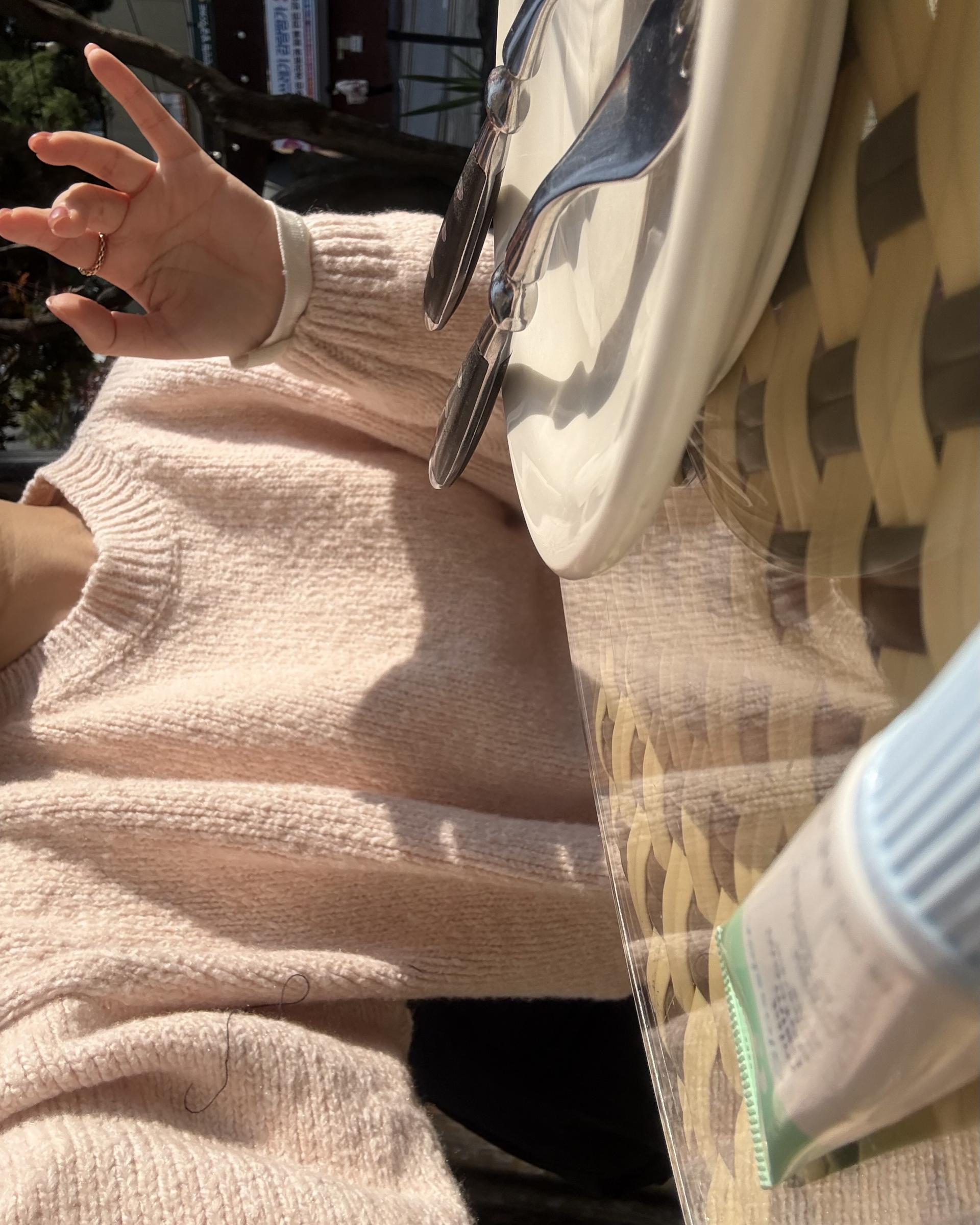오랜만에 아주 사랑스러운 컬러의 니트를 만났어요.
