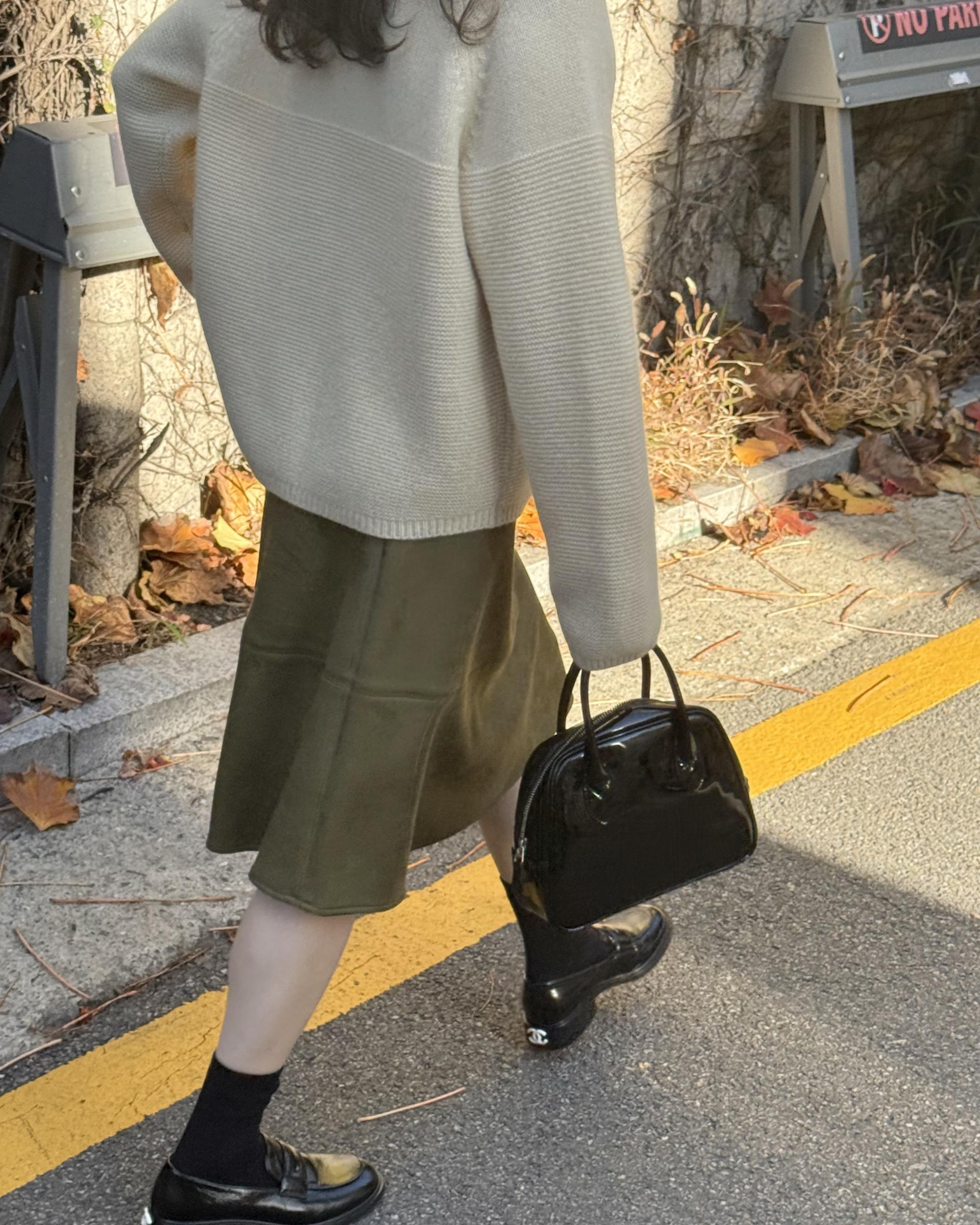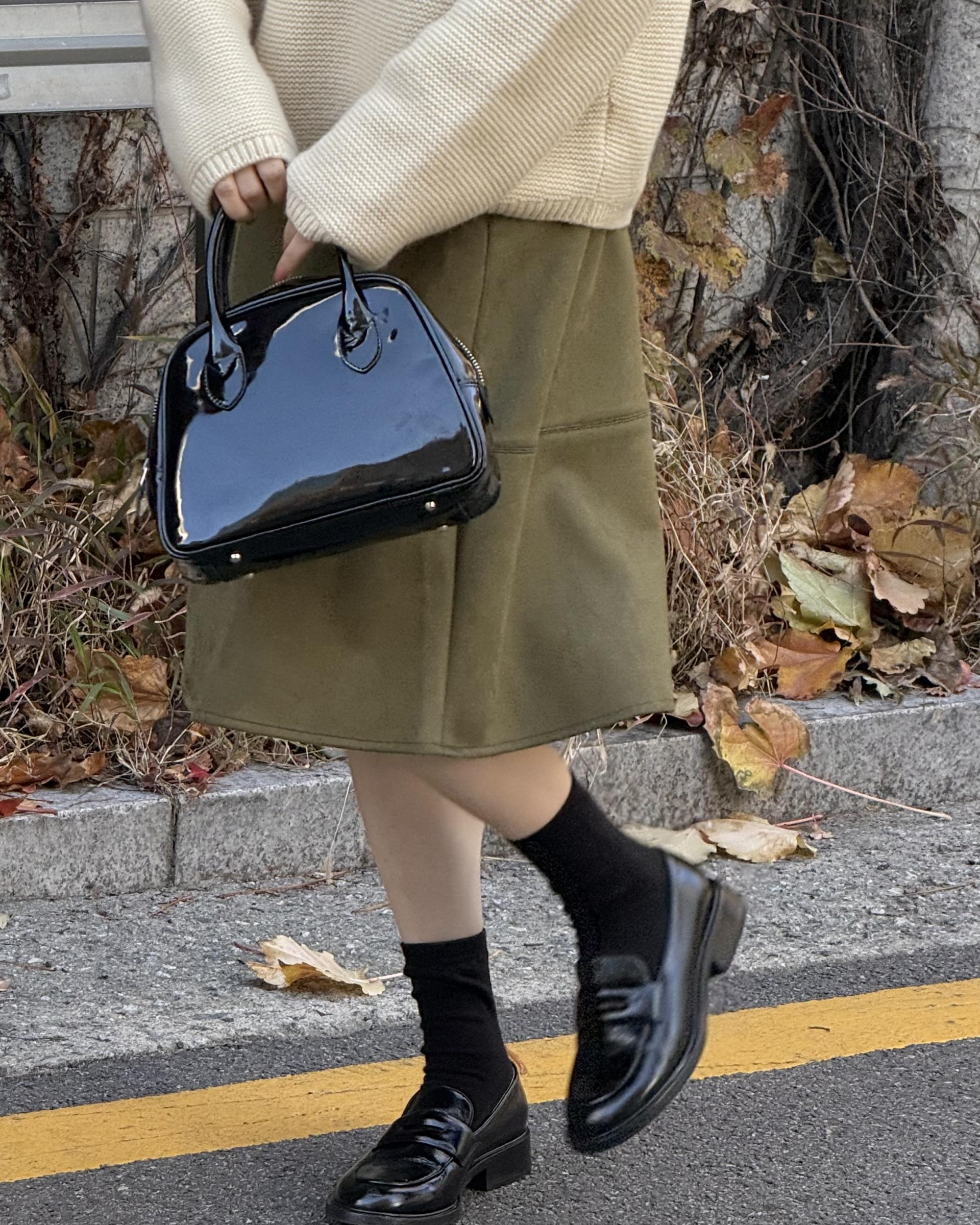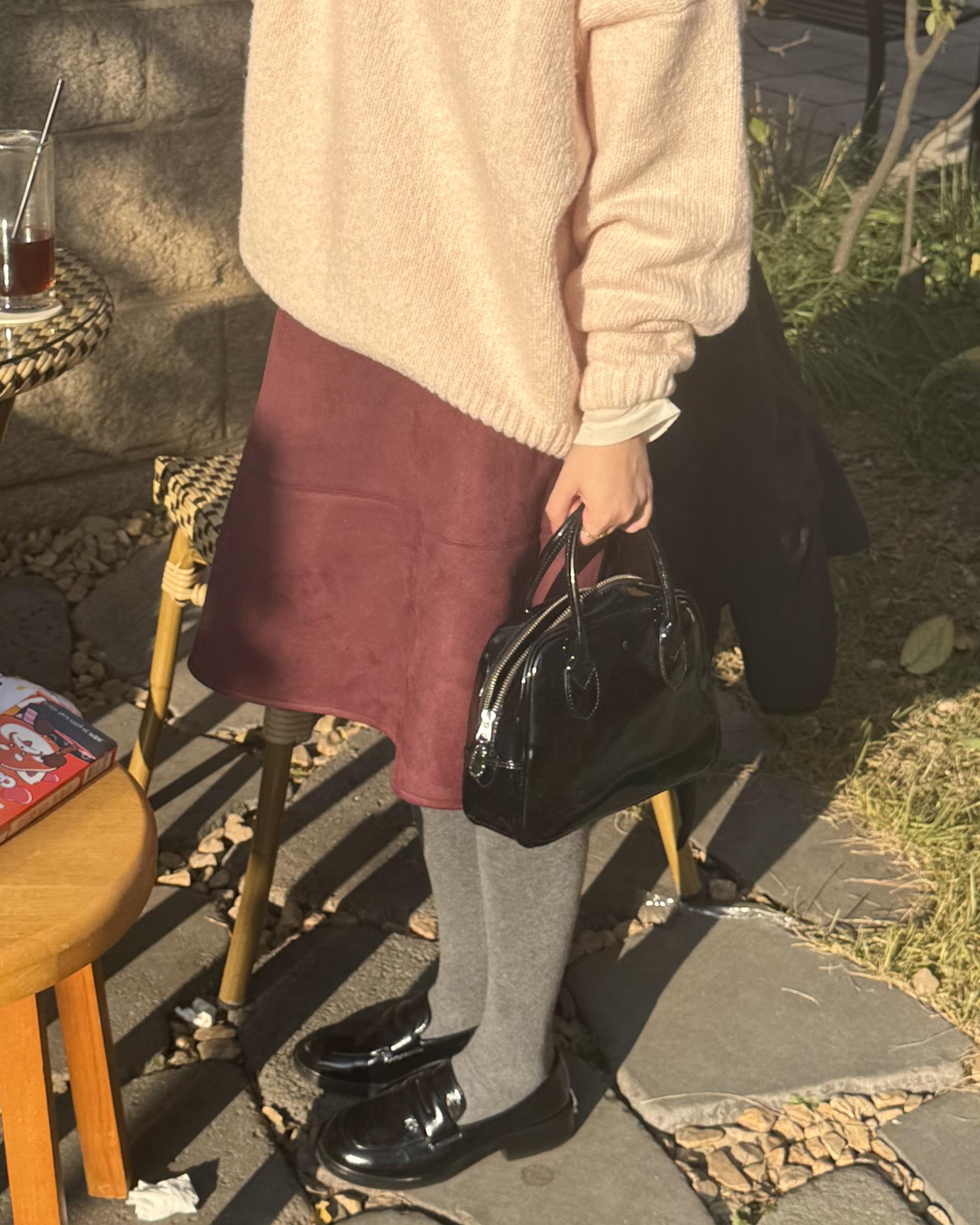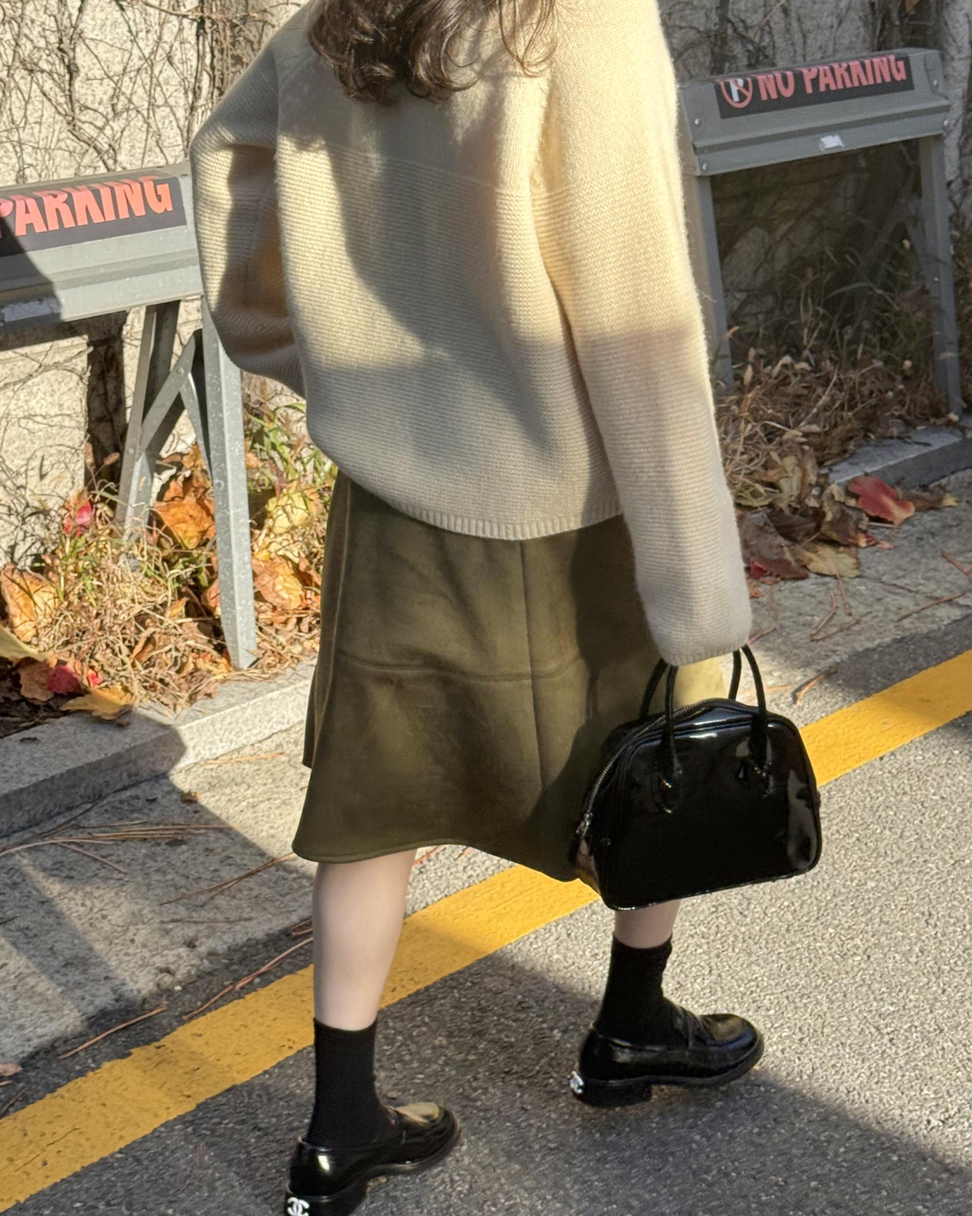 탄탄한 스웨이드 원단이 A라인핏을 잡아줘서 스웨이드 스커트가 처음이시라면