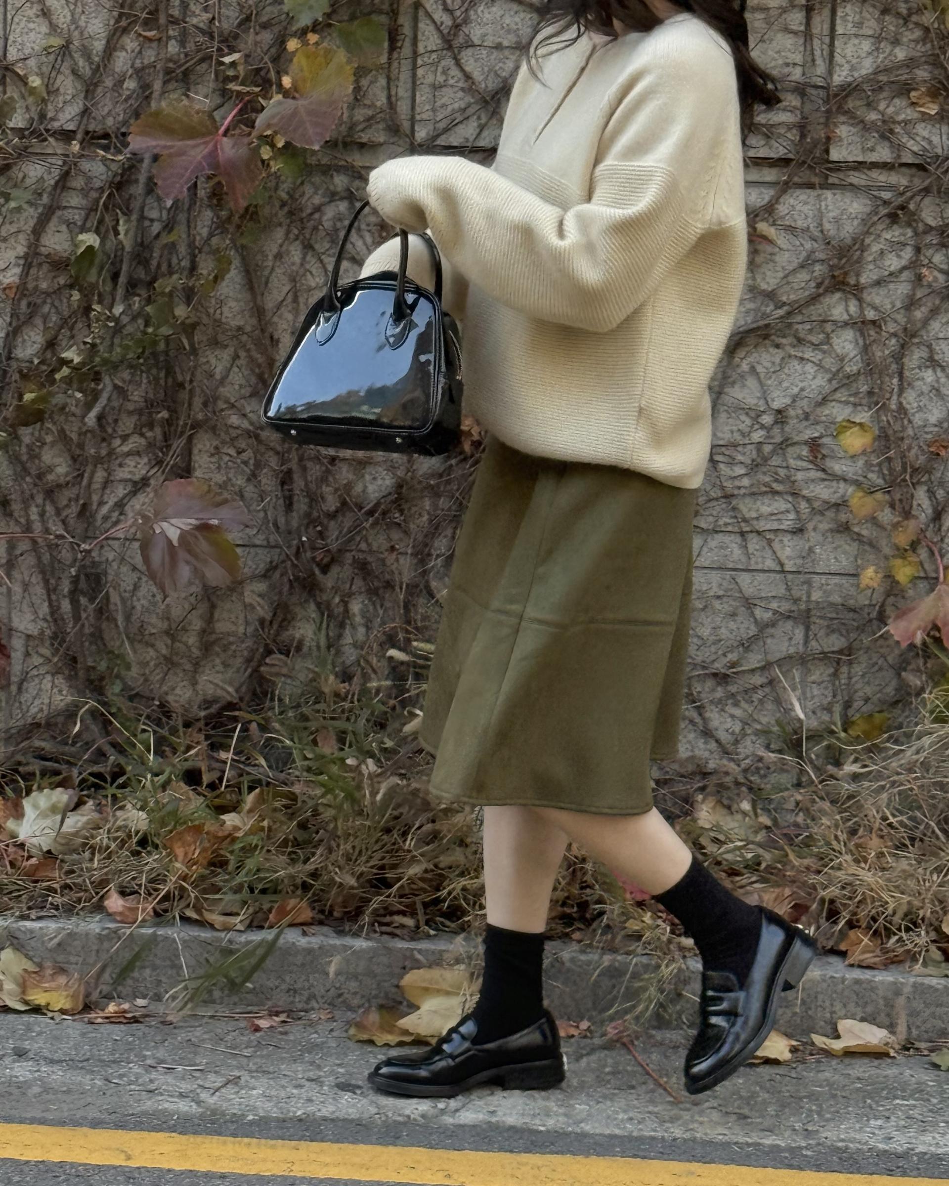 가을에 어울리는 컬러감에 스웨이드 미디 스커트 ‘eve’ 입니다.