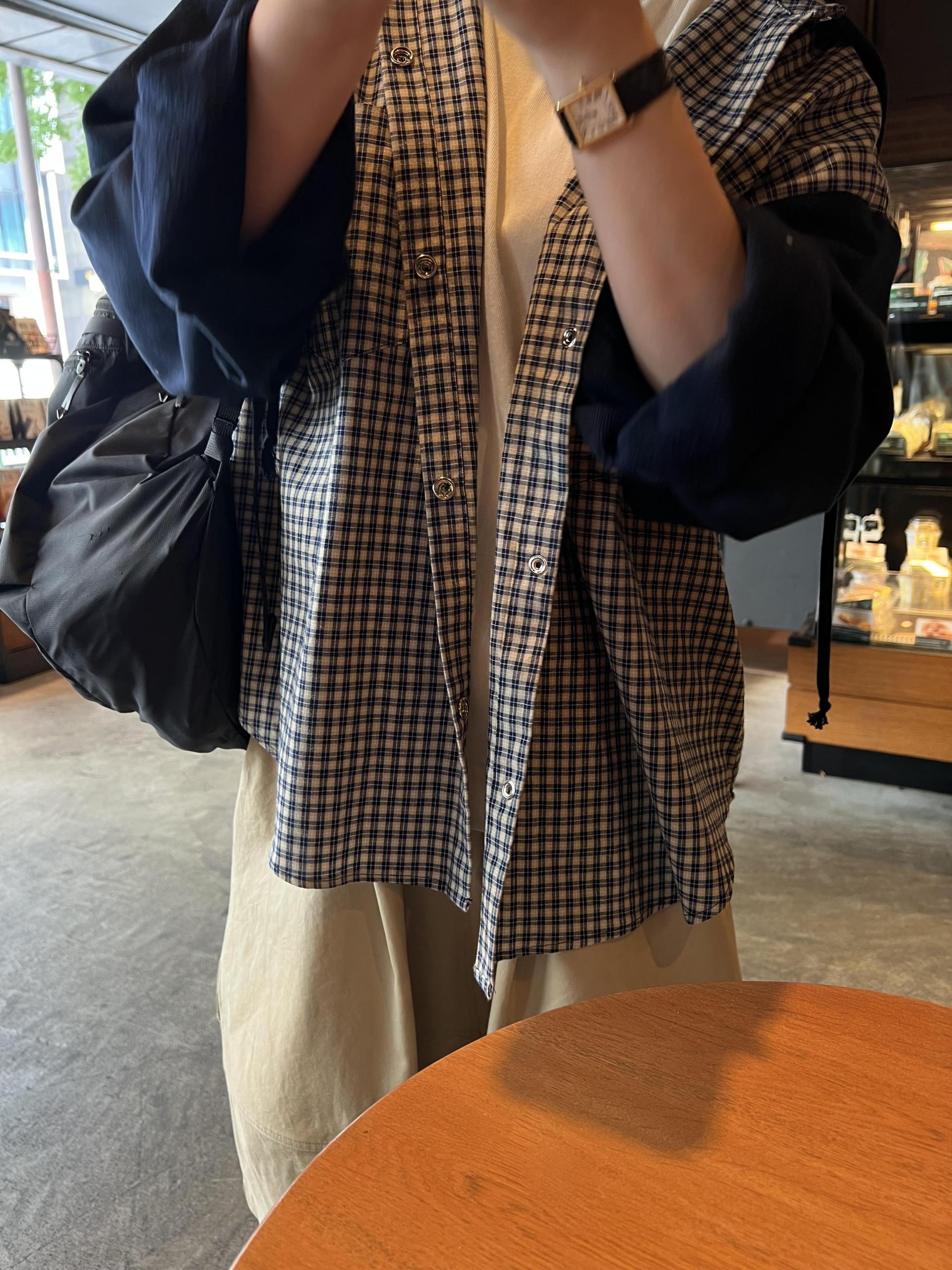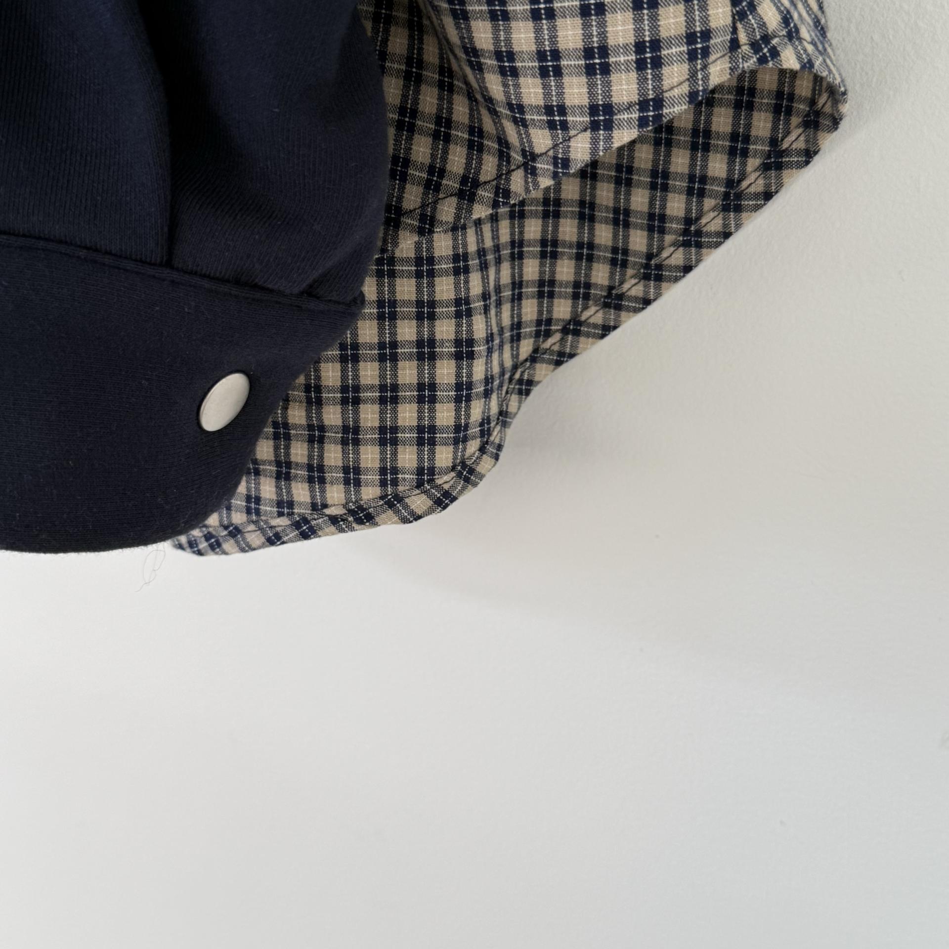 클래식한 네이비 체크 네이비 컬러 배색으로