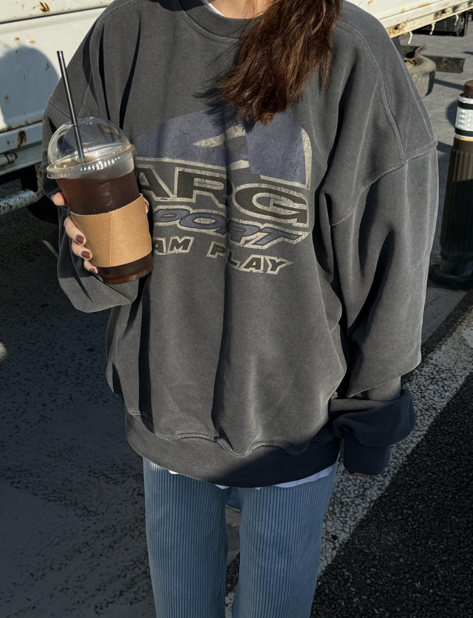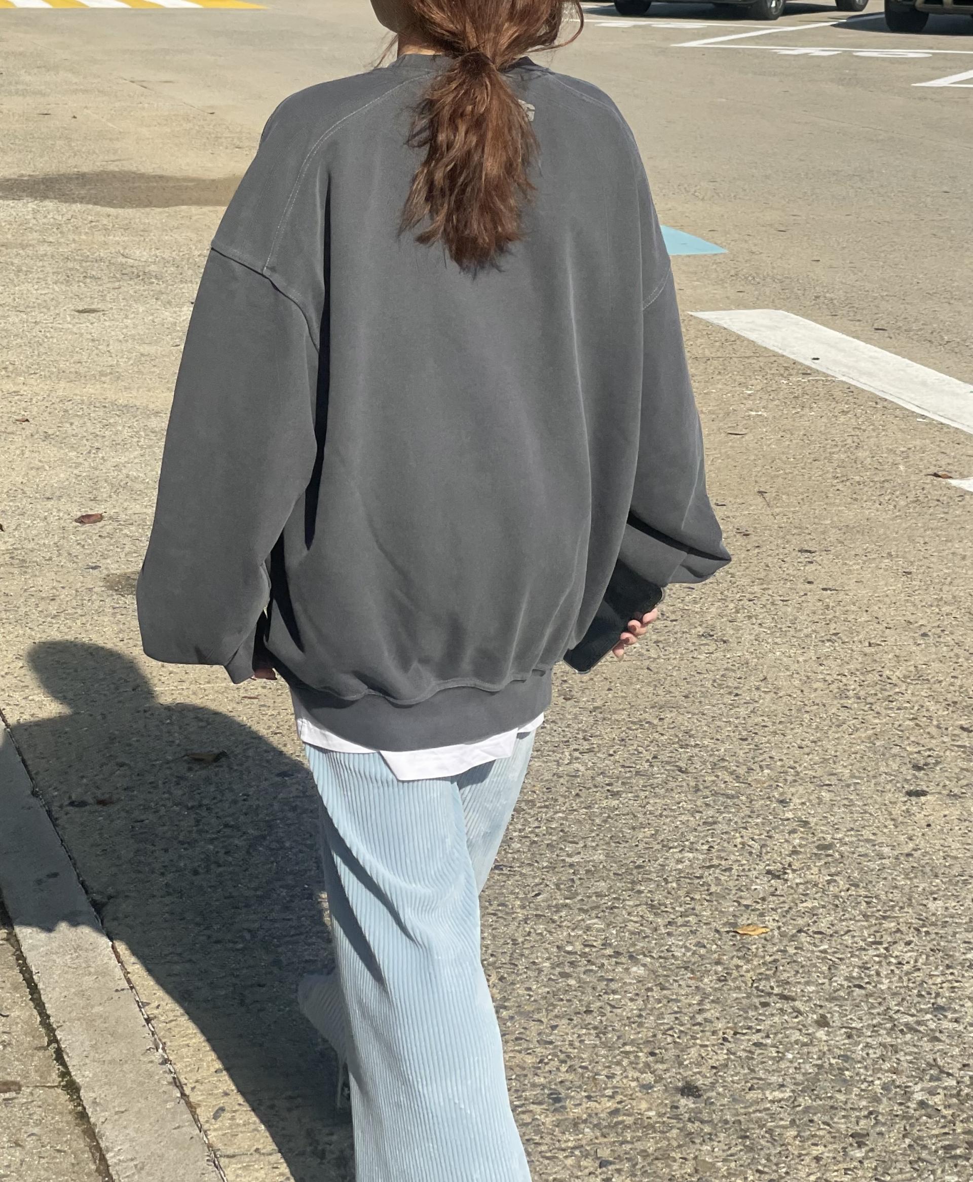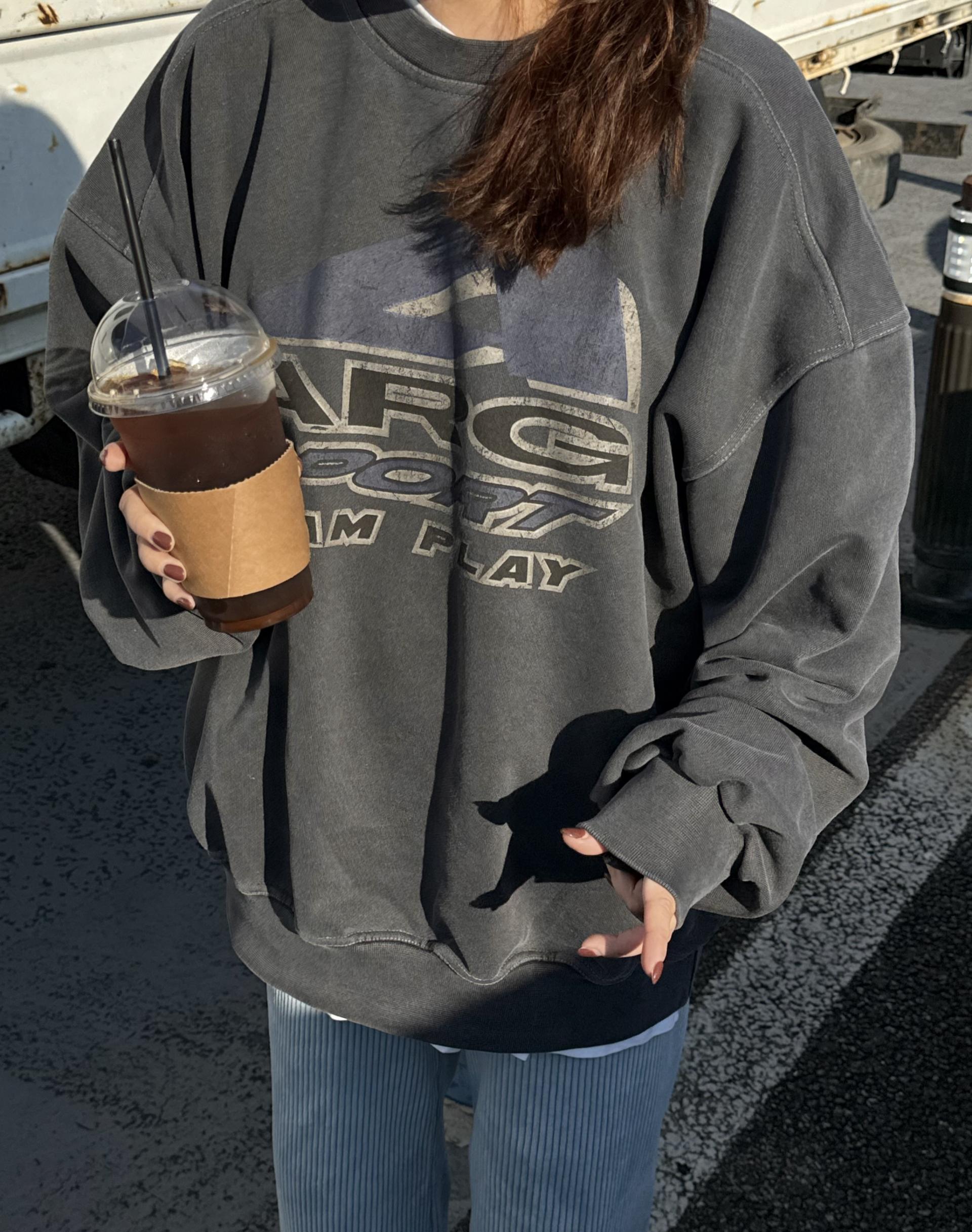 빛바랜 느낌의 원단에 빈티지한 무드의 프린팅이 맨투맨에 매력을 더해주고